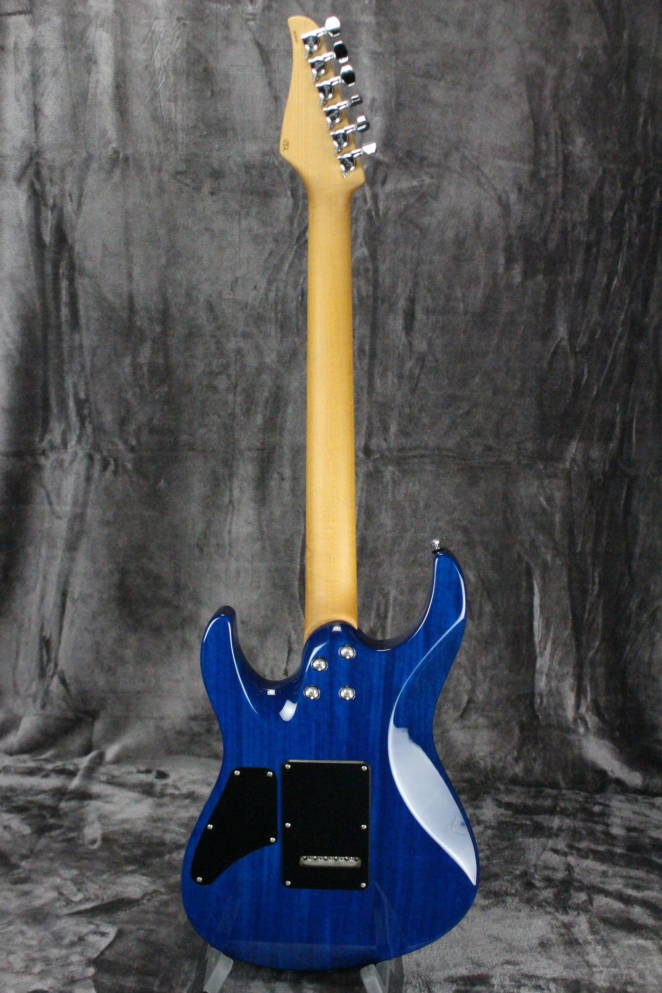 Body: 2-piece White Limba with a 2-piece 3/16” Angel Quilt Maple top finished in a gloss Aqua Blue Burst.