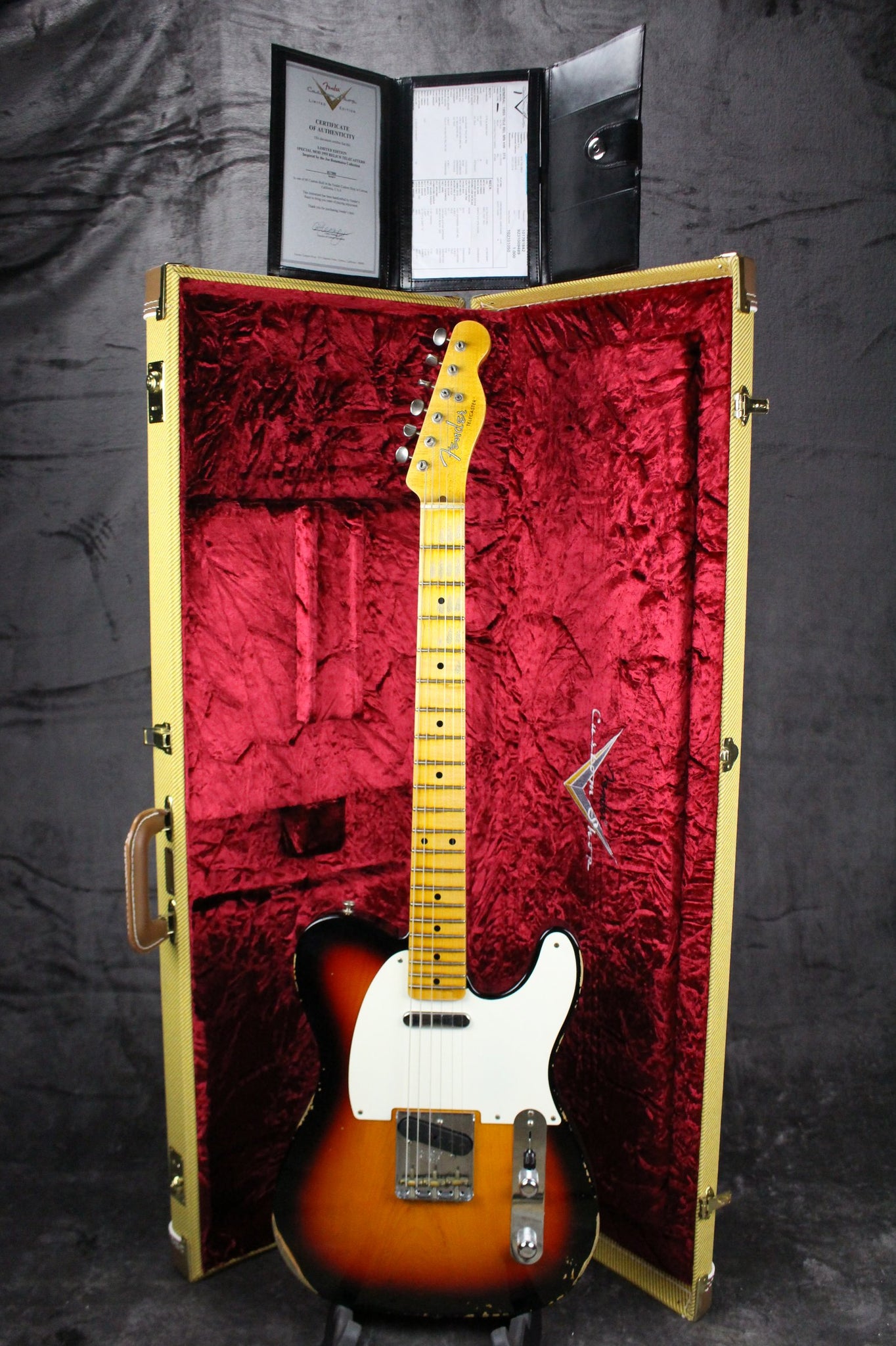 Pickups/Hardware: Two hand wound single coil pickups (Custom Shop 55'/56' Tele in the neck, Custom Shop 51' Nocaster in the bridge), chrome/nickel tuning keys, single ply white parchment pickguard, 3-Saddle Vintage Style Tele with Barrel Steel Saddles, 3-position blade pickup selector, one volume/one tone knob (52' knurled chrome). This guitar is factory wired with the 50's broacaster blend wiring. Bridge position is bridge pickup and the "tone knob" blends in the neck pickup. Middle position is neck pickup only and the tone knob does nothing, Neck position is neck pickup with the tone roll off "dark circuit" and the tone knob does nothing.