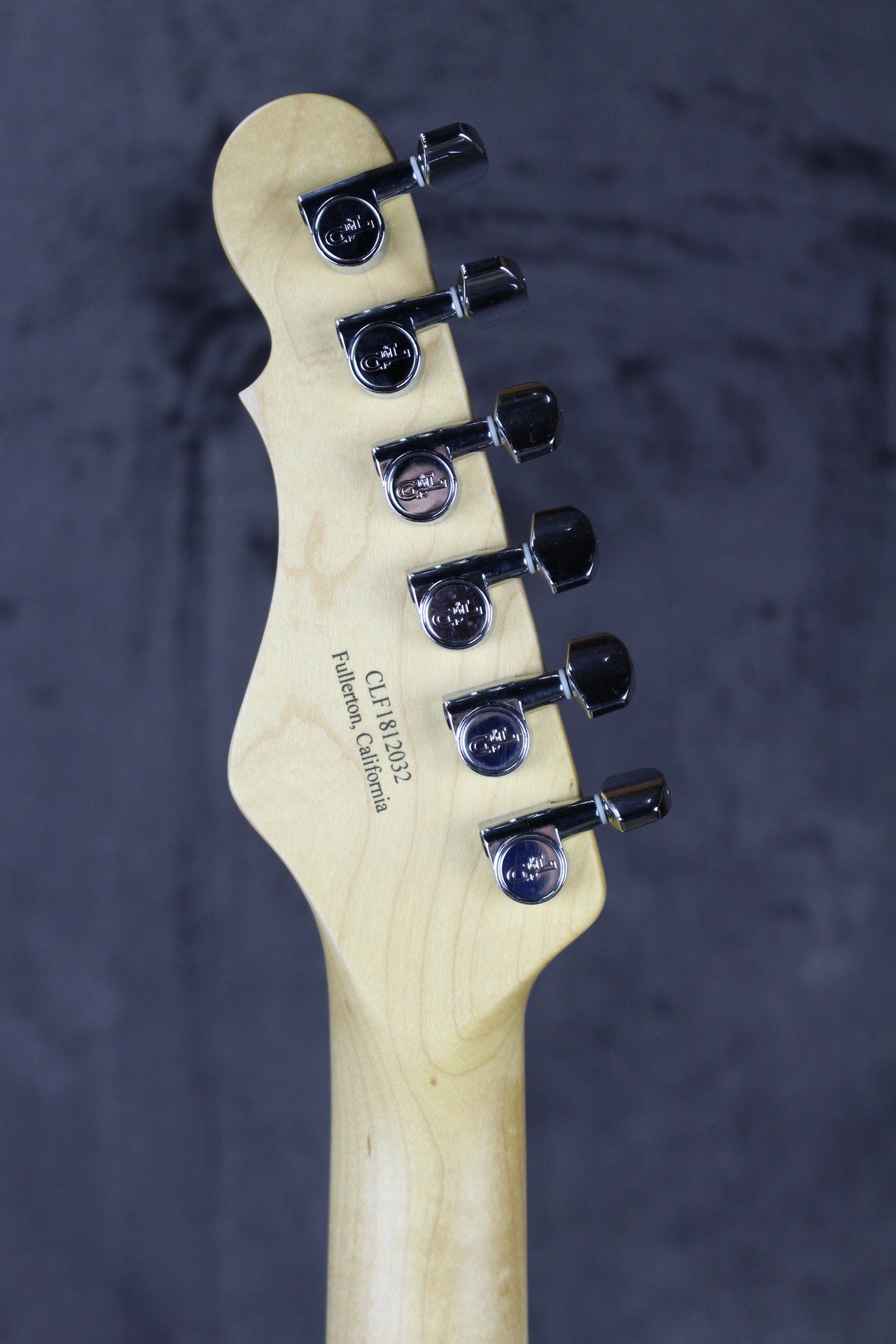 Neck: G&L slim “C”, Hard-rock maple with matching fingerboard, 1 5/8” nut width, .820” depth at the 1st fret and .870” at the 12th fret, satin vintage tint, 22 medium jumbo frets, bone nut, Black Face dot inlays, Model Logo Delete.