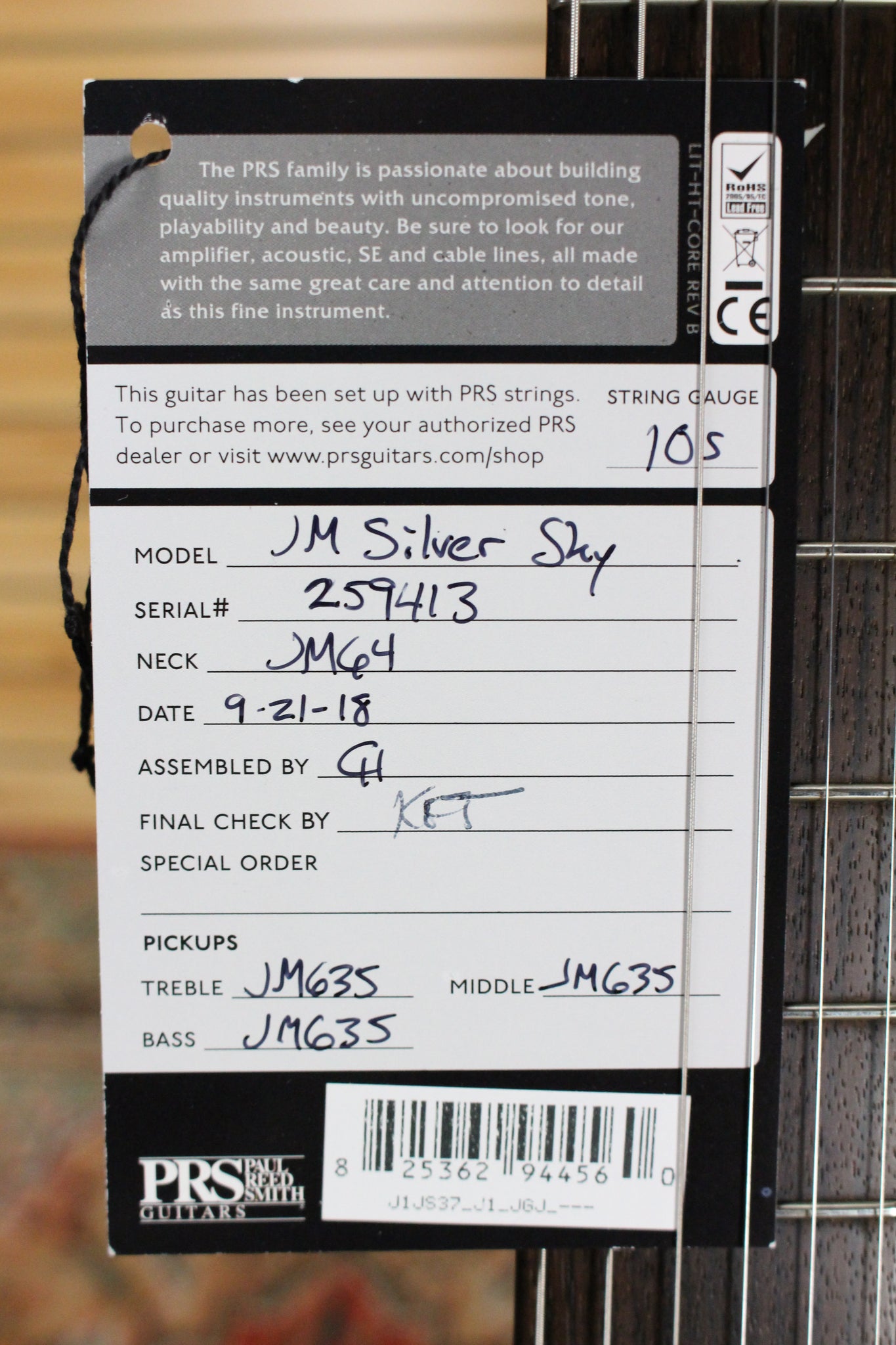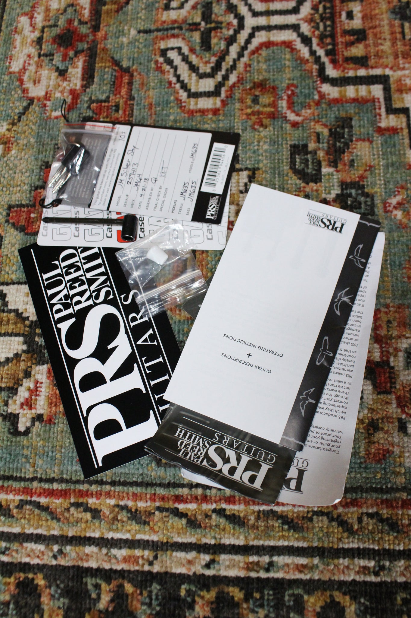 Pickups/Hardware: PRS 635JM single-coil pickups, locking vintage style tuning keys, vintage style tremolo bridge, white plastic knobs, bone nut.