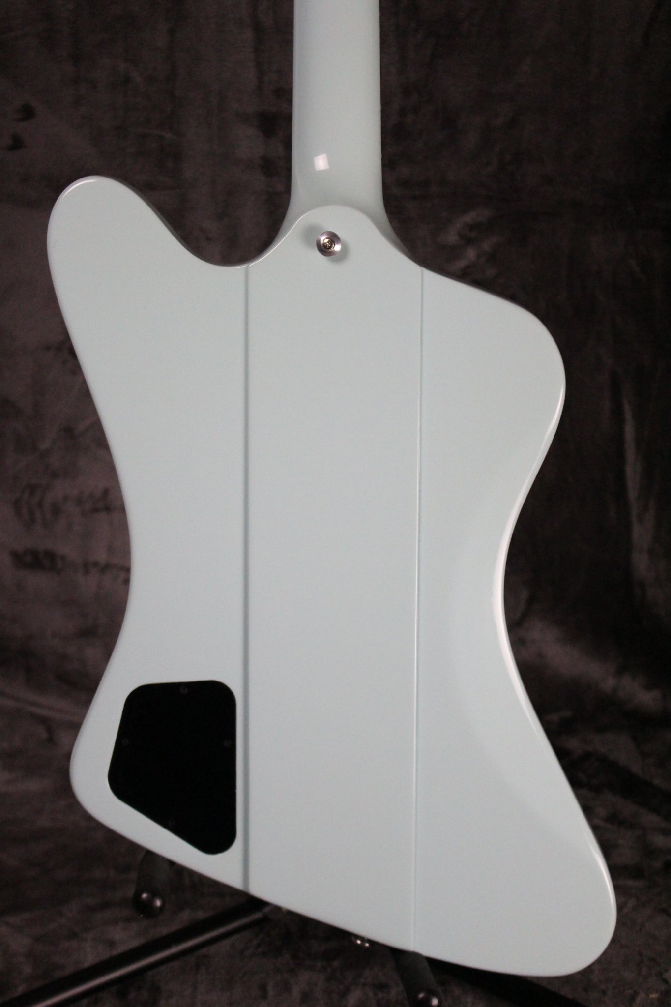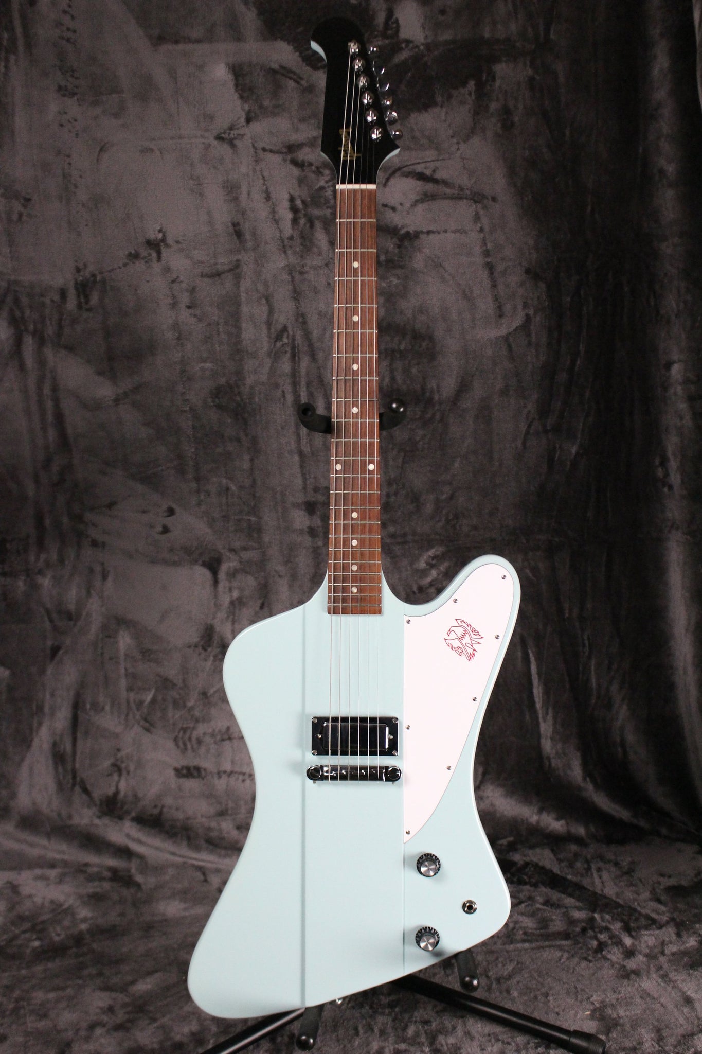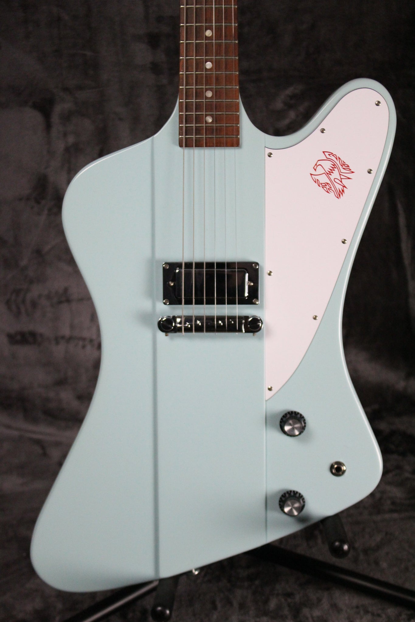 Summary: The Gibson Firebird rocks a reverse body and headstock design as originally introduced in 1963 and was Gibson's first neck-through-body design. The traditional mahogany neck through body construction provides rich, warm tonality and incredible sustain. A slim taper neck with a rosewood fingerboard and pearl dot fingerboard inlays. This Firebird is outfitted with a single mini humbucker to recapture the scorching output and searing tones of the original voice for which the Firebird is known.