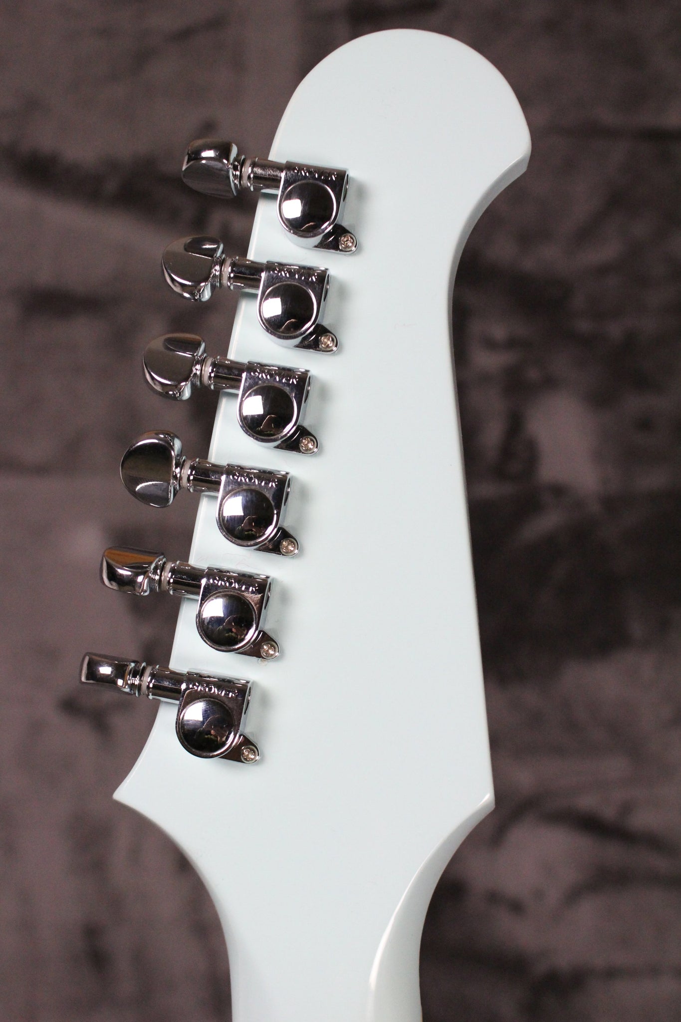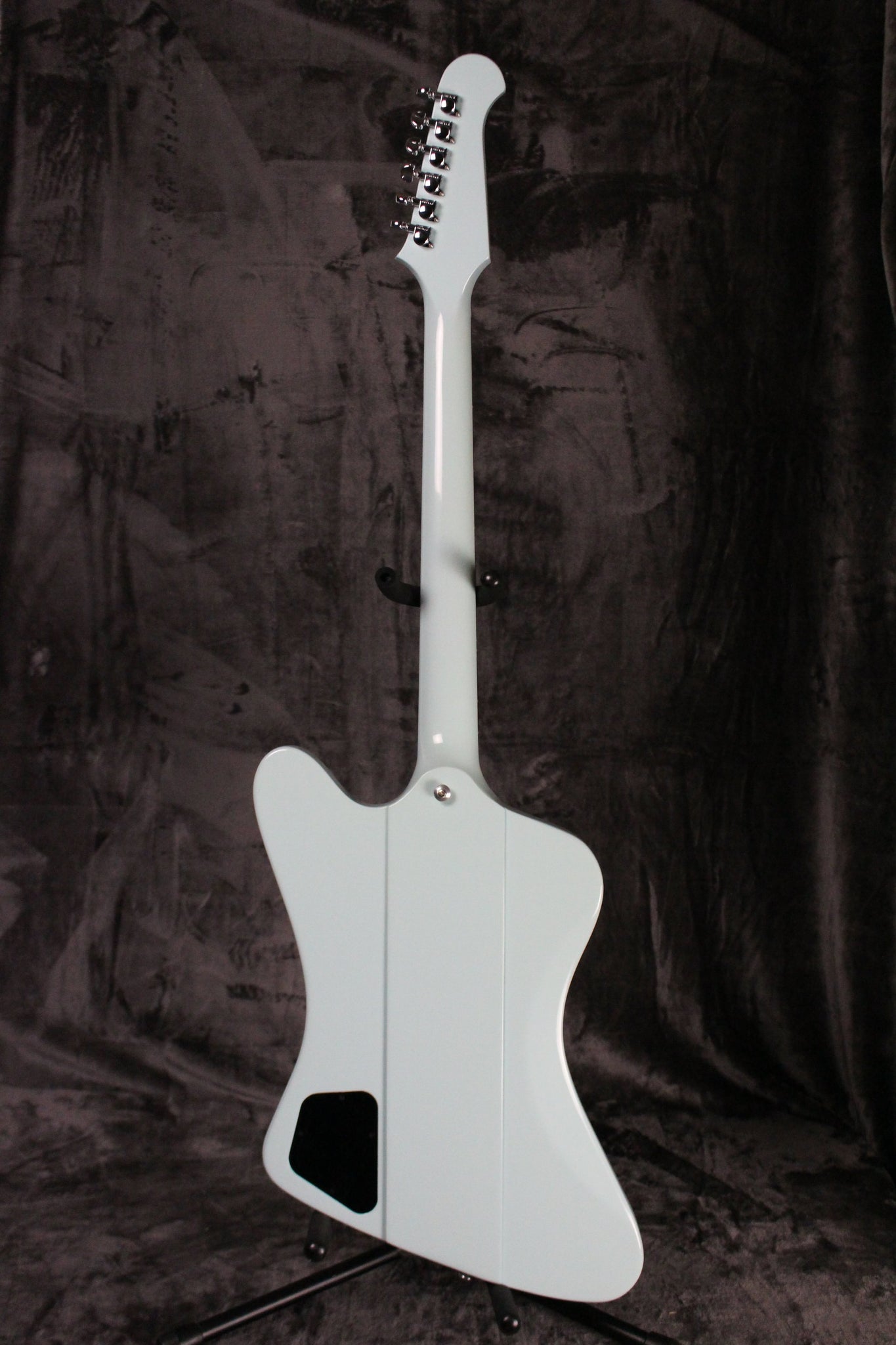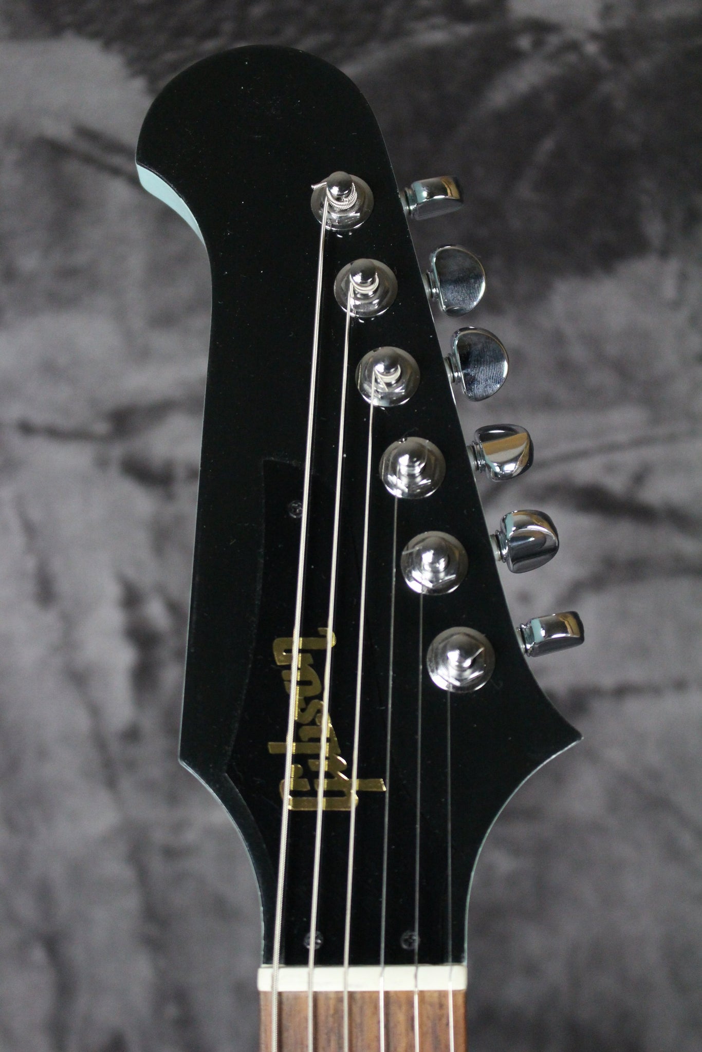 Summary: The Gibson Firebird rocks a reverse body and headstock design as originally introduced in 1963 and was Gibson's first neck-through-body design. The traditional mahogany neck through body construction provides rich, warm tonality and incredible sustain. A slim taper neck with a rosewood fingerboard and pearl dot fingerboard inlays. This Firebird is outfitted with a single mini humbucker to recapture the scorching output and searing tones of the original voice for which the Firebird is known.