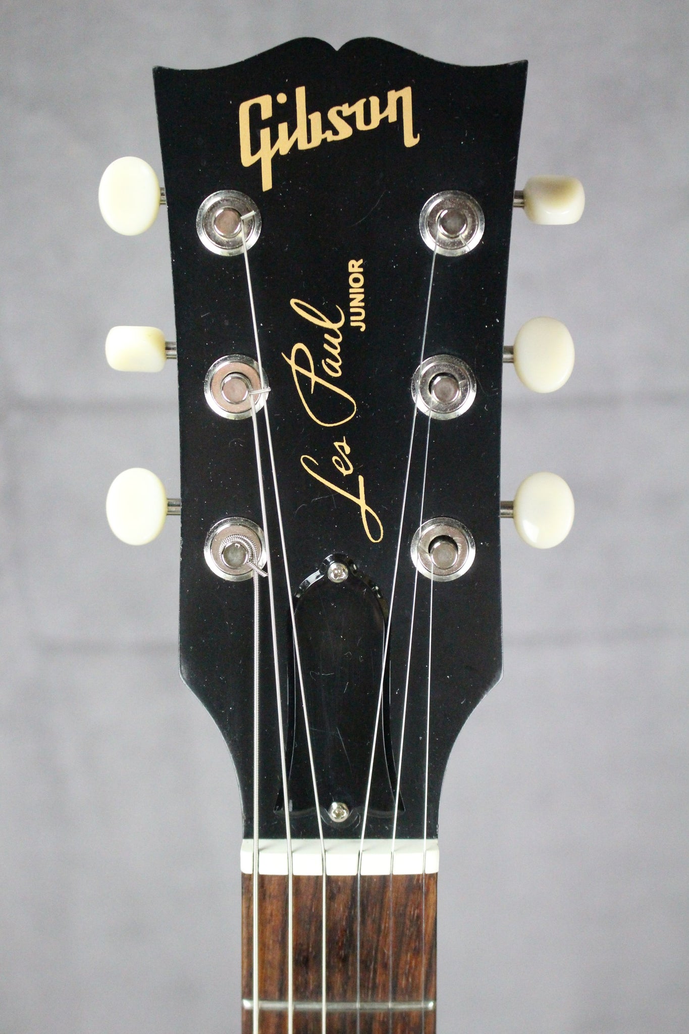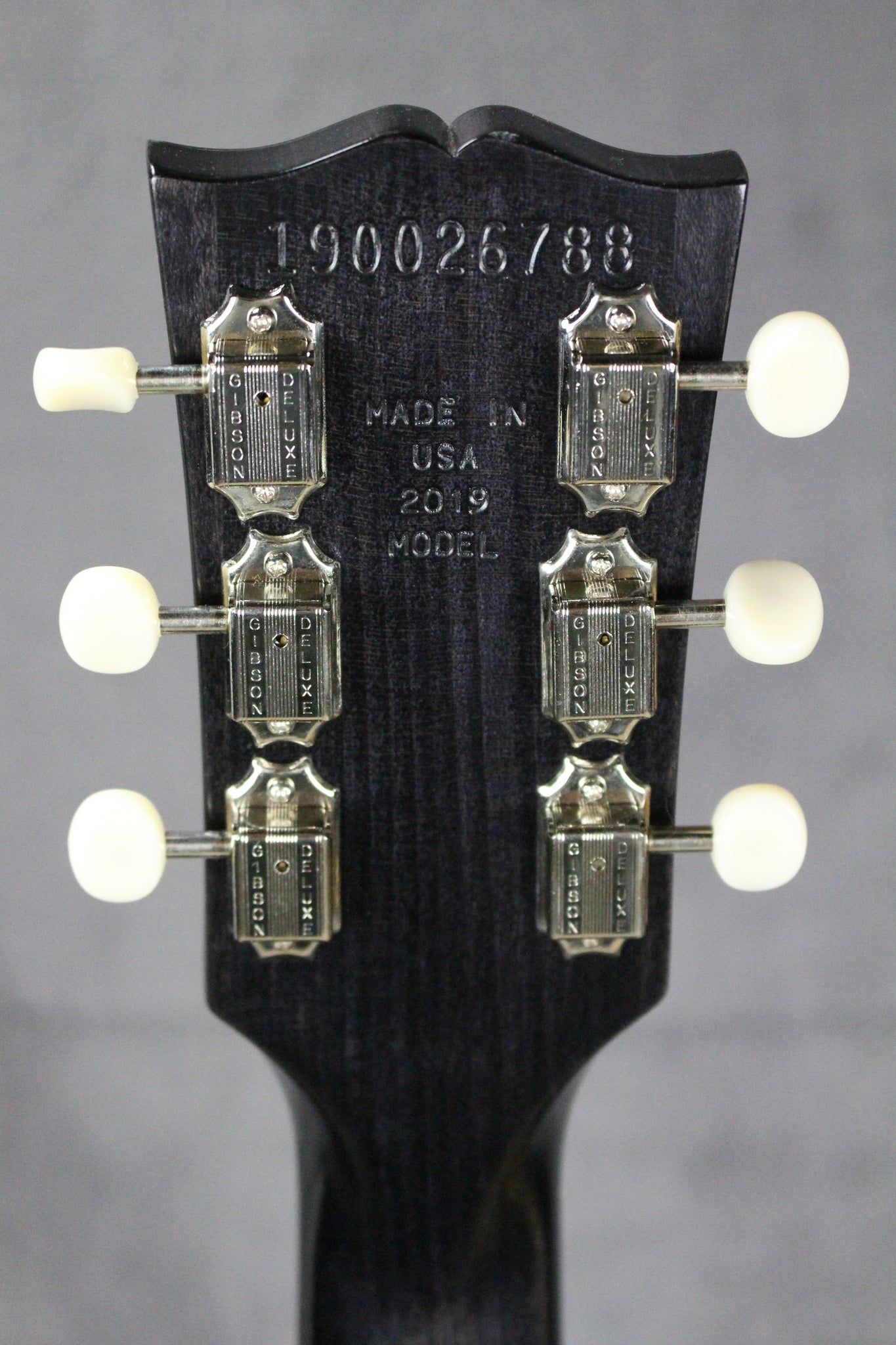 Pickups/Hardware: One P90 pickup, Gibson Deluxe white button tuning keys, wraparound bridge, master volume/master tone knobs, 3-ply black pickguard, input jack on top of the body.