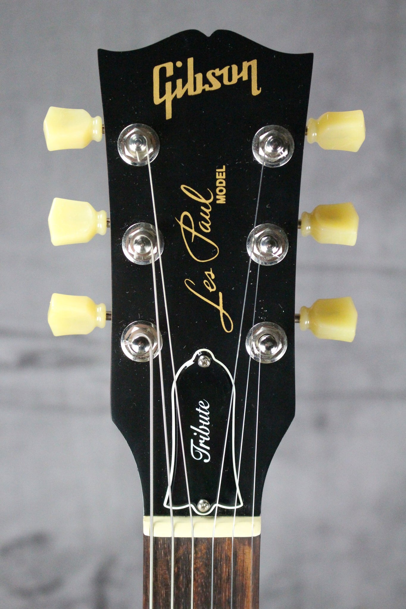 Summary: Early Les Pauls were known for being a bit heavy. With the Ultra-modern weight relief system on the Tribute, Gibson has carved out carefully chosen sections of the body to remove some of that extra weight without compromising tone or resonance. With this relief, you can enjoy more hours of comfortable live playing without straining your back. The Tribute offers current players an opportunity to experience the feel and response of classic Les Paul necks. Cut to a classic rounded profile, this maple neck feels instantly comfortable, ideal for lead runs as well as chords up and down the neck. The rosewood fingerboard with 22 medium jumbo frets is an integral part of this neck’s overall feel, providing easy fretting and ultra-smooth response. And with a Nashville Tune-o-Matic bridge and stopbar tailpiece, you get that vintage Les Paul sustain with this guitar.