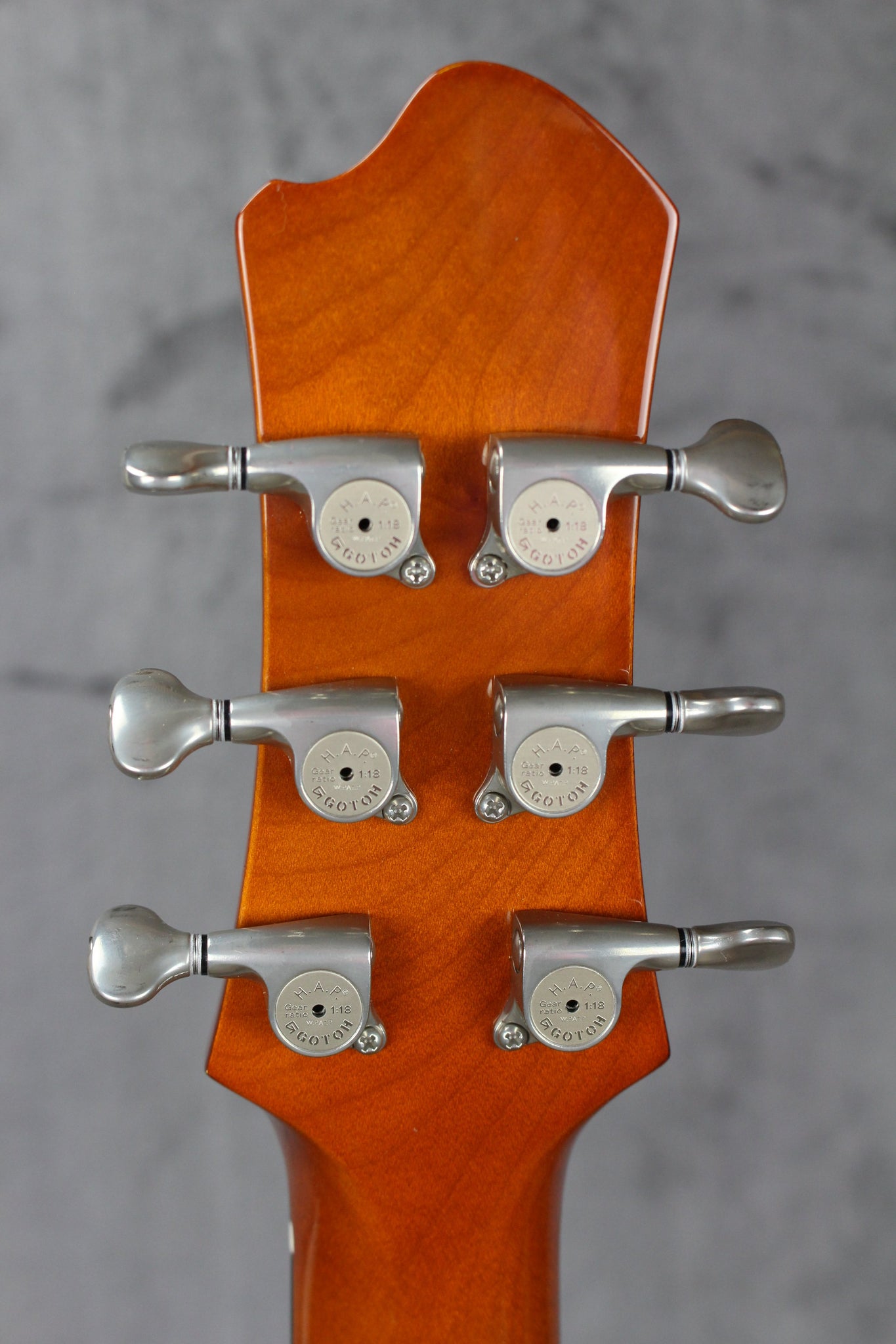 Pickups/Hardware: Nickel Gotoh GE101A-NI tailpiece, Gotoh GE-104B-NI bridge, Gotoh SGS510Z-S5-HAP-XN tuning keys, ebony dome knobs, Switchcraft 12120X pickup selector, 0.047μF capacitors, CTS 500K AudioTaper potentiometers, Switchcraft L11 input jack,