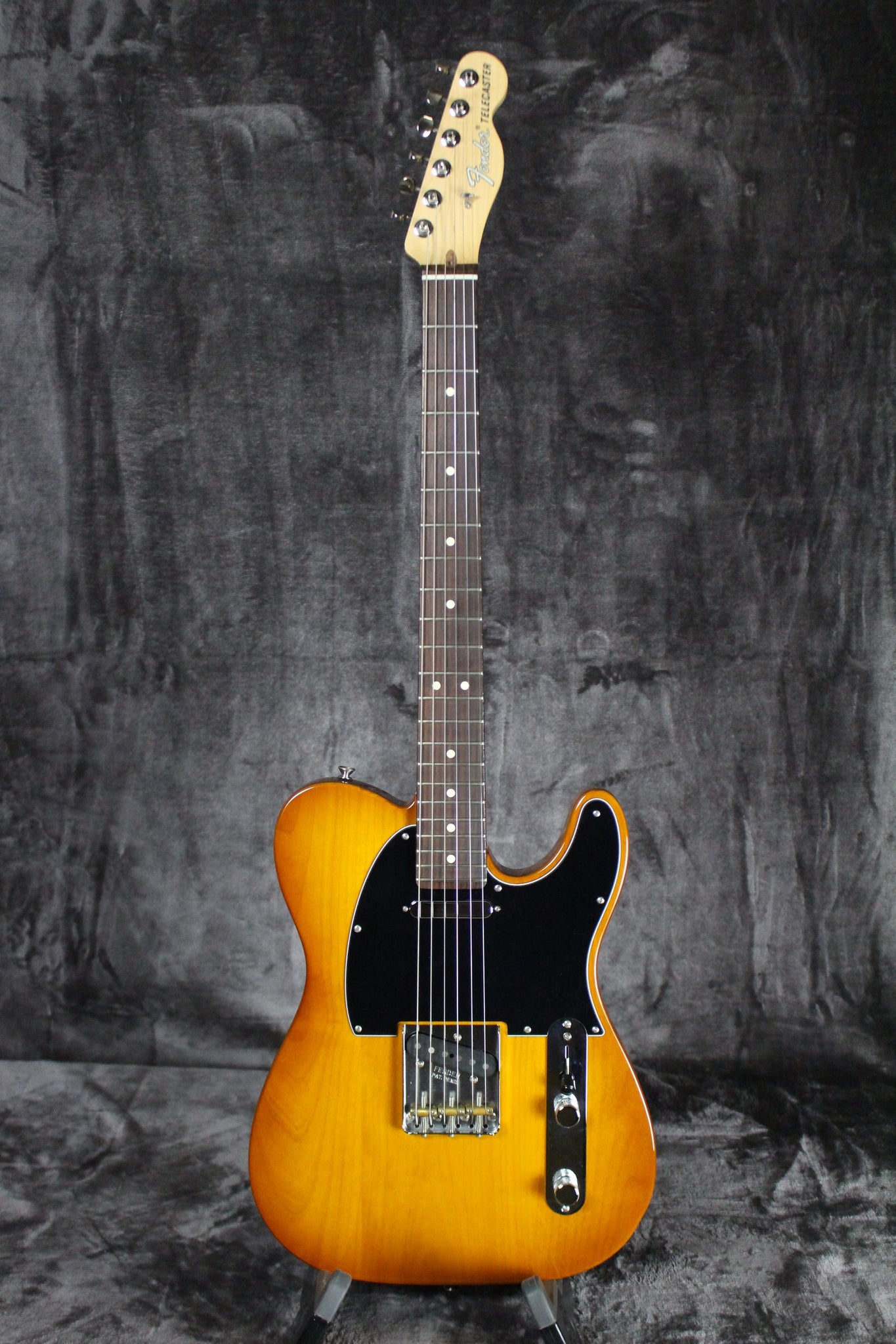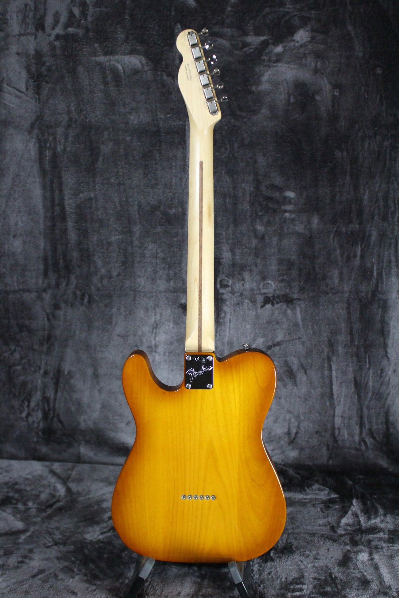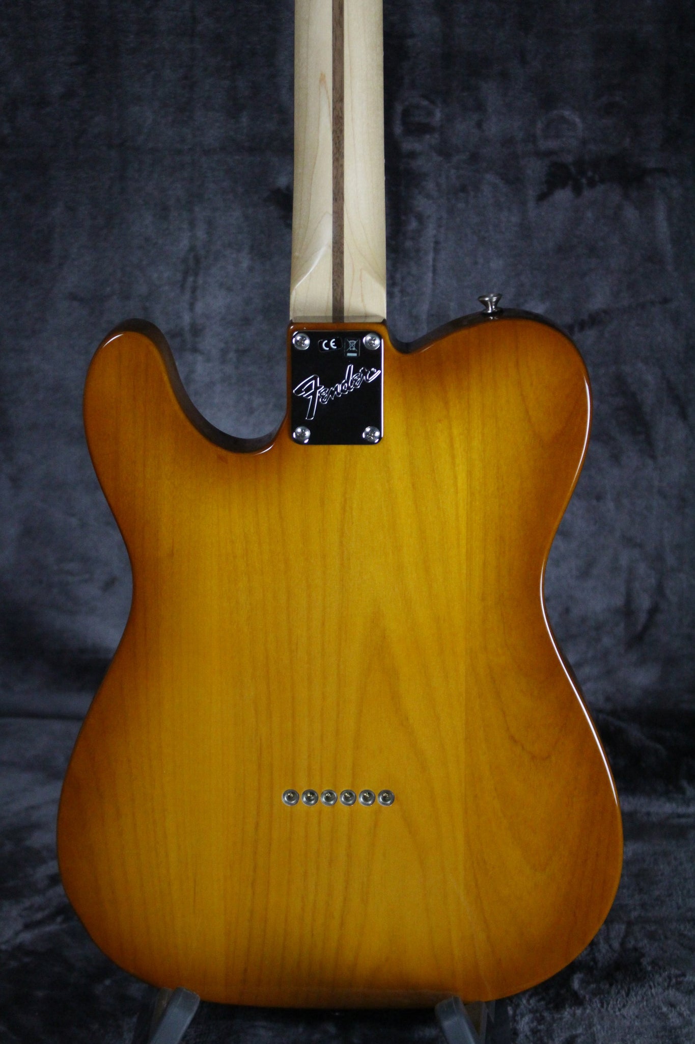 Summary: The Corona, CA.-crafted American Performer Telecaster combines exceptional Fender tone and authentic feel with modern materials and player-oriented features. It comes equipped with two Yosemite single coil pickups and Fender vintage style tuning keys. It has a beautiful Honey Burst finish with a black pickguard.