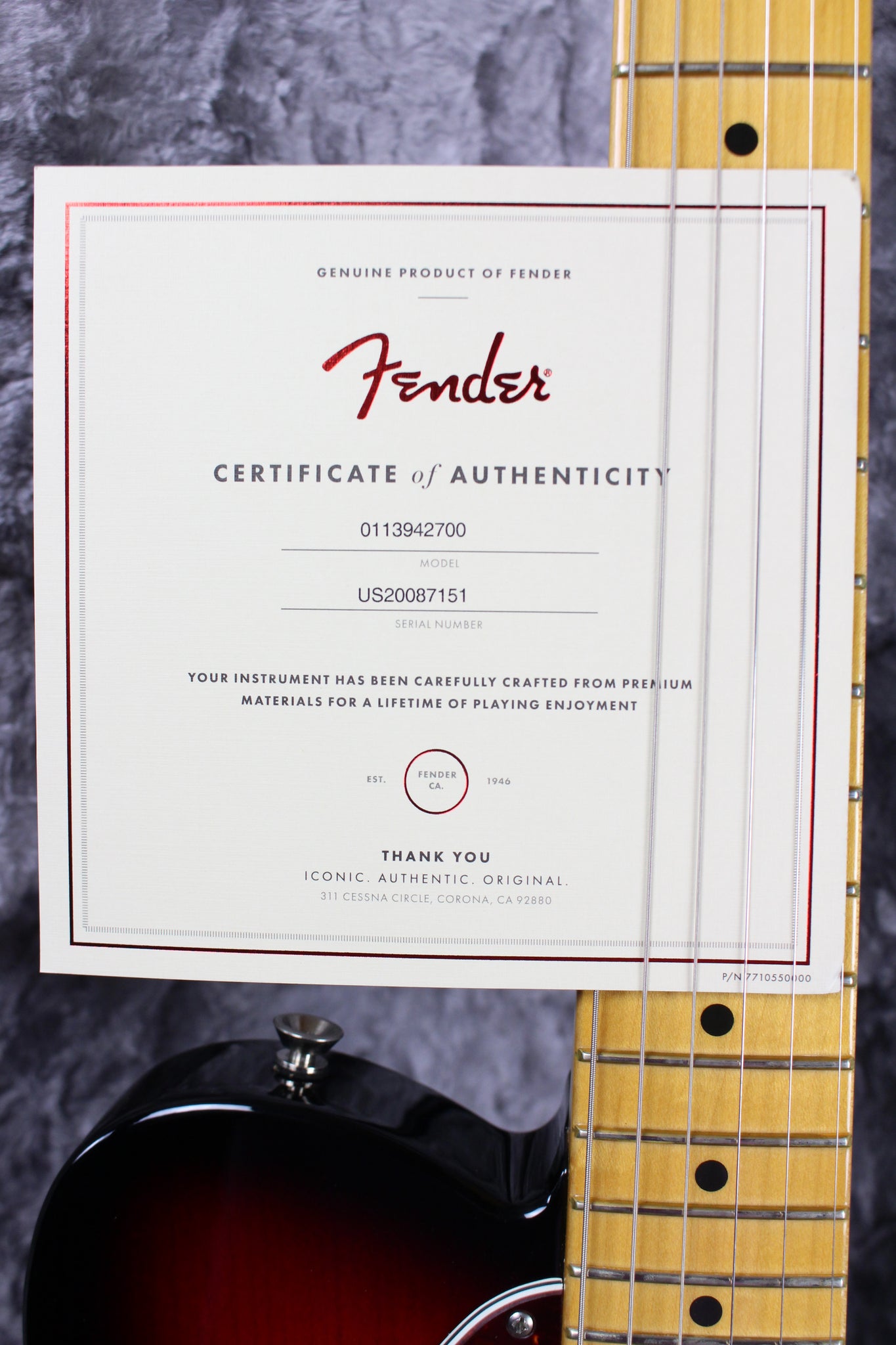 Pickups/Hardware: V-Mod II Single-Coil Tele pickups, Fender Standard Cast/Sealed Staggered tuning keys, 3-Saddle Top-Load/String-Through Tele bridge with Compensated Brass Bullet Saddles, Knurled Dome knobs, bone nut.