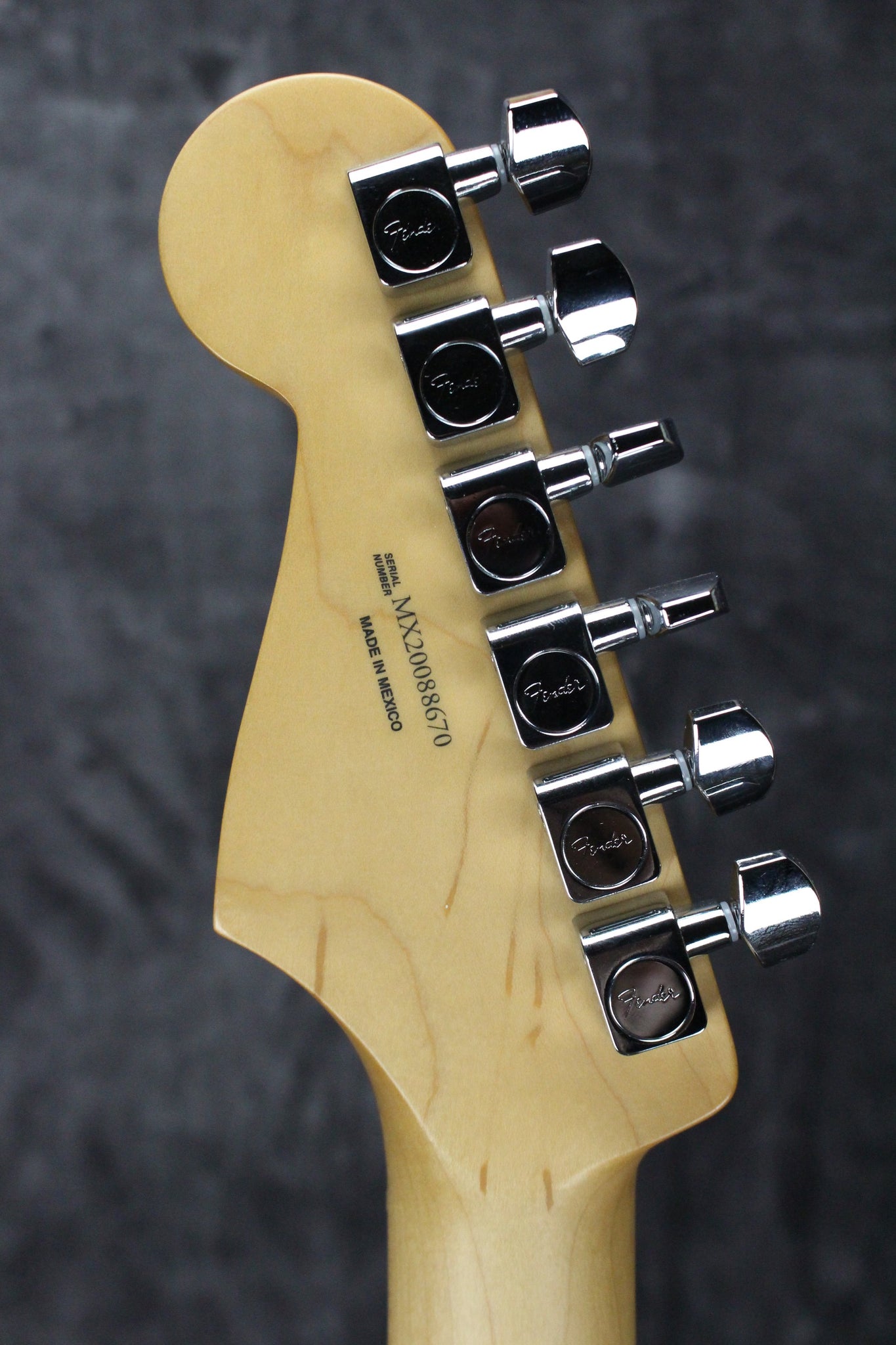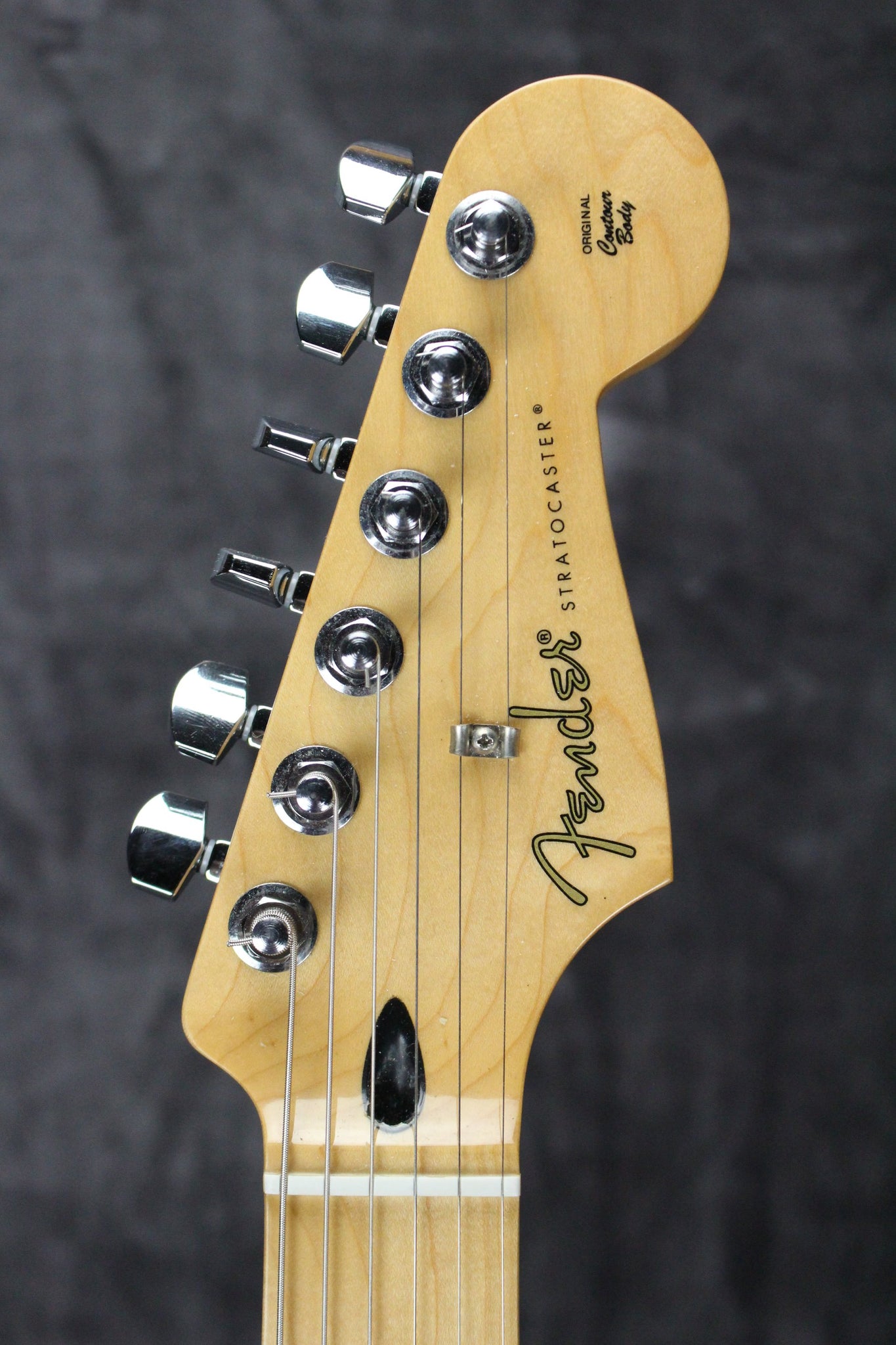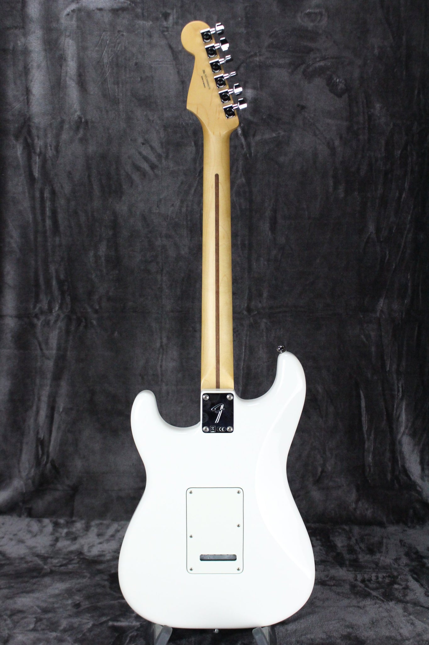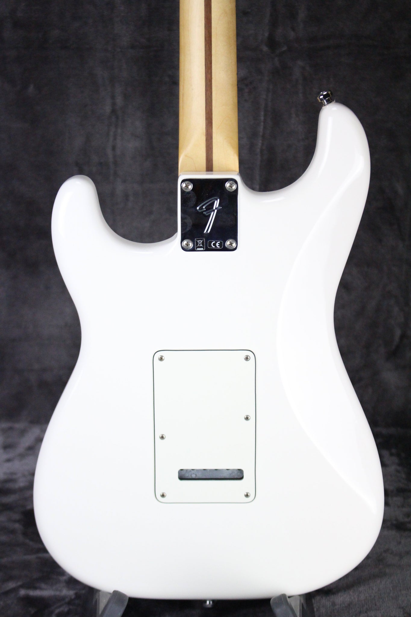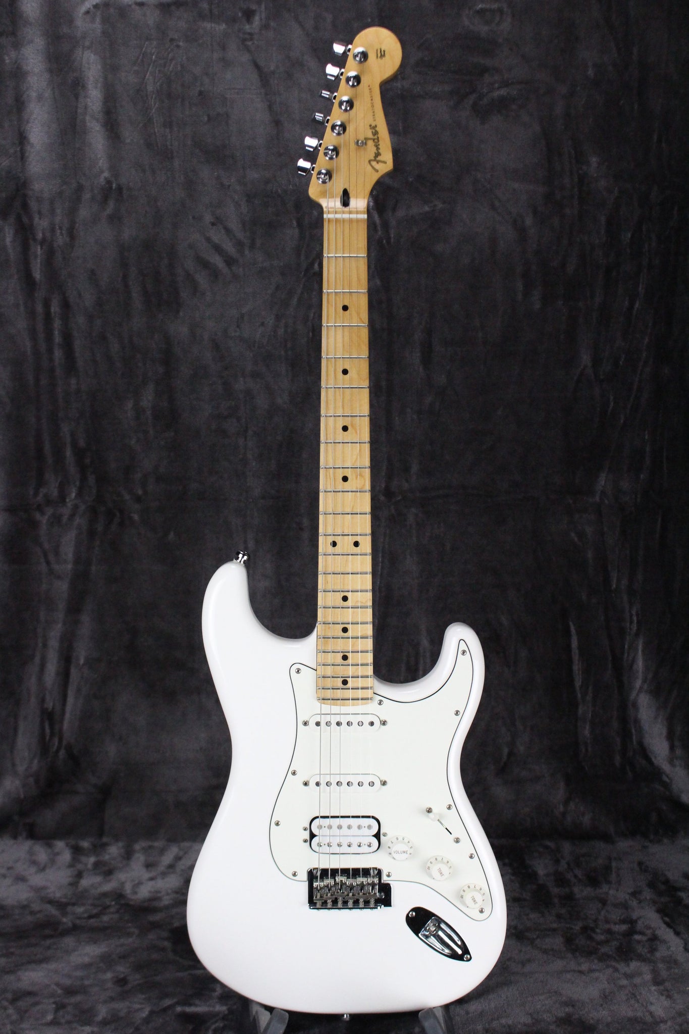 Body: Solid body Stratocaster with an Olympic White finish.