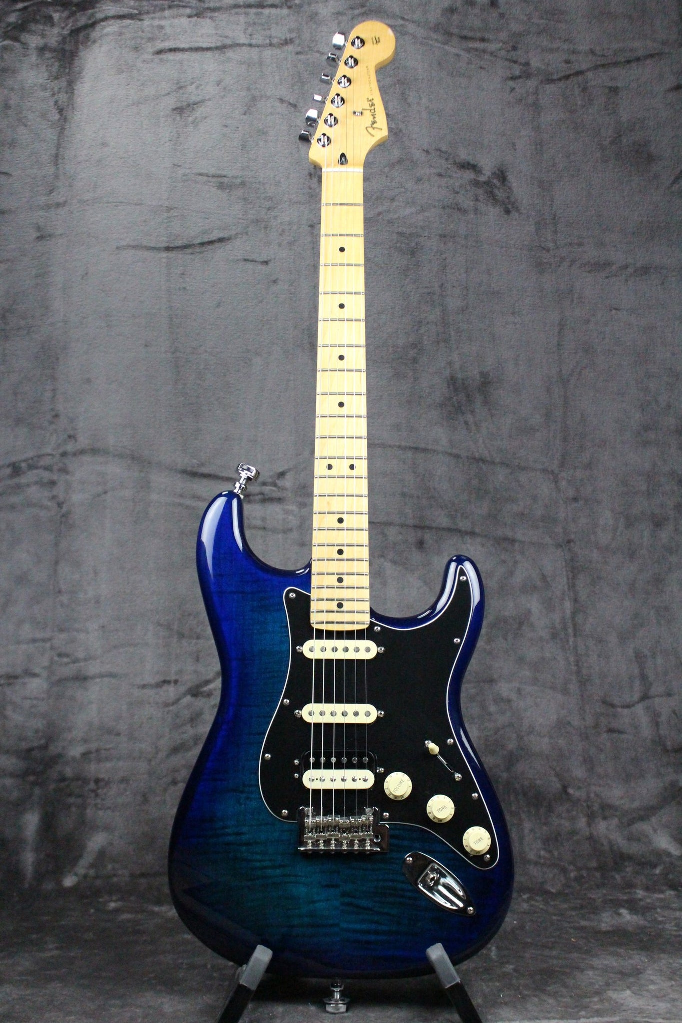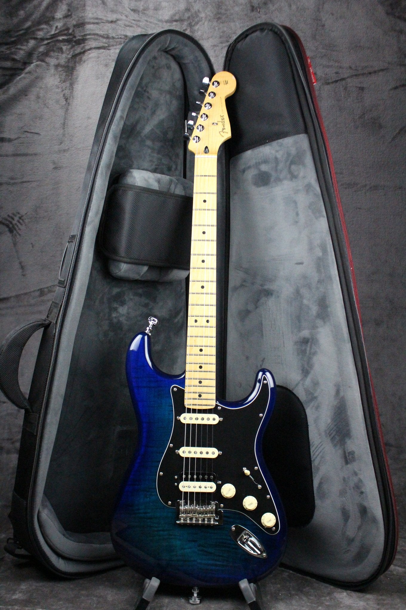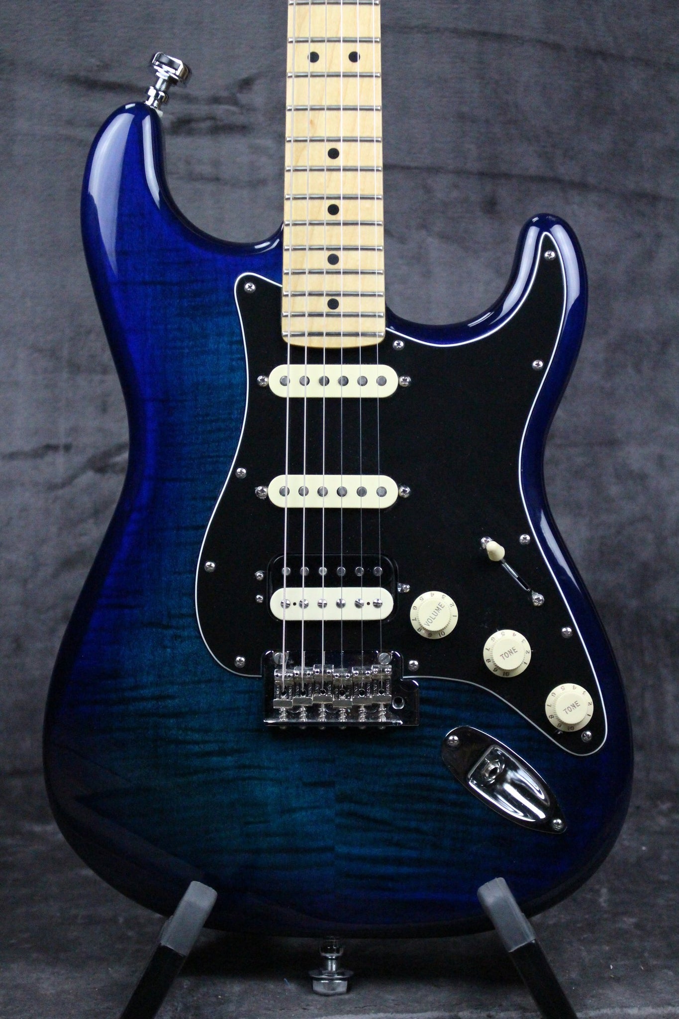 Summary: This Limited-Edition Player Series Stratocaster puts all the classic features of the Strat at your fingertips while adding a modern edge, plus a bridge position humbucker for a little more rock-and-roll attitude. With a beautifully flamed maple top over a solid alder body, a 22-fret maple fingerboard with a contemporary 9.5" radius for easy bending and an updated 2-point fulcrum tremolo bridge, the Player Series Stratocaster Plus Top is primed and ready to carry you along your musical voyage. If you're the kind of Strat player who wants more punch out of the bridge position, this distinctive Limited-Edition Fender Standard HSS Stratocaster is made for you. It's got that classic look and feel that only a Strat can deliver, with the added muscle of a humbucking pickup, so you can go from glassy single-coil tones to heavyweight growl and scream with the flip of a switch. This special Strat features a cool look with Blue Burst finish and Black pickguard.