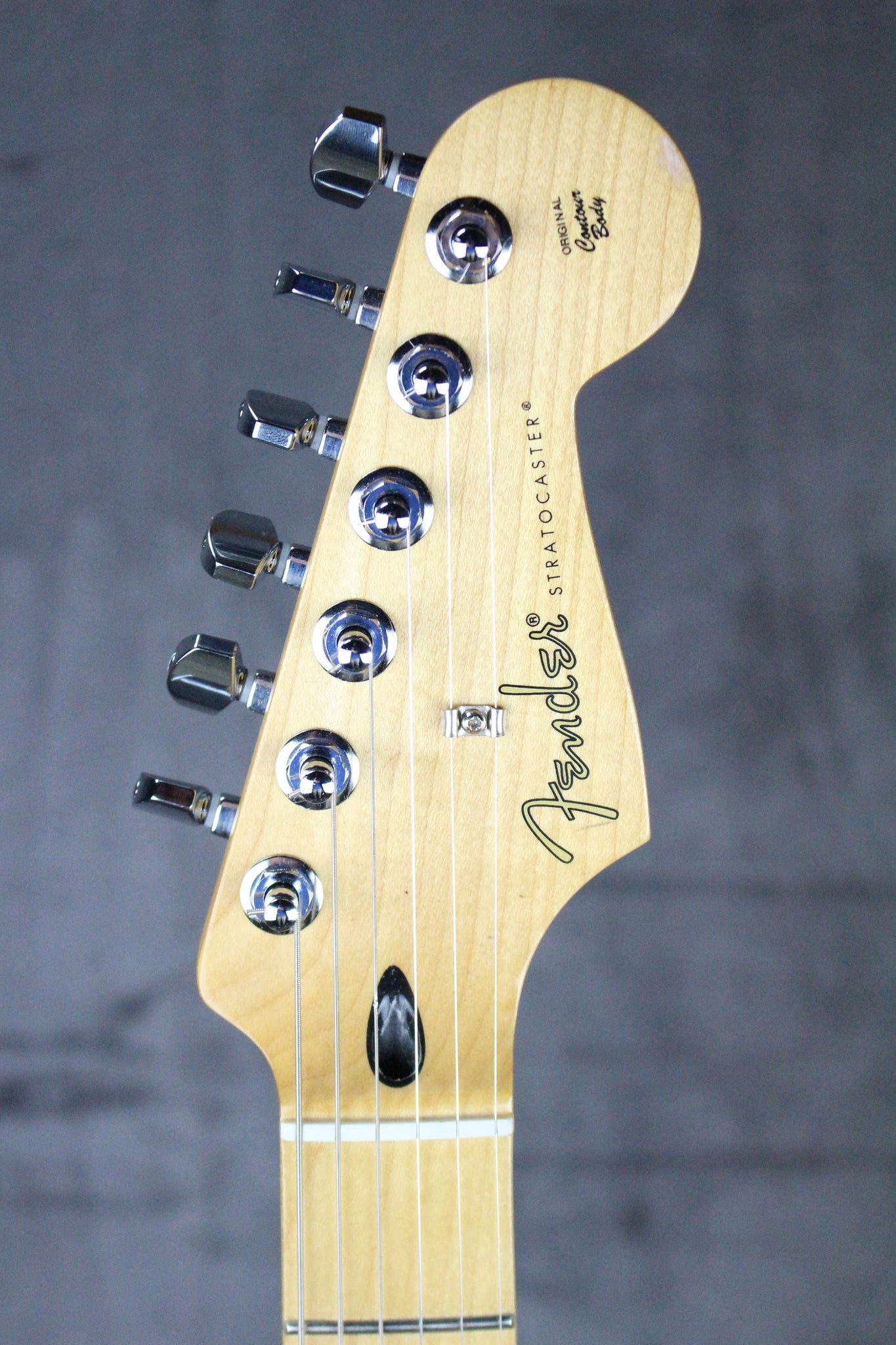 Pickups/Hardware: Two Player series single coil pickups in the neck/middle position, one Player series humbucking pickup in the bridge position, master volume knob/two tone knobs, five-way pickup selector, 2-point Fulcrum tremolo system with bent steel saddles, locking Fender tuning keys, Fender strap locks.