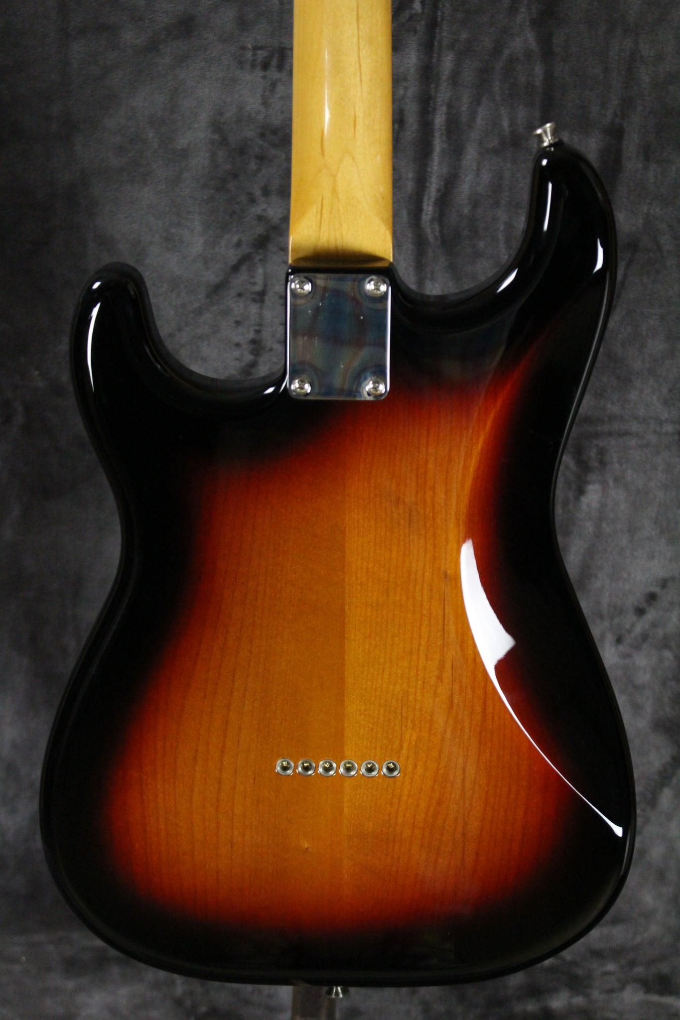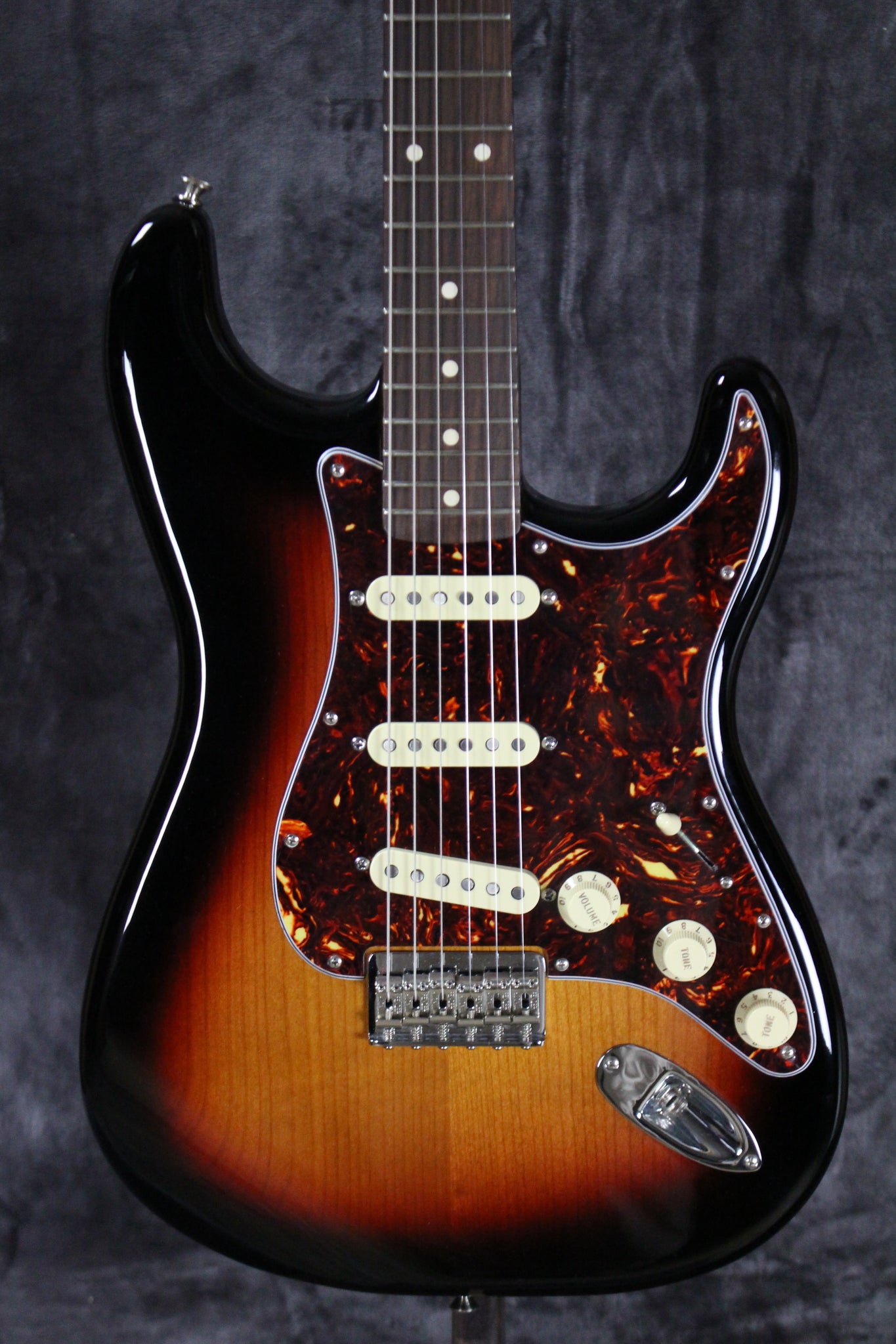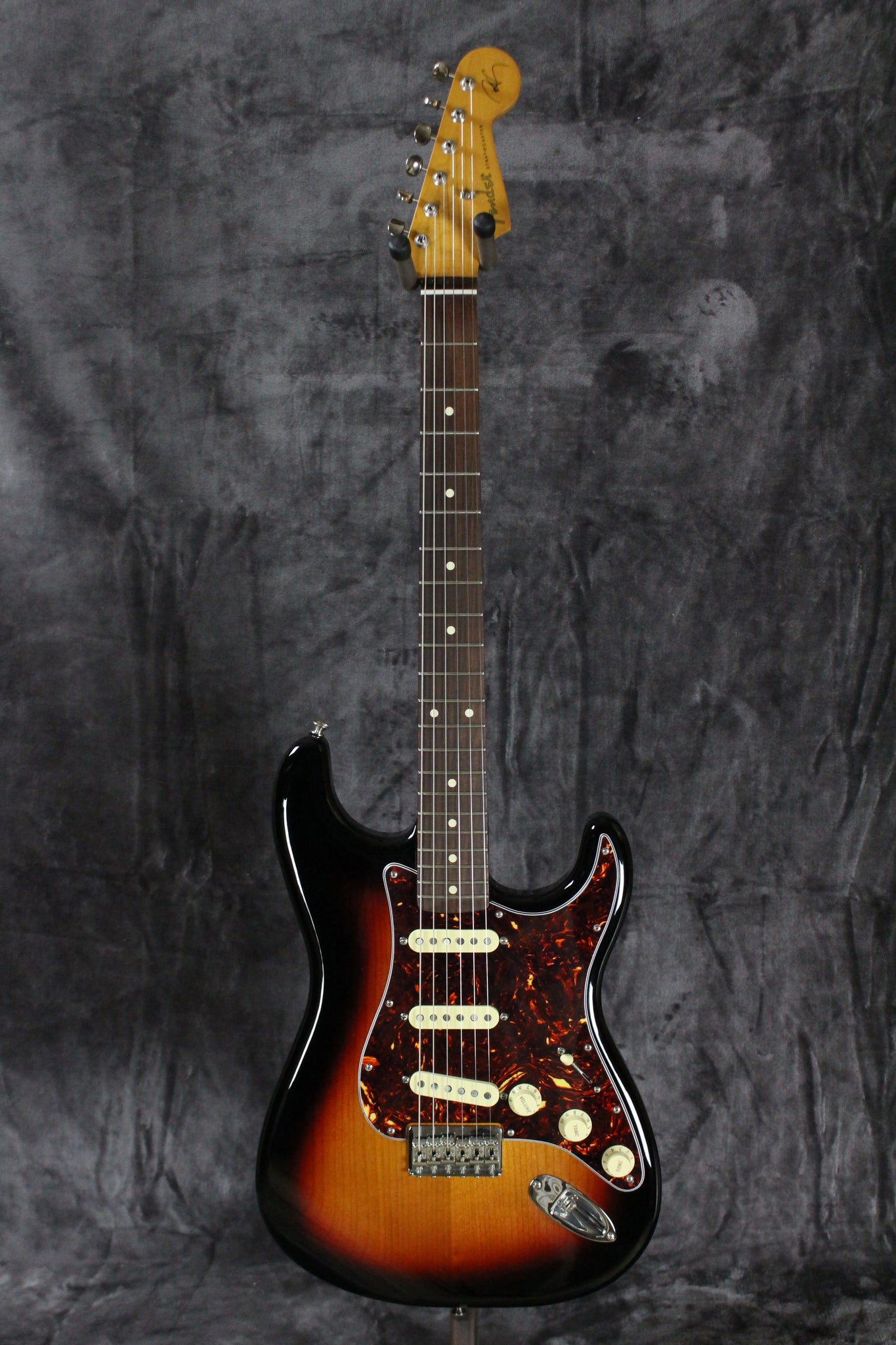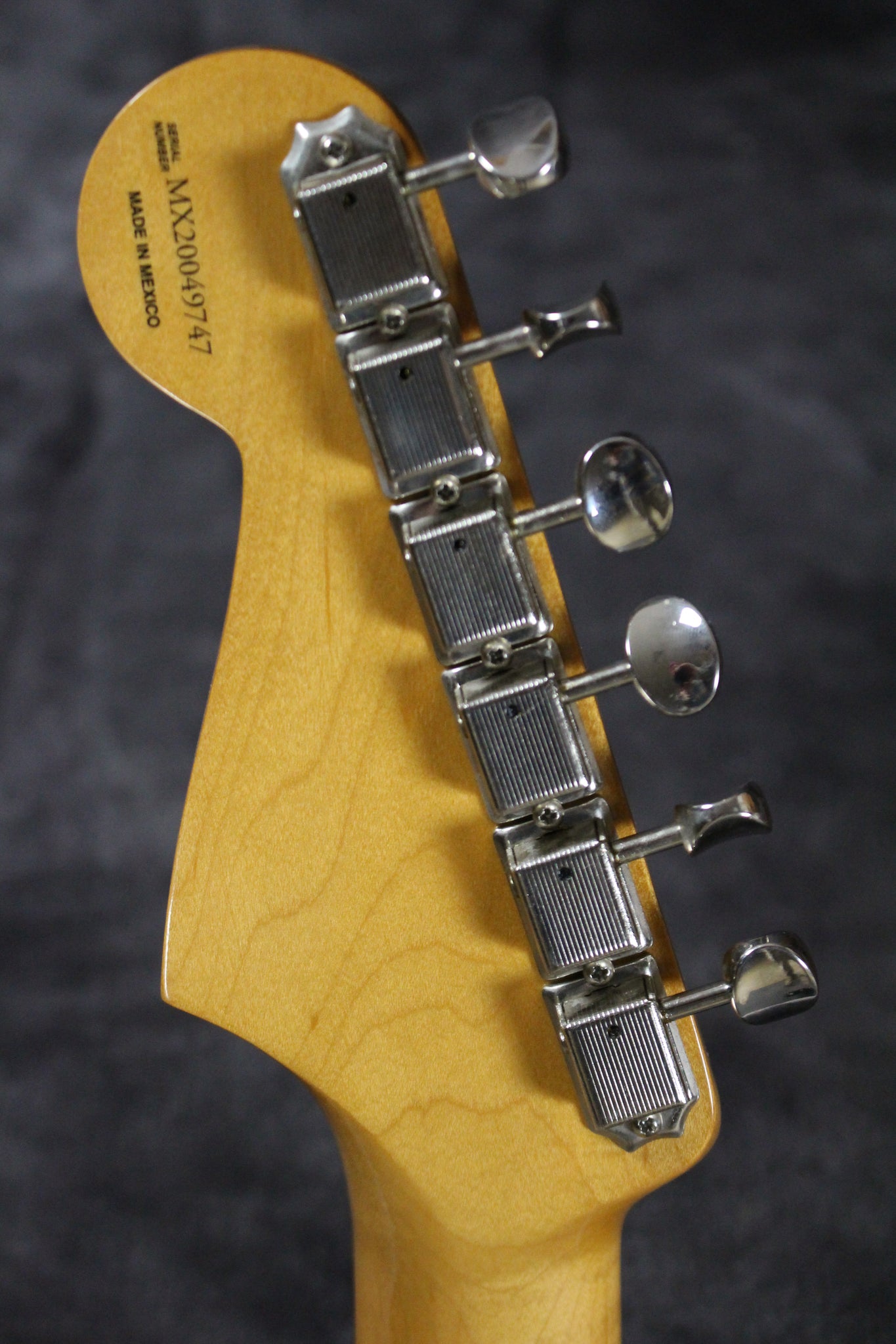 Pickups/Hardware: Fender Vintage-Style Single-Coil Strat pickups, vintage style tuning keys, 6-saddle American Vintage strings-through-body Strat hardtail bridge, white plastic knobs, synthetic bone nut.