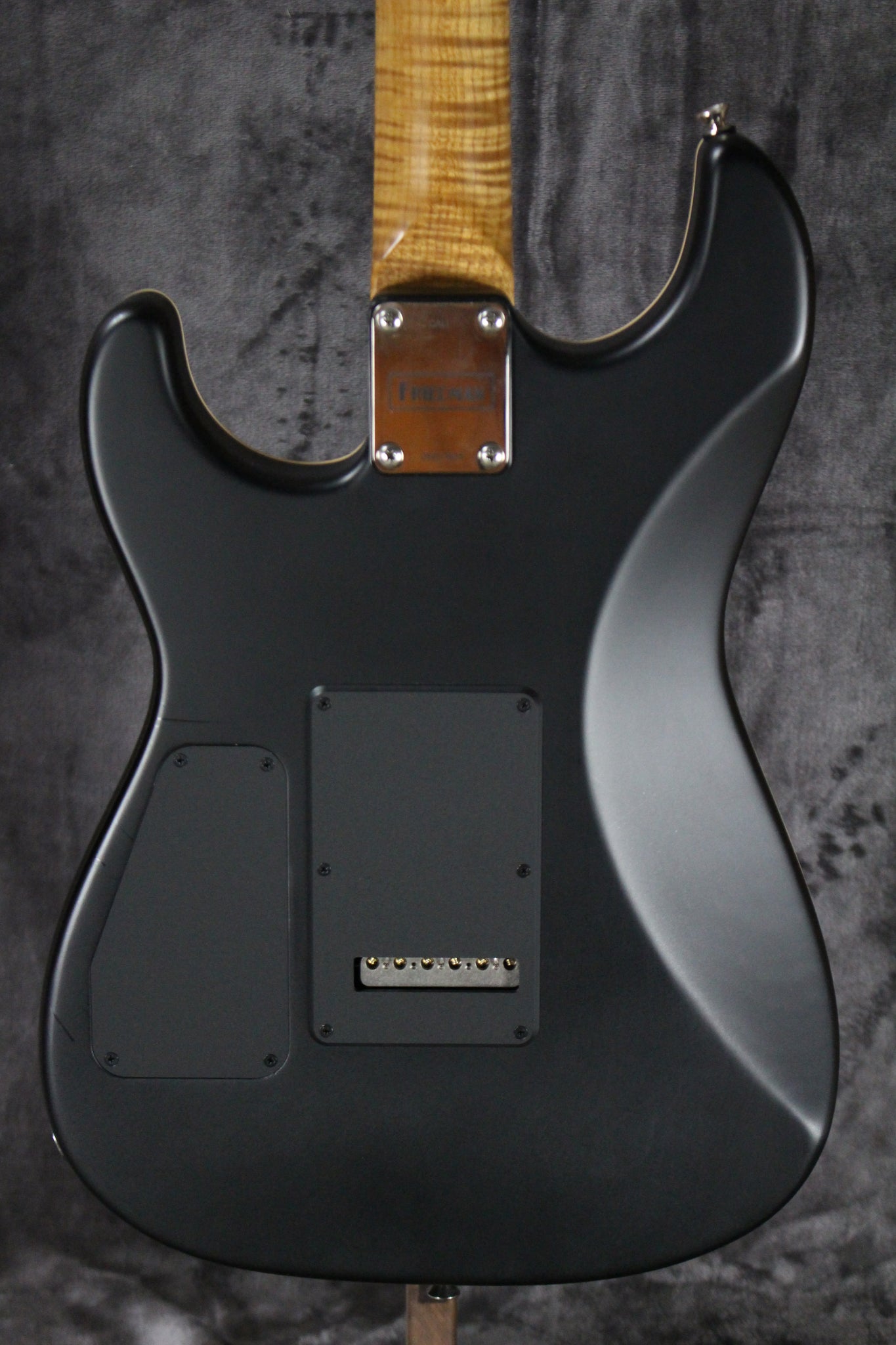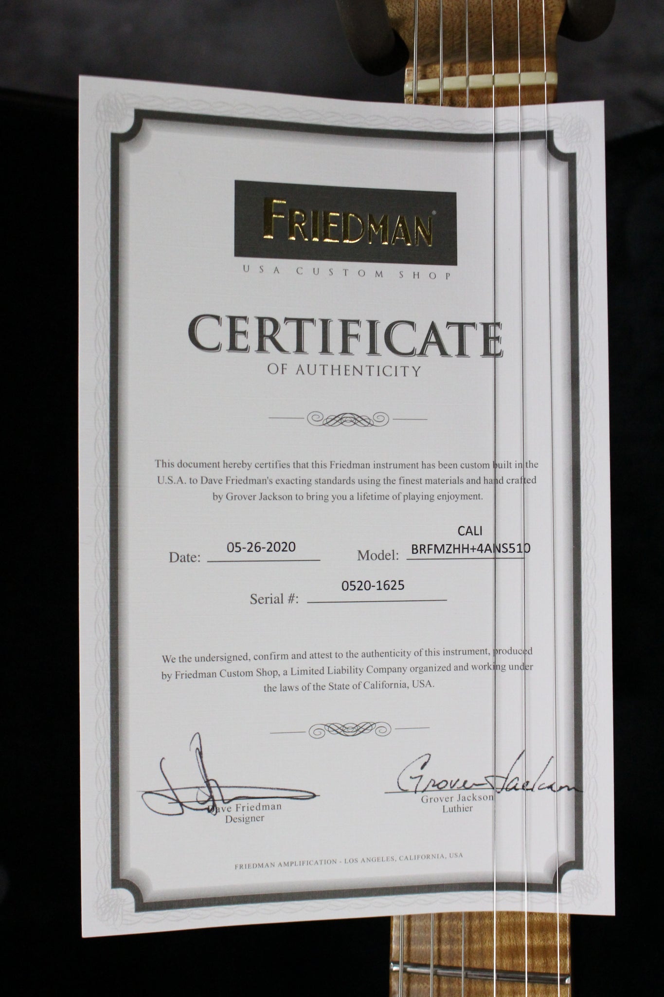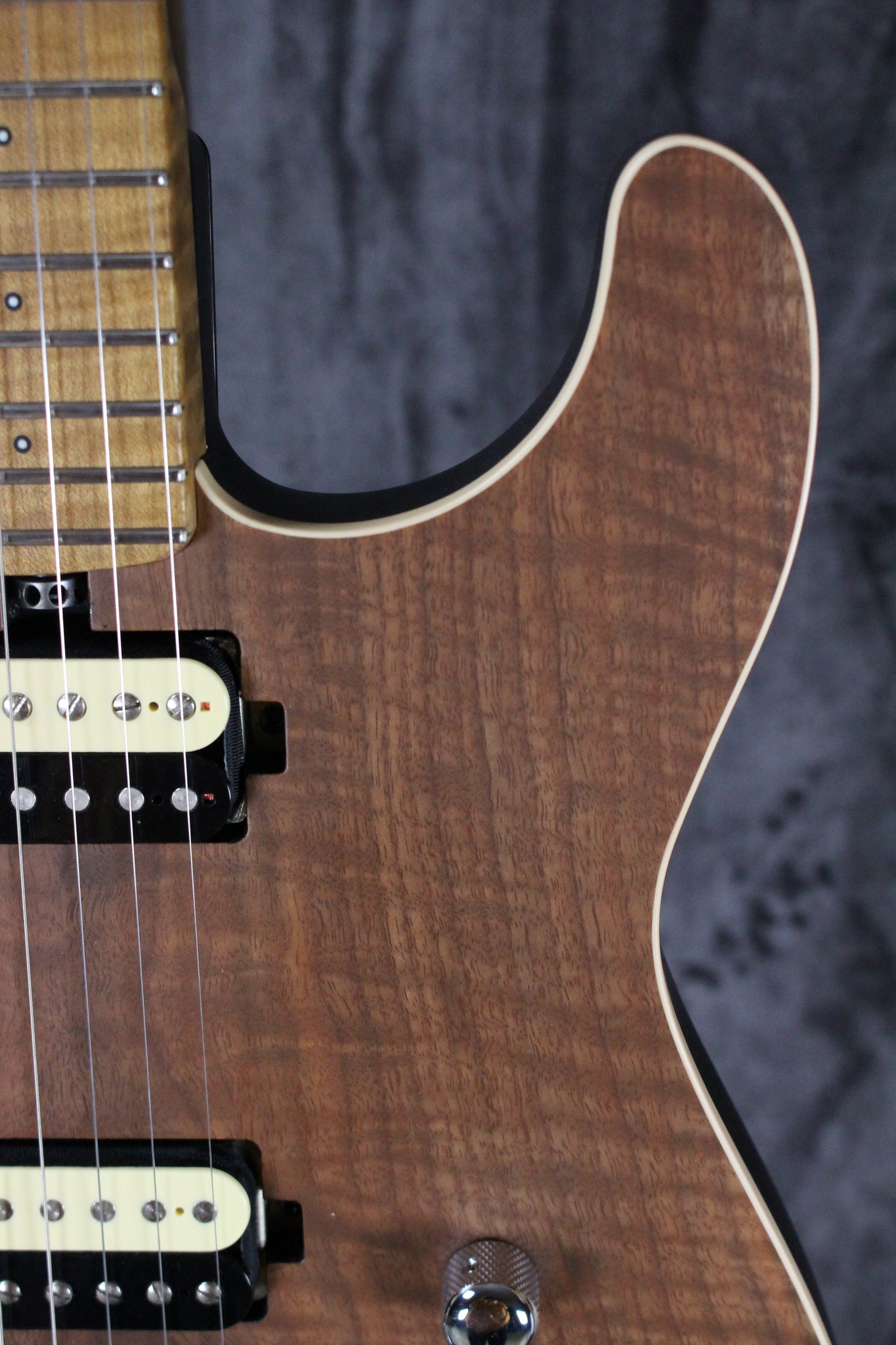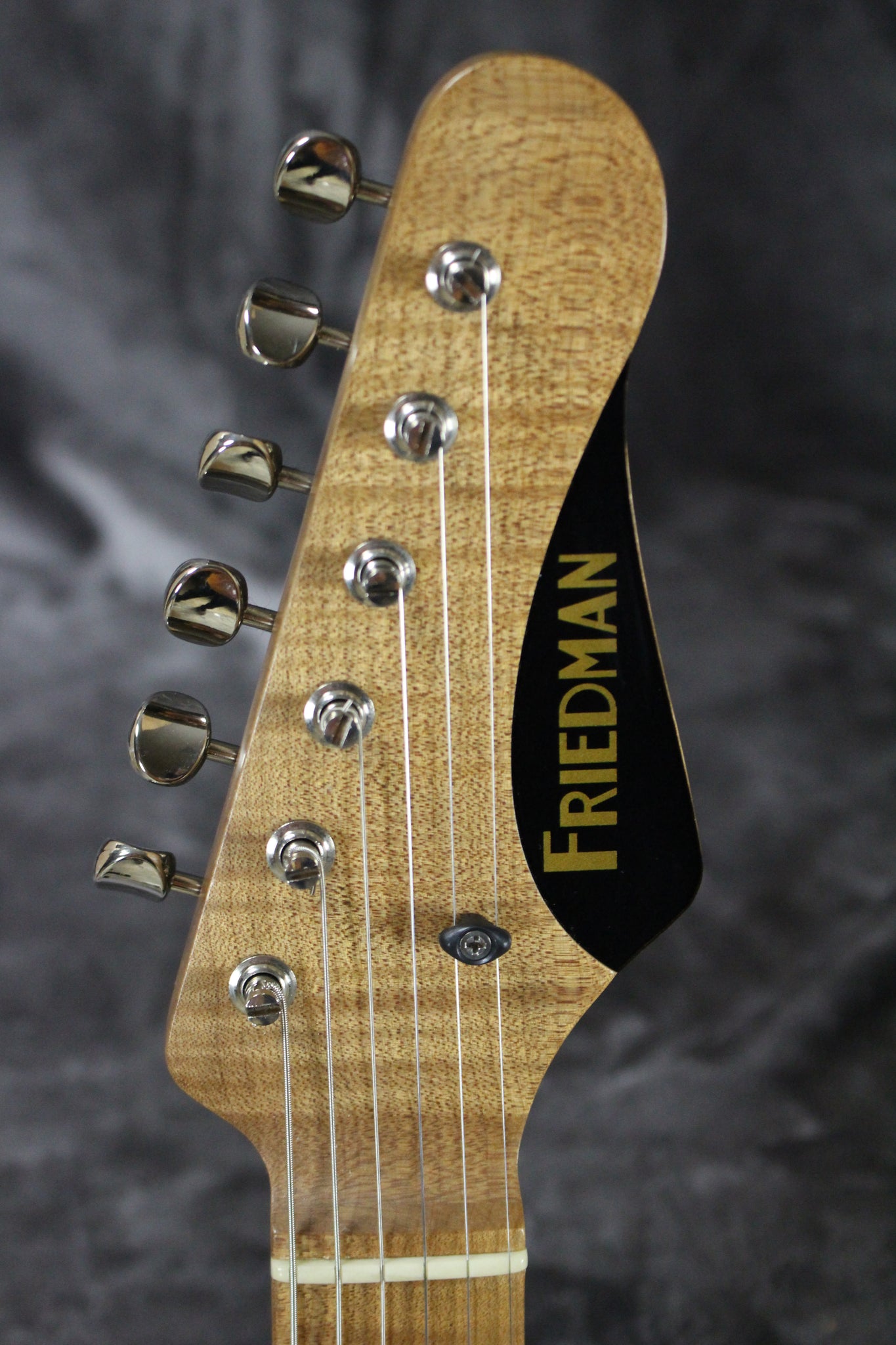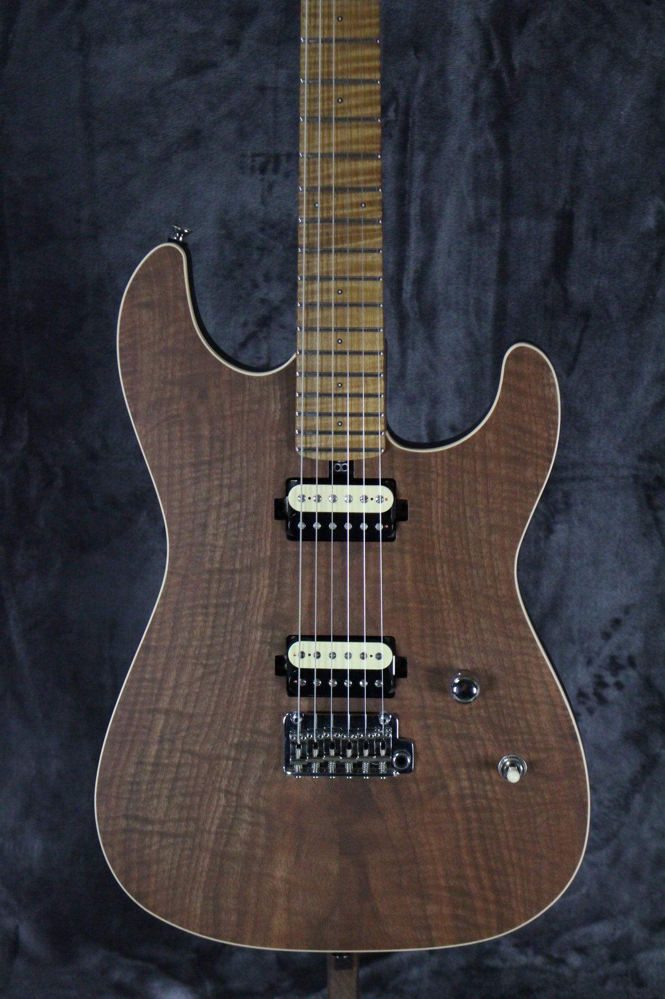 This 2020 Friedman Cali features a splendid 4A Figured Walnut top and a gorgeous roasted flamed Maple neck. It has a fat bass response, snarling midrange, and sizzling high-end. The flatter radius is what really makes this guitar fit for speed and it's easier to play a thousand notes a second if you only have to worry about one volume knob and one three-way switch.