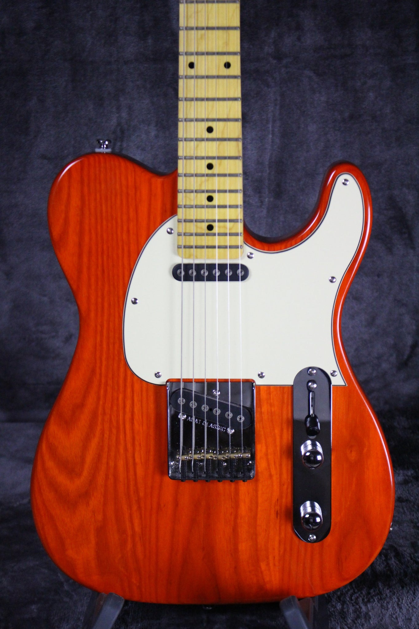 Body: Sassafras with a translucent orange finish.