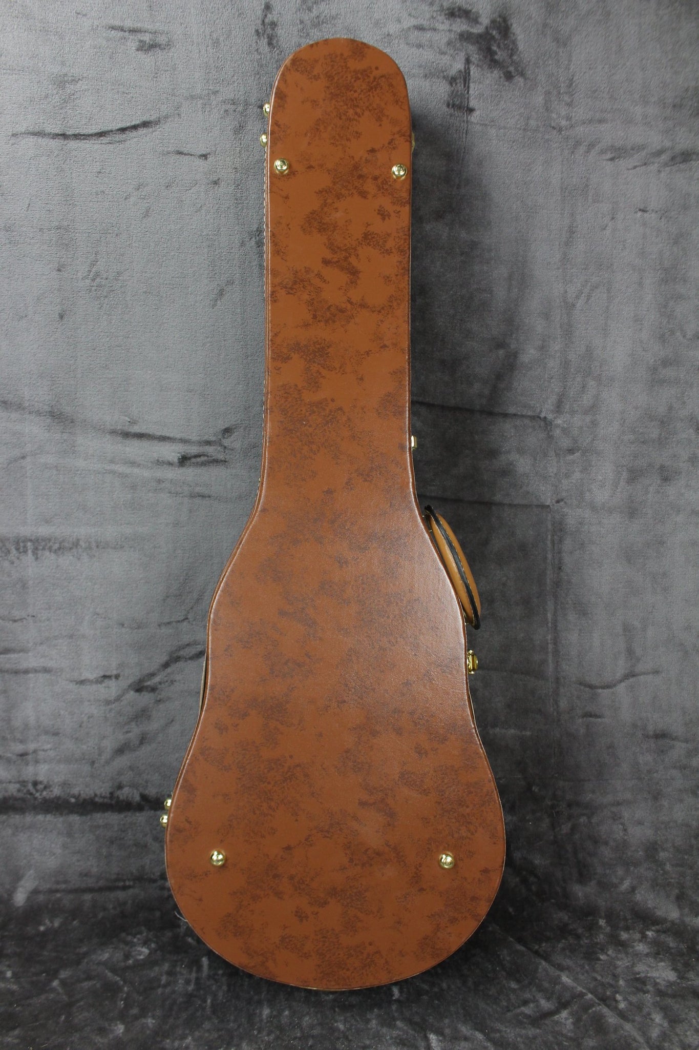 Body: Chambered mahogany with a carved maple top attached with hot hide glue, single-ply cream binding.