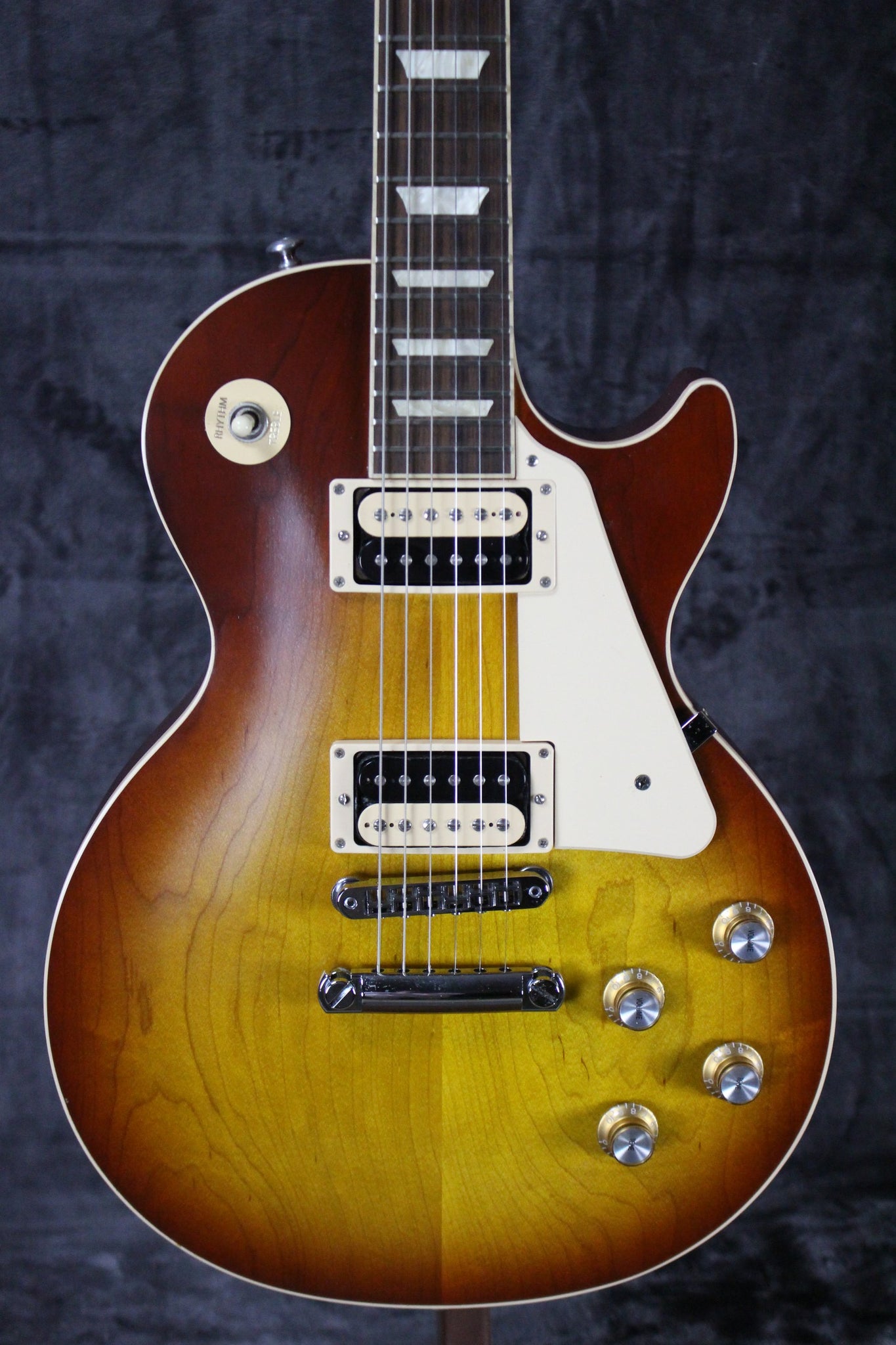 Pickups/Hardware: Equipped with Gibson Tradbucker humbuckers—Alnico II in the neck and Alnico V in the bridge—both coil-splittable via push/pull pots. Locking Grover tuners, Nashville Tune-O-Matic bridge with aluminum stopbar tailpiece, chrome hardware, top-hat knobs with silver inserts, and a Graph Tech nut.
