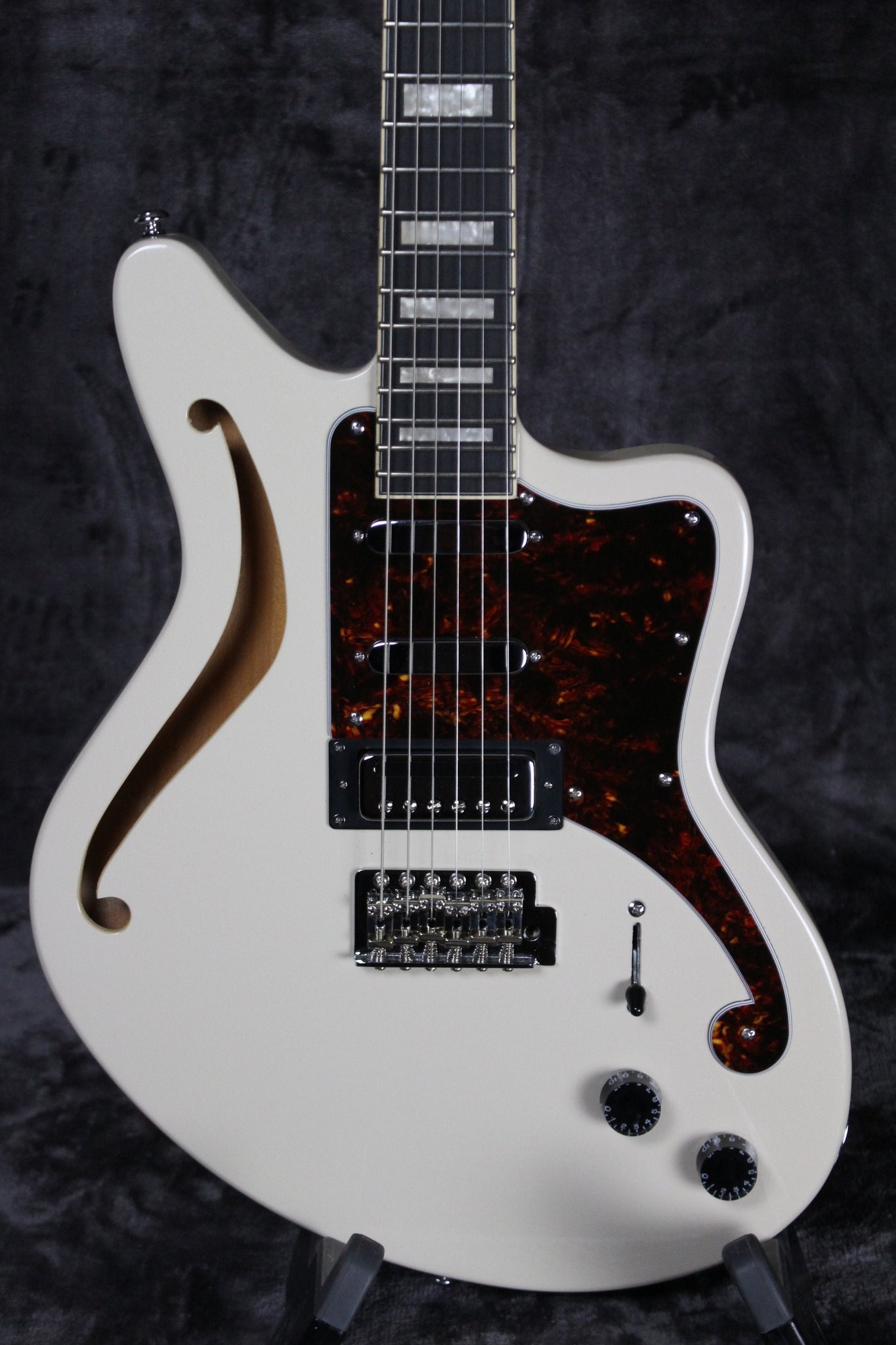 Summary: The D’Angelico Premier Bedford semi-hollow—previously only offered as a Deluxe Limited Edition model—is now available in the Premier Series. Featuring a sleek, modern f-hole design on the upper bout, the Bedford integrates a warm acoustic element into a three-pickup electronics configuration that offers a bold variety of tones. The combination of two Duncan Designed single-coils in the neck and middle positions followed by a Duncan Designed mini-humbucker in the bridge creates a uniquely bold, but familiarly spanky tonal palette while a 5-way blade makes tone selection simple.