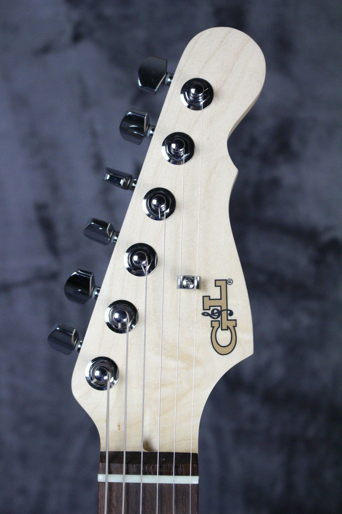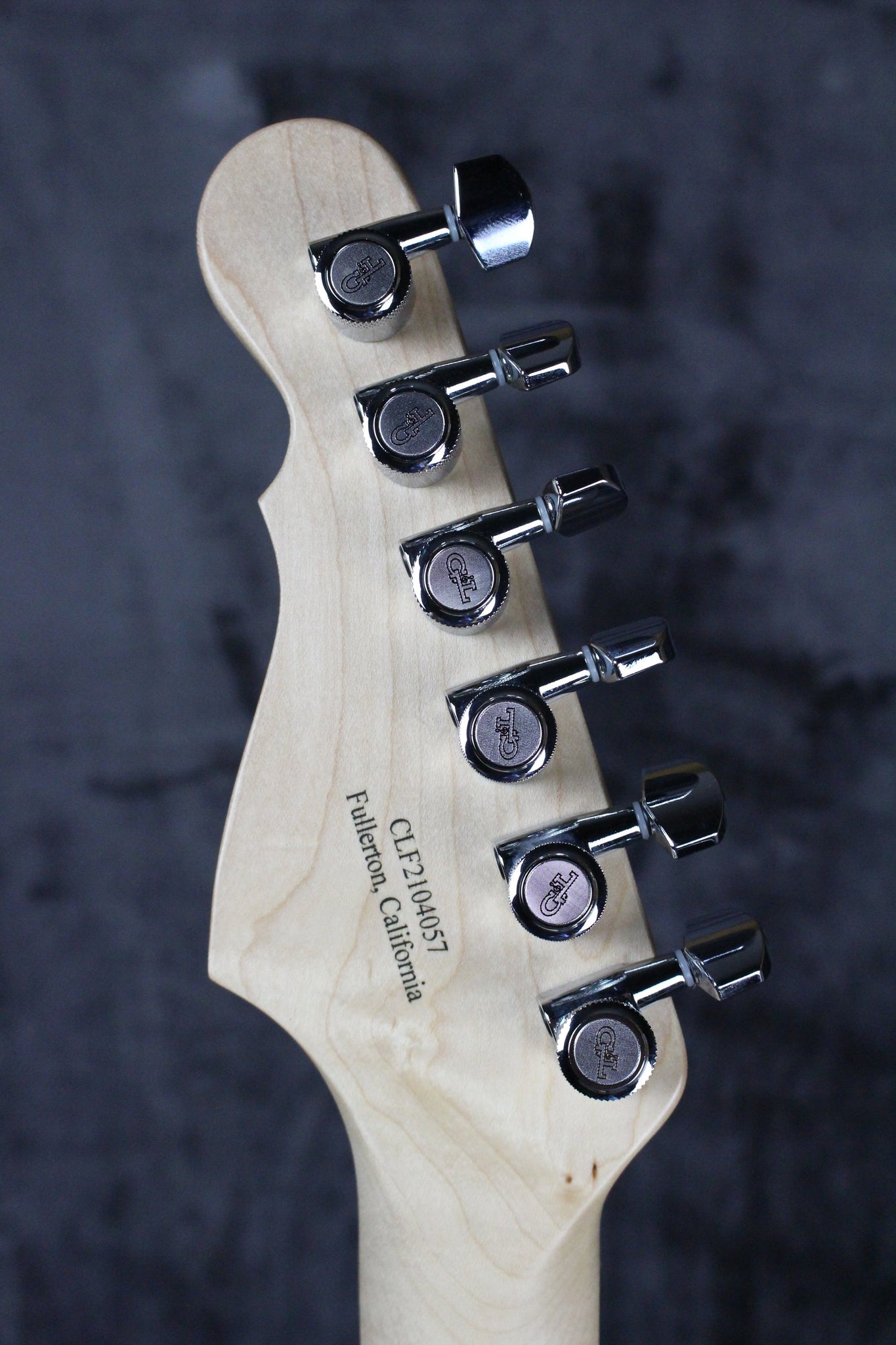 Pickups/Hardware: Three G&L Dual-Blade humbuckers, bone nut, G&L locking tuners, dual fulcrum tremolo system, tortoise pickguard, 5-position blade selector/volume/bass/treble controls.