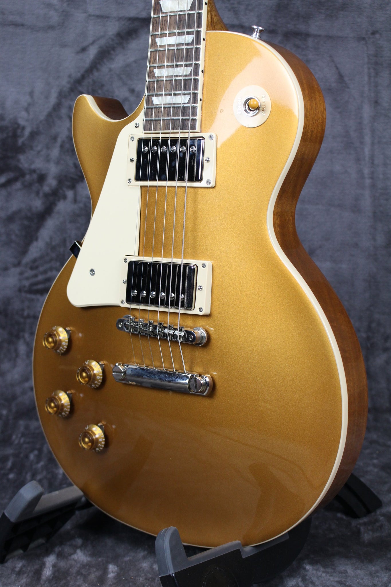 Body: Solid mahogany with a maple top, Goldtop with a nitrocellulose finish.