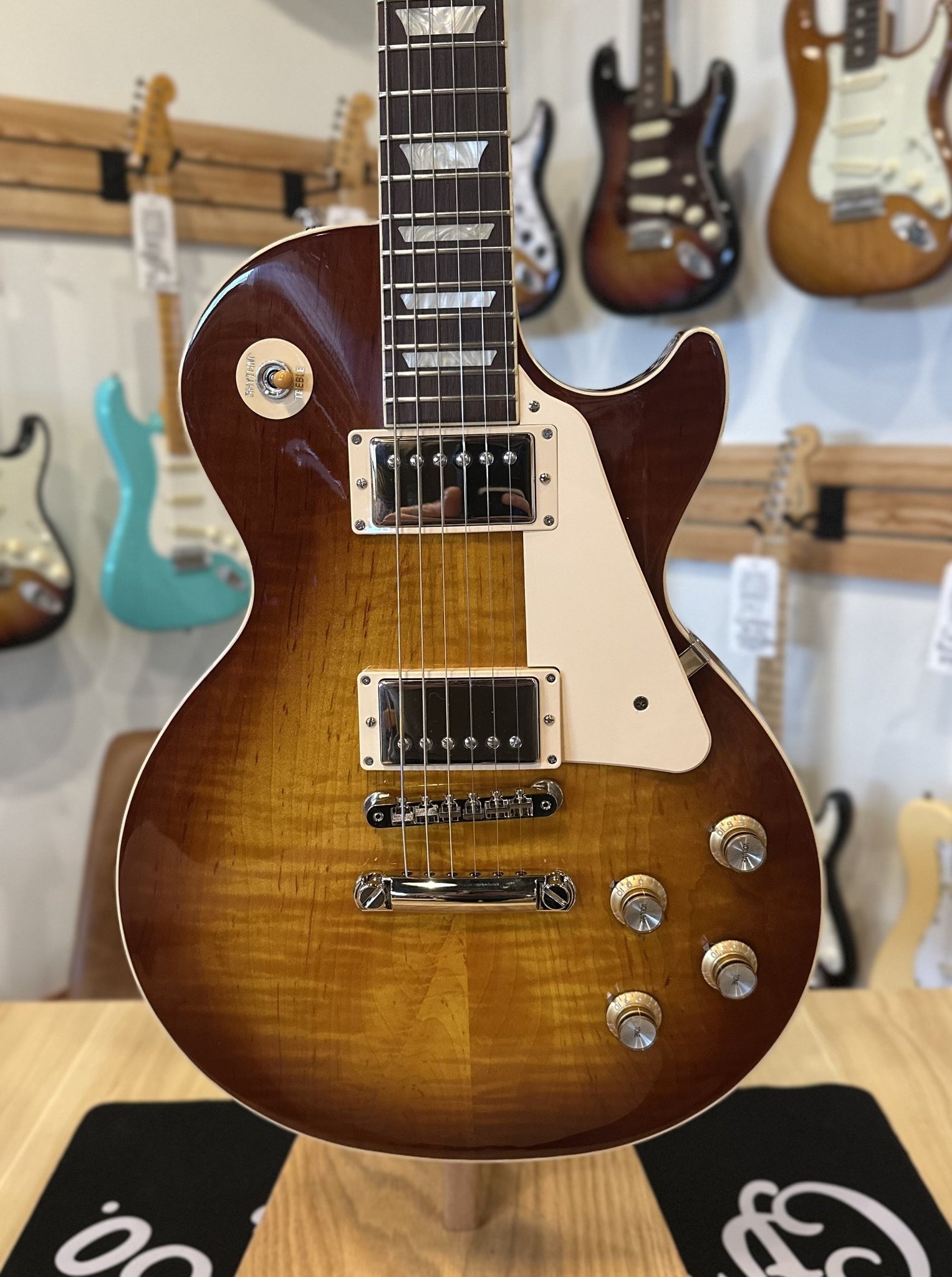 The 2021 Gibson Les Paul Standard '60s in Bourbon Burst brings classic craftsmanship, vintage-inspired tone, and stunning aesthetics together in one iconic instrument. Built for players who appreciate the golden era of Gibson design, this model stays true to its roots with period-correct specs and a timeless finish that highlights the figured AA maple top against a rich mahogany body.