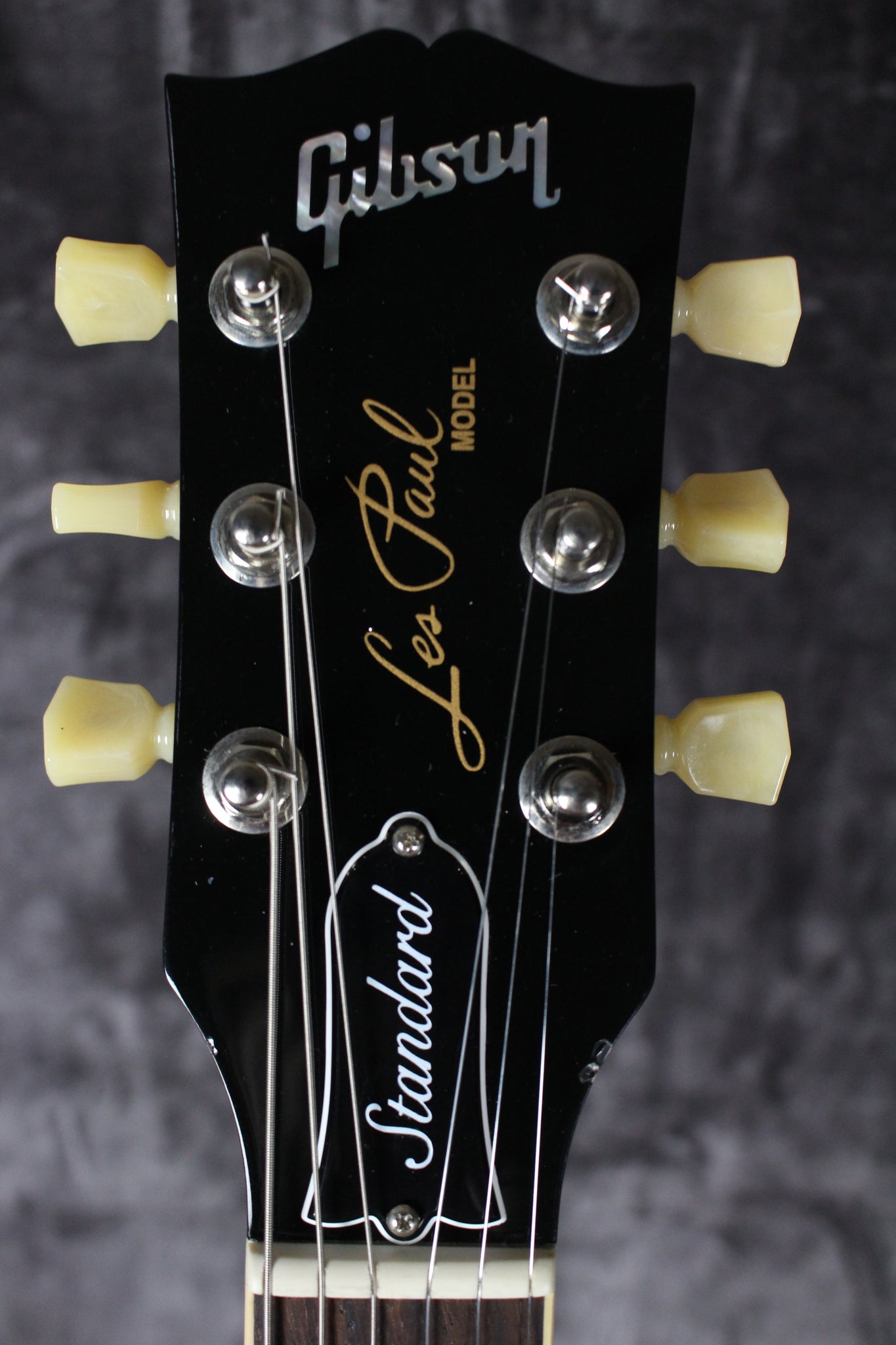 Summary: The Les Paul Standard 50's has a solid mahogany body with a maple top, a rounded 50's-style mahogany neck with a rosewood fingerboard and trapezoid inlays. It's equipped with an ABR-1, the classic-style Tune-O-Matic bridge, aluminum stop bar tailpiece, vintage deluxe tuners with keystone buttons, and aged gold tophat knobs. The calibrated Burstbucker pickups are loaded with AlNiCo II magnets, audio taper potentiometers and orange drop capacitors.