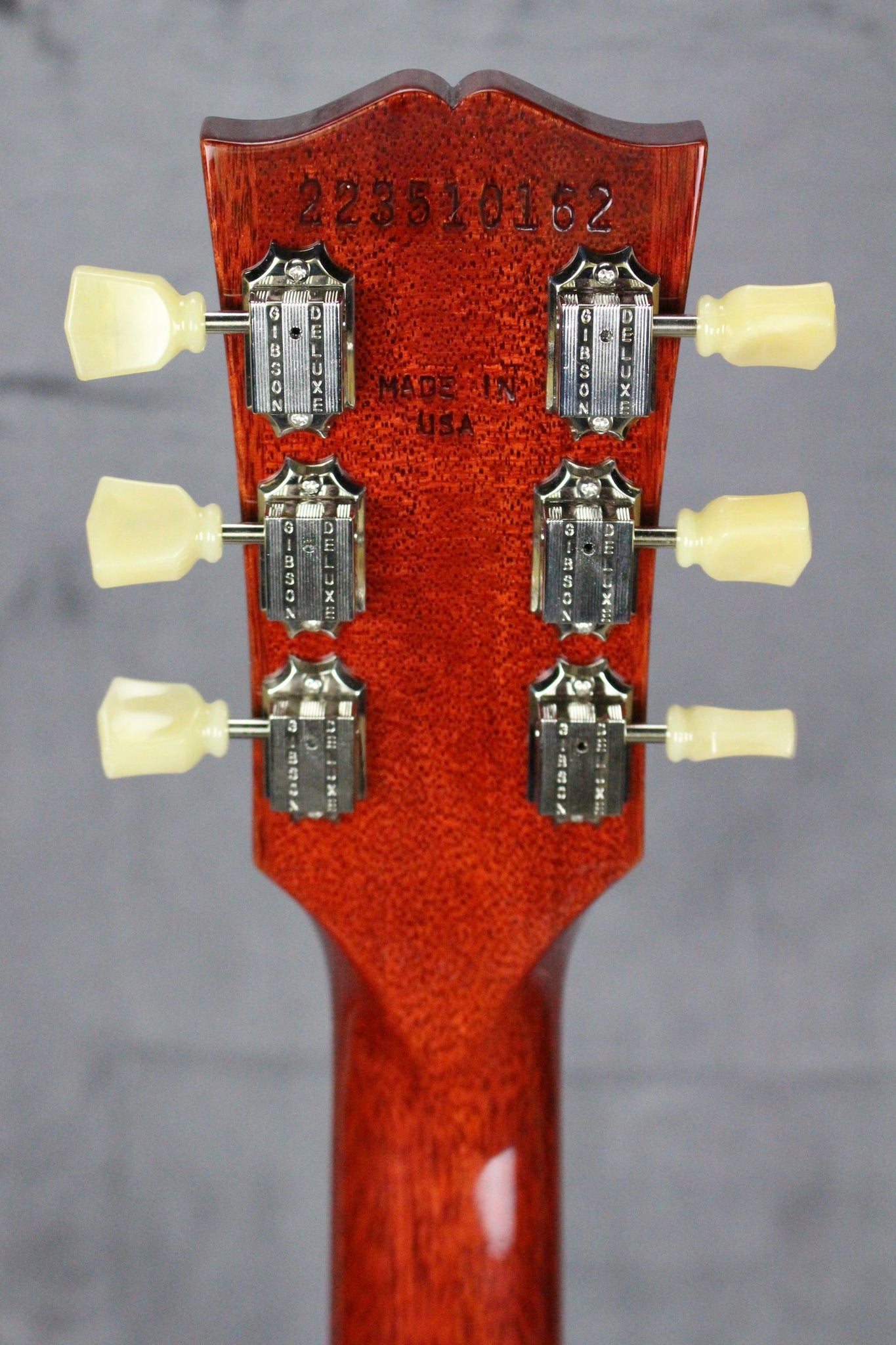 Pickups/Hardware: Two Burstbucker (61R/61T) humbuckers, 2 Volume, 2 Tone, Hand-wired with Orange Drop Capacitors, 3-Way pickup selector, ABR-1 bridge, Maestro Vibrola tailpiece, Kluson Deluxe tuning keys, black multi-ply pickguard.
