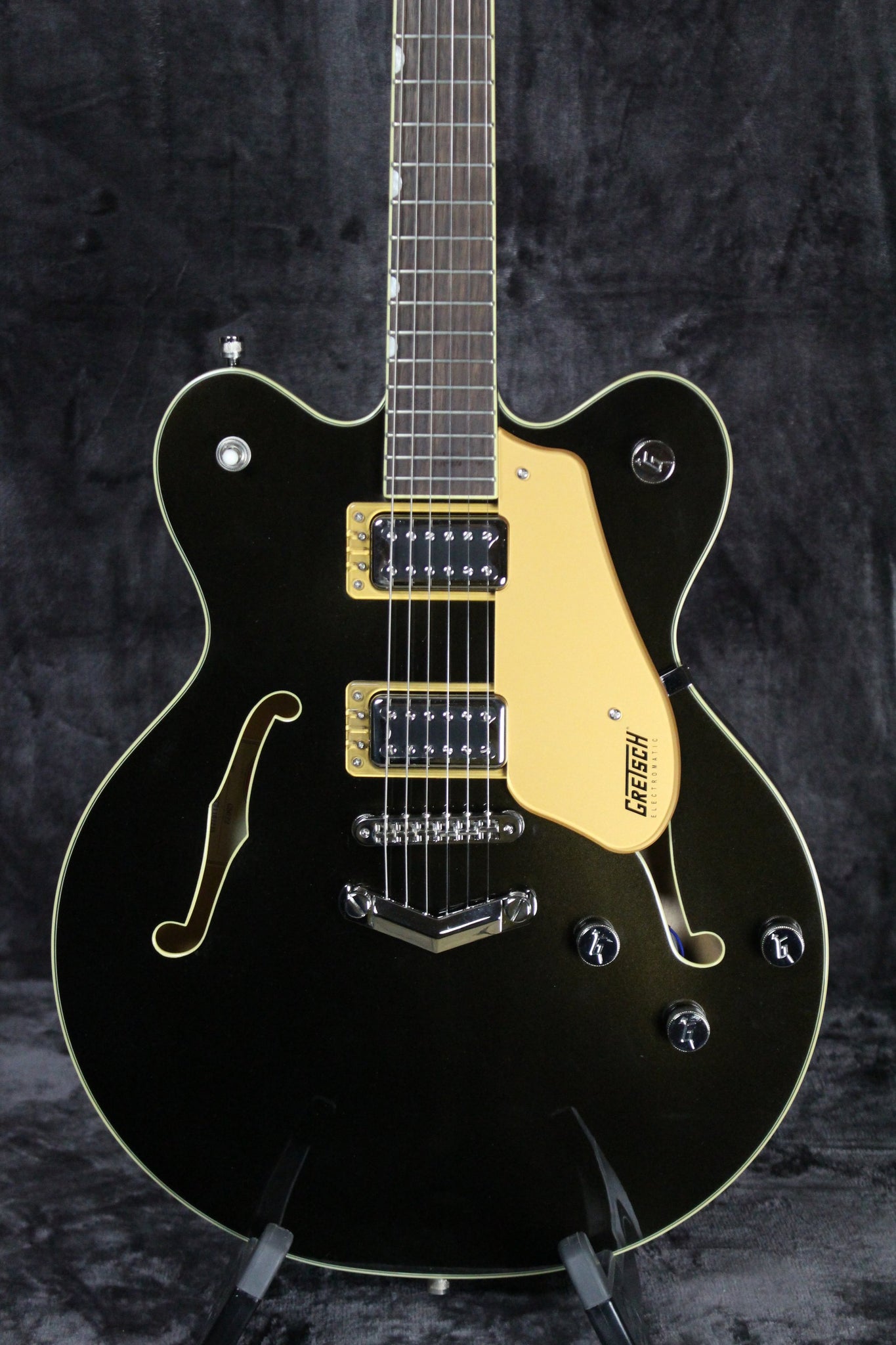 Summary: The Gretsch G5622 exhibits a balanced sound, thanks to its Black Top Broad’Tron humbuckers, while a weight-relieved center block provides feedback-free performance, even under high gain. You’ll appreciate the comfortable playability of this semi’s U-shaped neck, and its anchored Adjusto-matic, Gretsch V-Stoptail tailpiece serves up all the sustain you could ever want.
