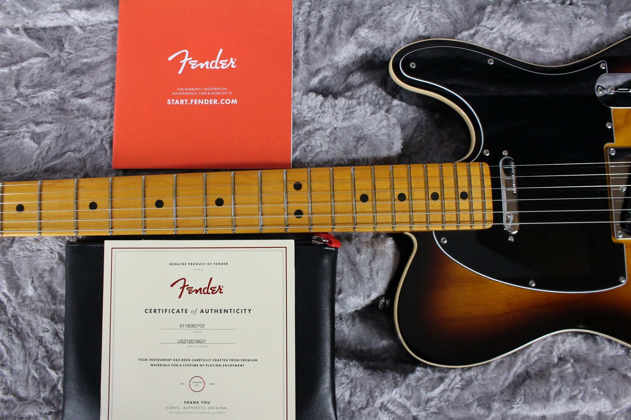 Pickups/Hardware: Ultra Noiseless Vintage pickups,Deluxe Cast/Sealed Locking tuners Stainless steel frets, 6-Saddle American Tele with Chromed Brass Saddles, Knurled Flat-Top knobs, Tusq nut.