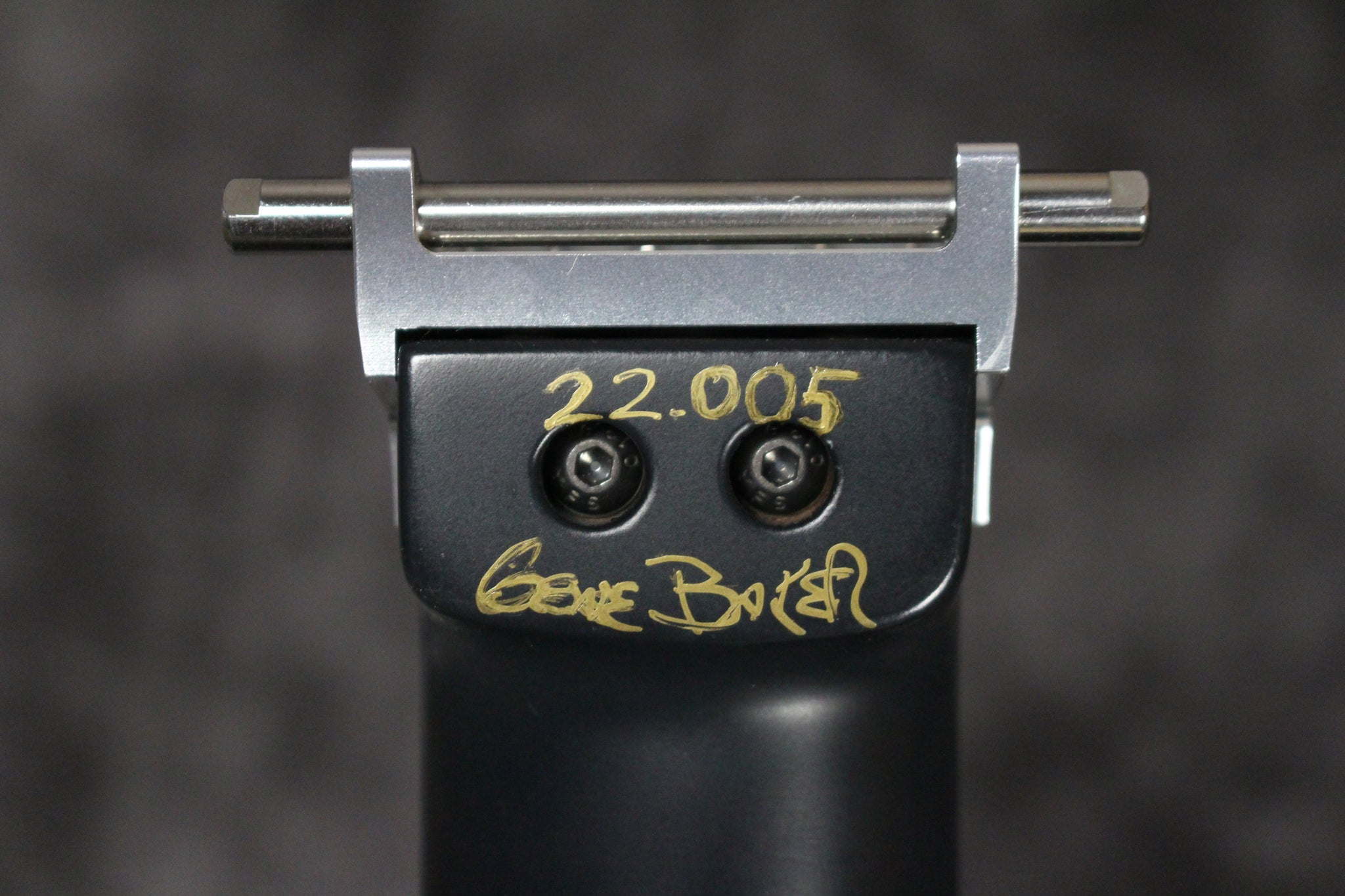 Neck: Mahogany with an Ebony fingerboard, 25.5” scale length, 1.687” nut width, 20” radius, 24 frets, 6105 fret wire, brass circle inlays, “airplane wing” carve.