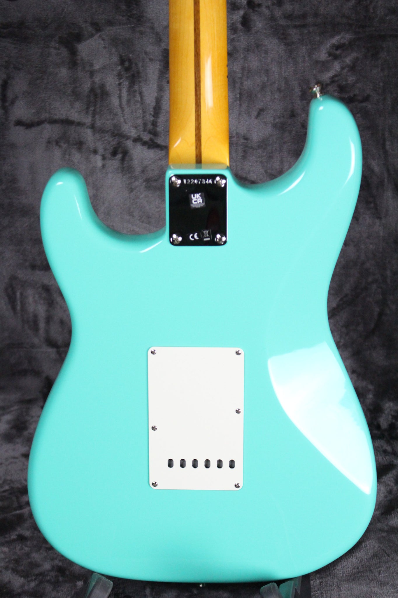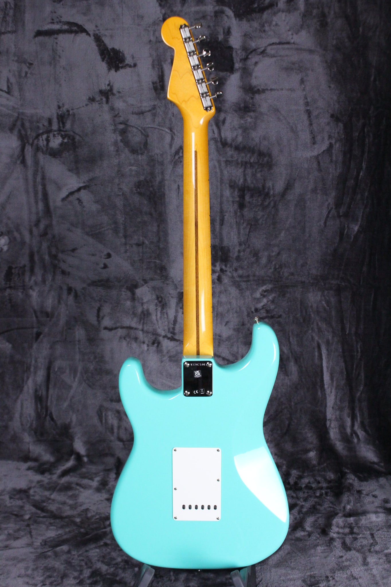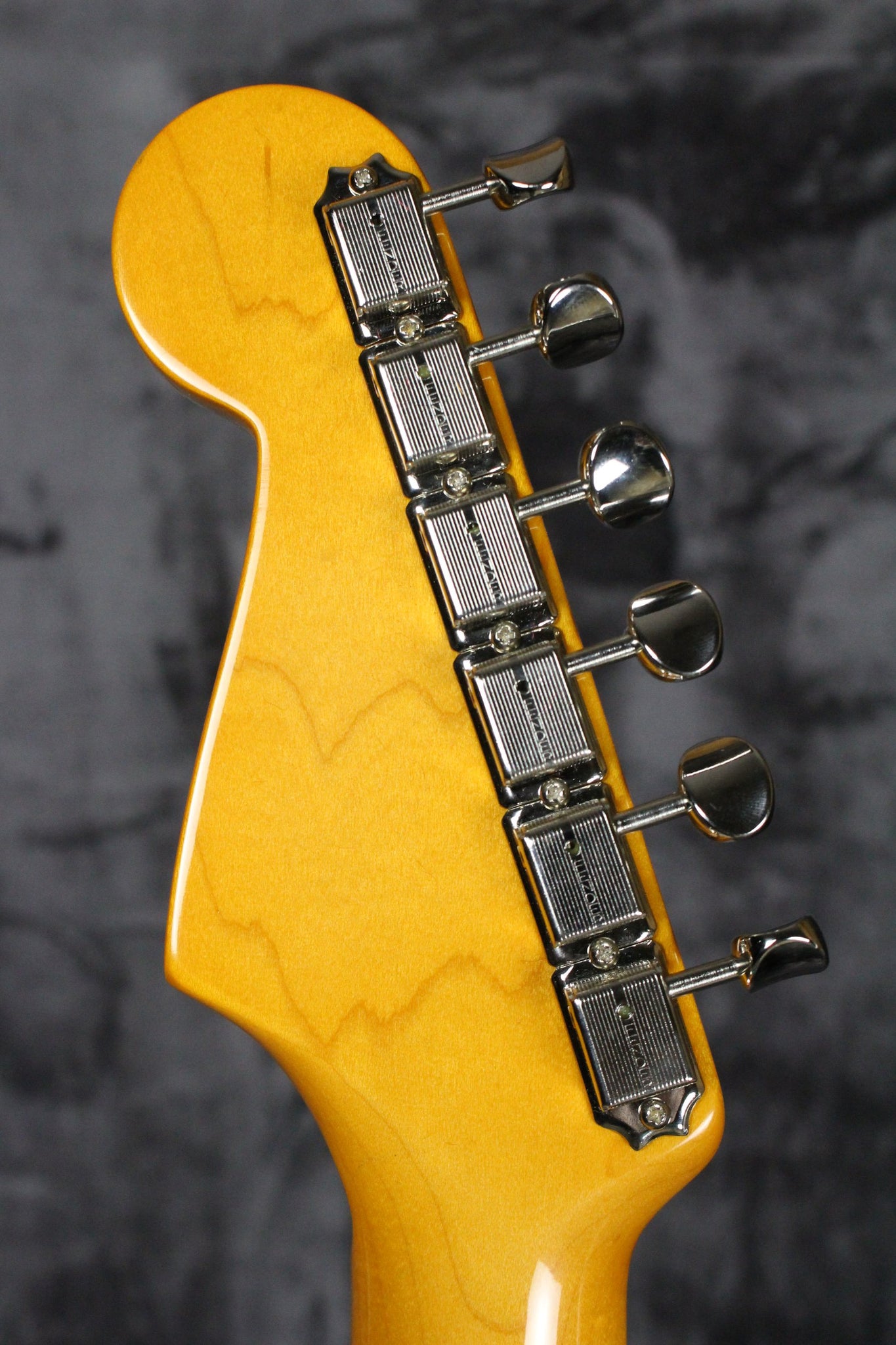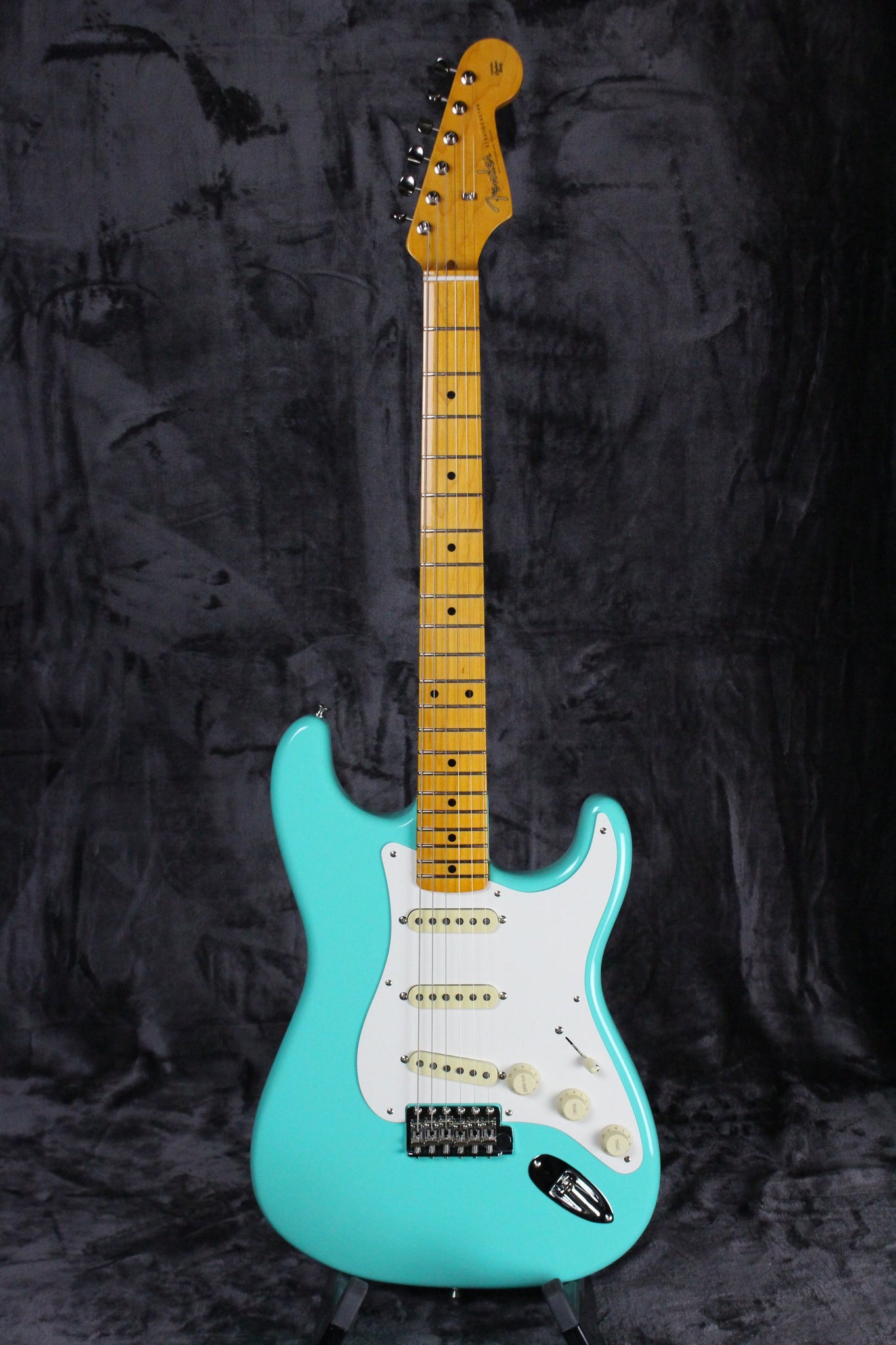 Pickups/Hardware: Three Pure Vintage ’57 Stratocaster single coil pickups, vintage tall frets, single ply pickguard, vintage style tuning keys, bone nut, master volume/2x tone controls/5-way pickup selector.