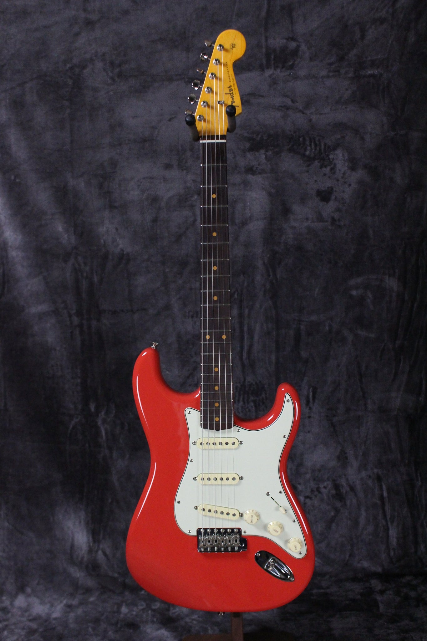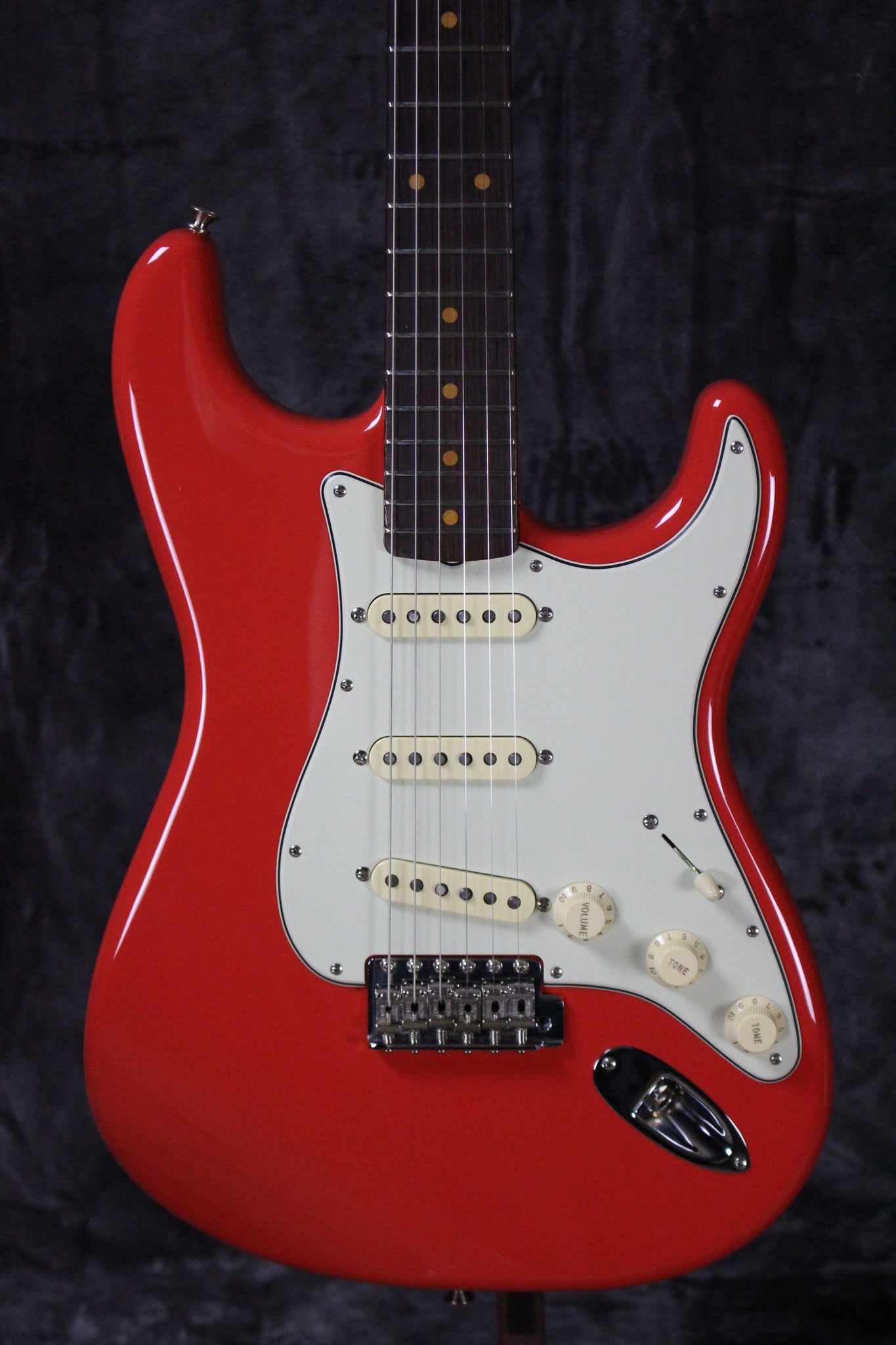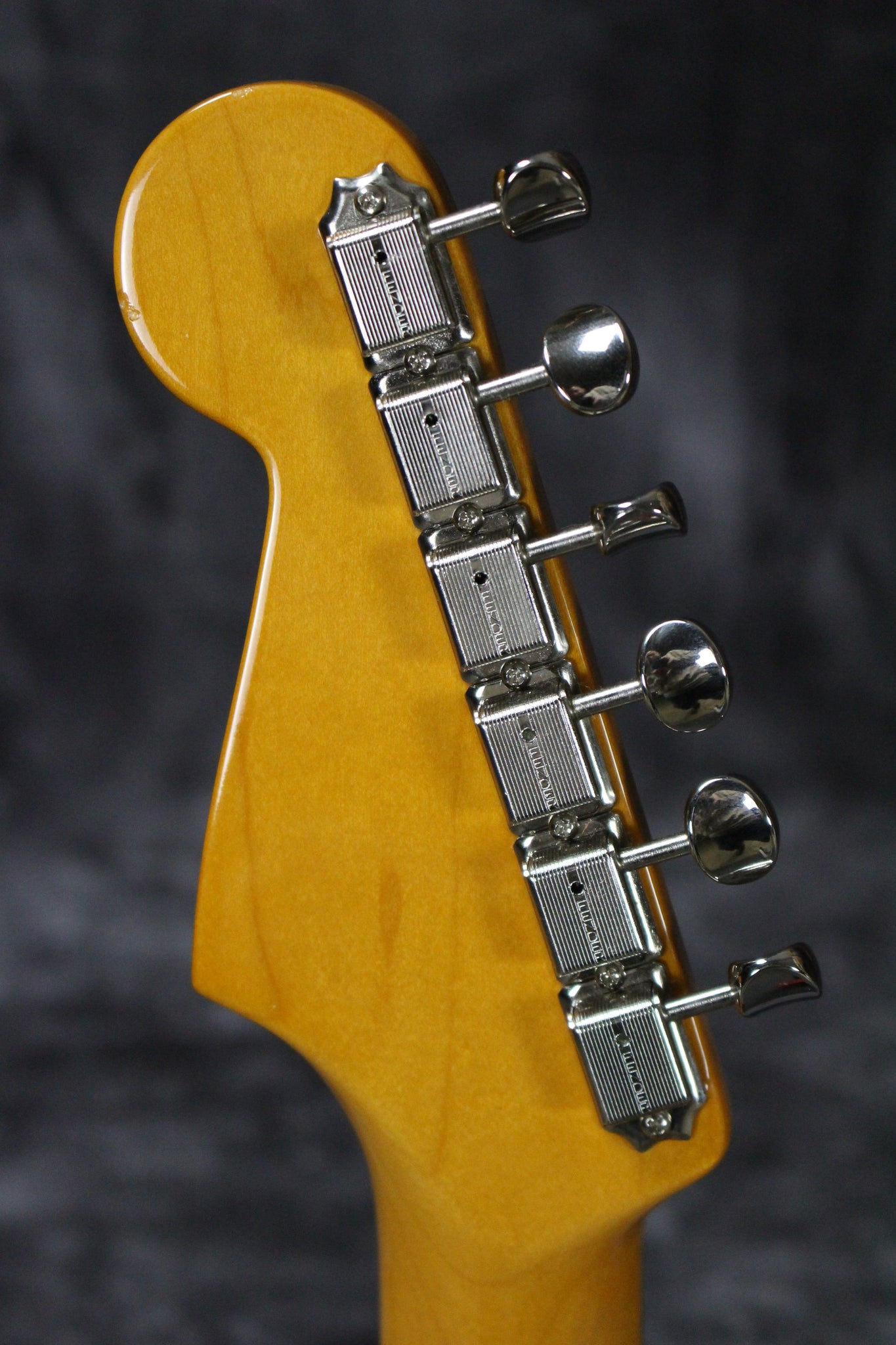 Pickups/Hardware: Fender Pure Vintage '61 Single-Coil Strat pickups, Pure Vintage single line Fender Deluxe tuning keys, Pure Vintage synchronized tremolo with bent steel saddles, chrome knobs, bone nut.