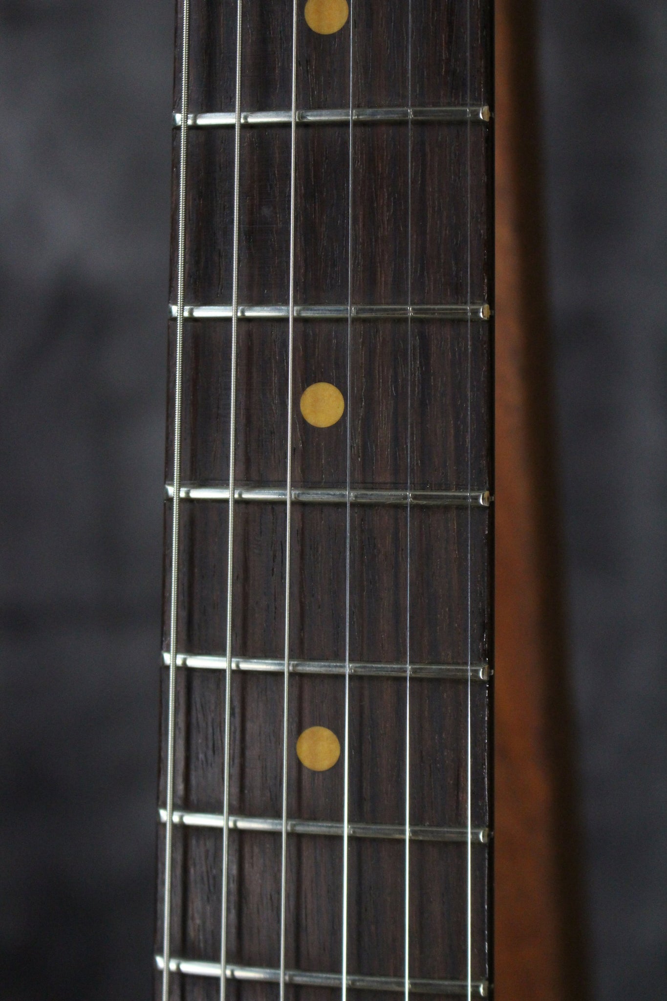 Neck: Maple with a Rosewood fingerboard, 25.5” scale length, 1.65” nut width, 21 frets, clay dot inlays.