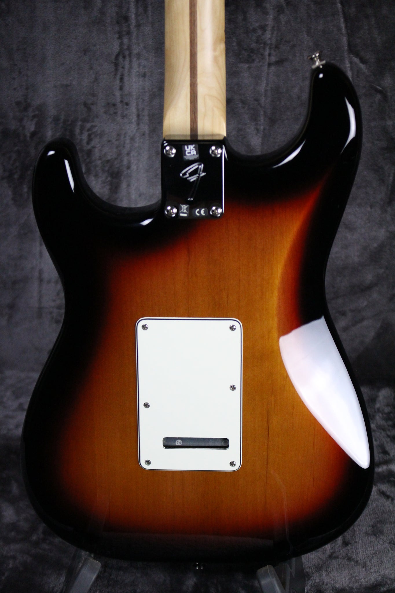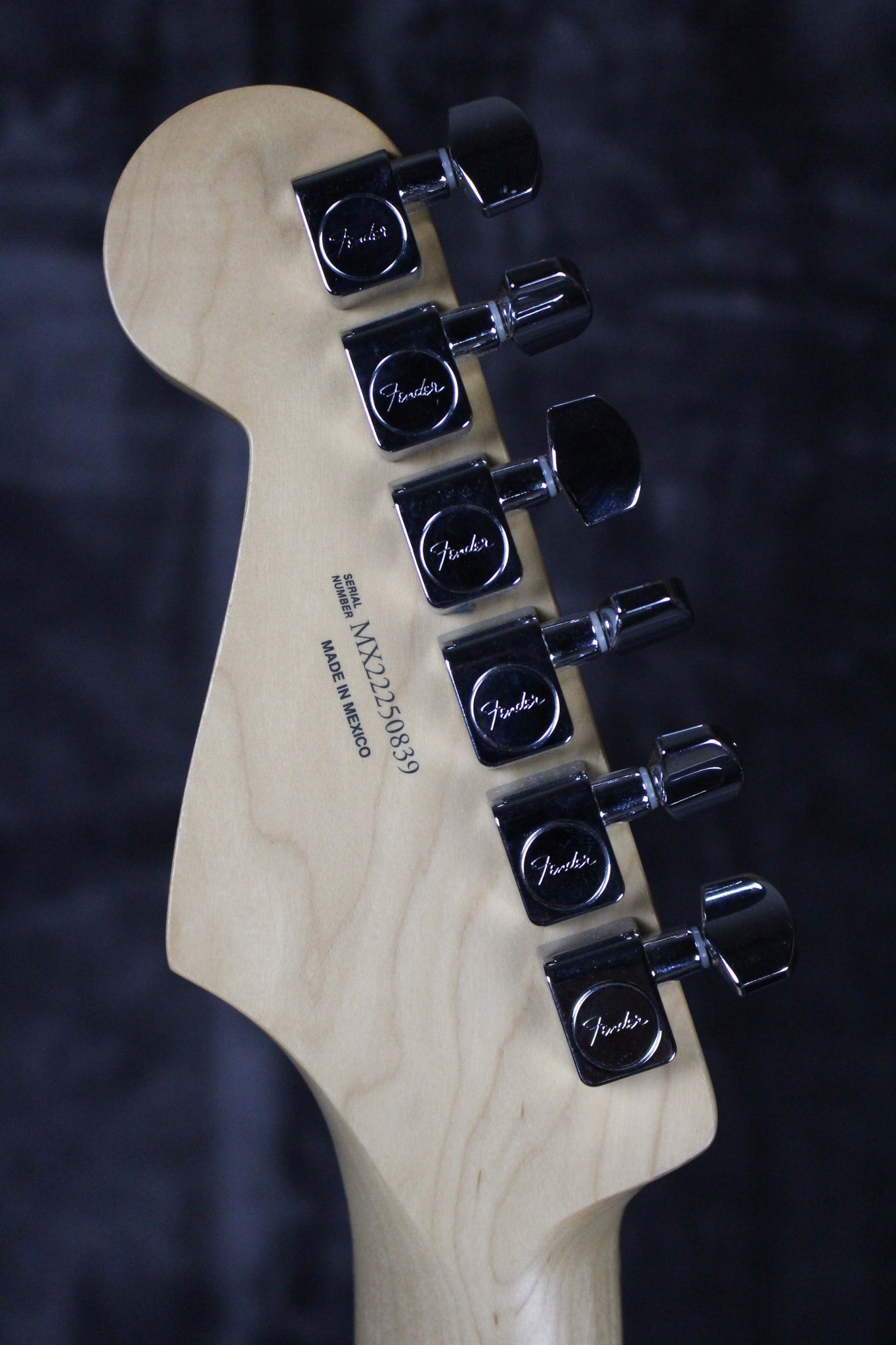 Pickups/Hardware: Two Player Series Alnico 5 Strat Single-Coil pickups and one Player Series Alnico 2 Humbucking pickup, standard cast and sealed tuning keys, 2-Point Synchronized Tremolo with Bent Steel Saddles bridge, parchment plastic knobs, synthetic bone nut.