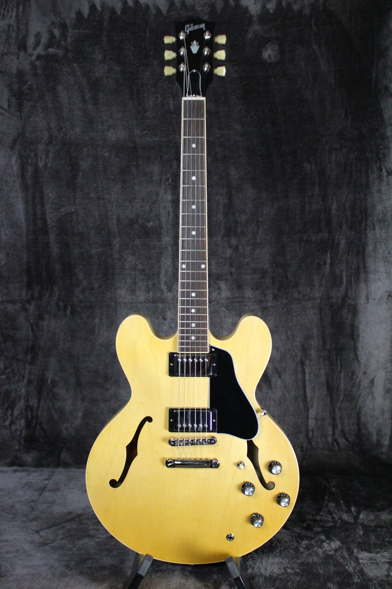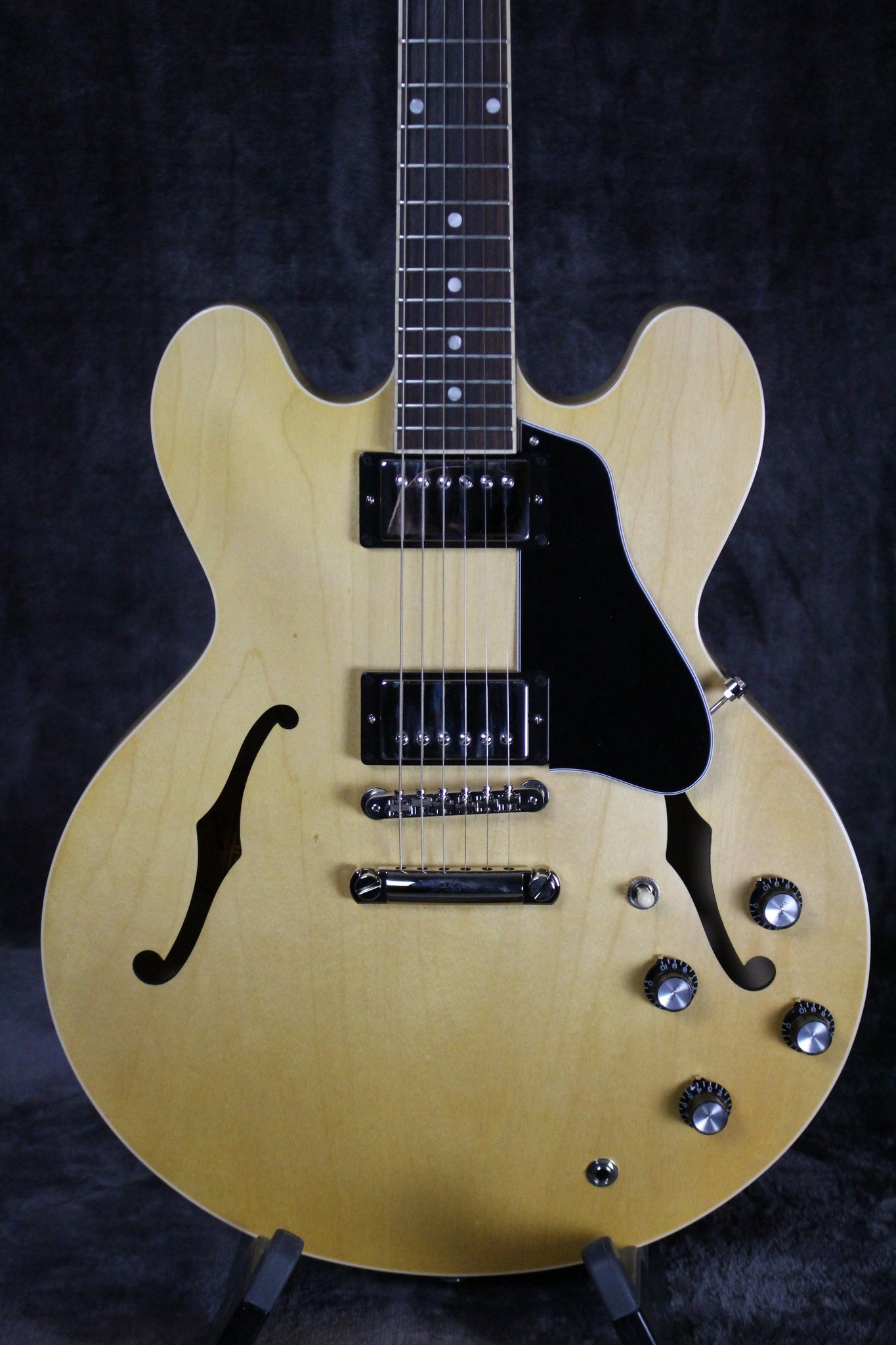 Summary: The Gibson ES-335 DOT is the cornerstone of the Gibson ES line-up. From its first appearance in 1958, the Gibson ES-335 immediately set an unmatched standard. The pearloid dot inlay rosewood fingerboard is on a hand-rolled Rounded "C" mahogany neck. The Gibson Calibrated T-Type humbucking pickups paired with their hand-wired control assembly showcases the versatile Gibson ES tone. Tuning stability and intonation are provided by the Vintage Deluxe tuners with Keystone buttons paired with light-weight Aluminum ABR-1 bridge and Stop bar tailpiece.