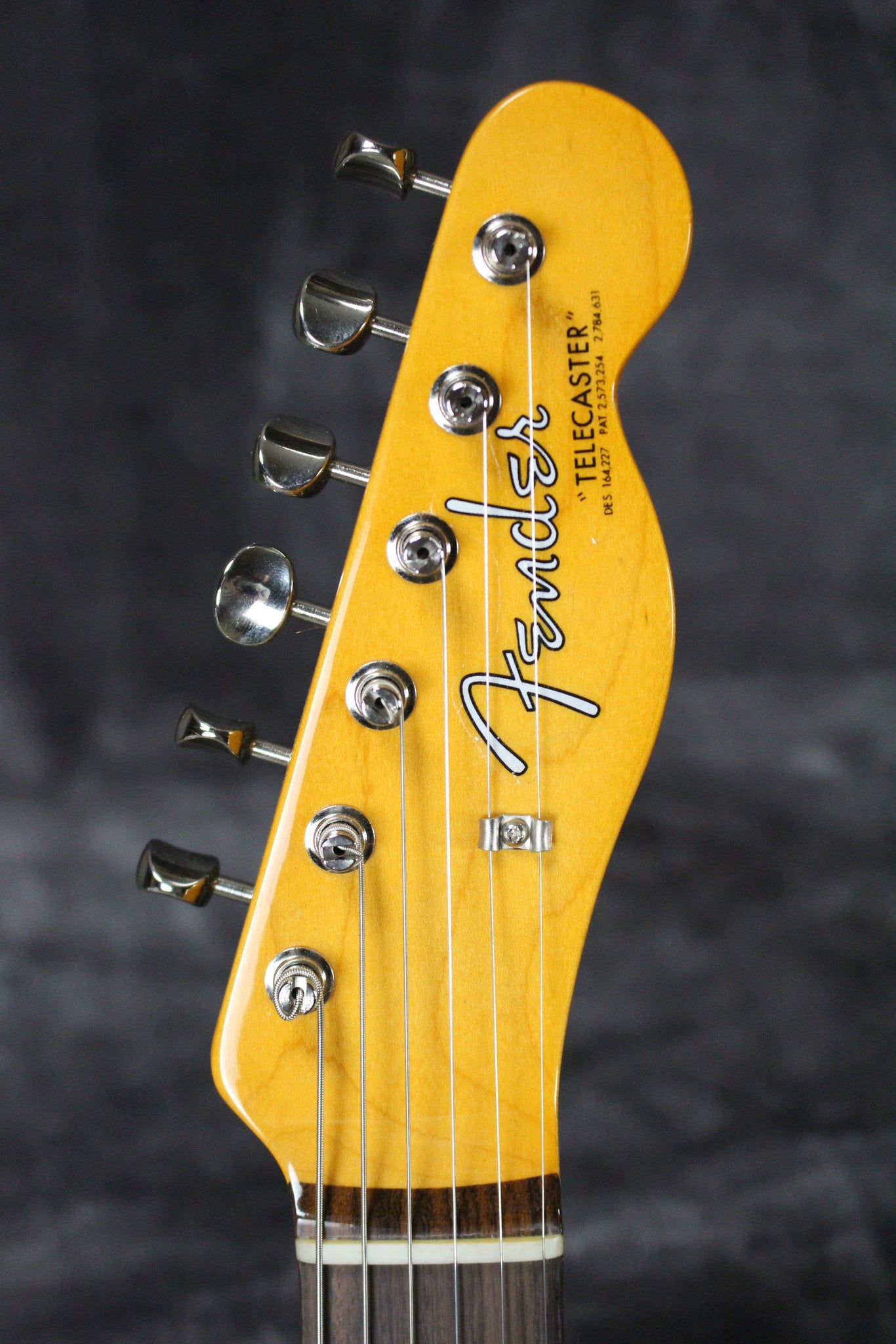 Pure Vintage single line Fender Deluxe tuning keys, Fender Pure Vintage 3-saddle Tele with threaded steel barrel saddles, knurled flat top knobs, bone nut.