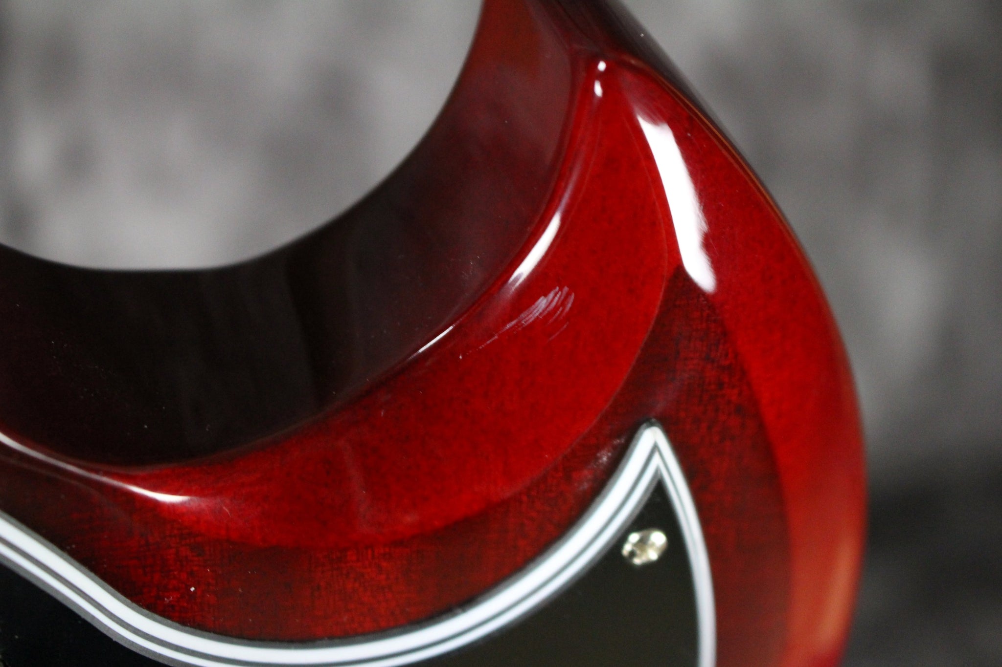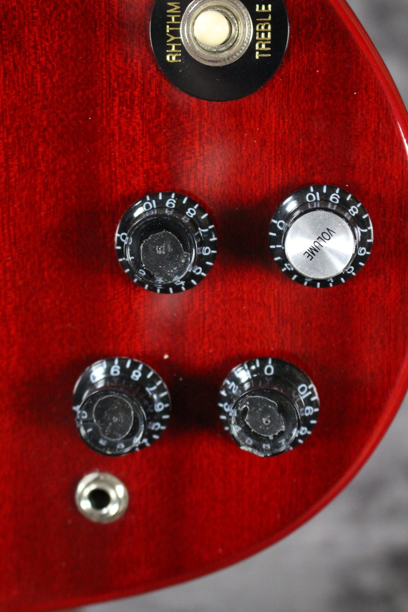 Cosmetics: This guitar is in good shape. It has light surface scratches on the body, and some nicks/dents. The back of the neck is clean, and the frets show minimal wear. Three of the knobs are missing the reflector stickers. The back has light buckle rash. Overall, this guitar plays very well and sounds fantastic.