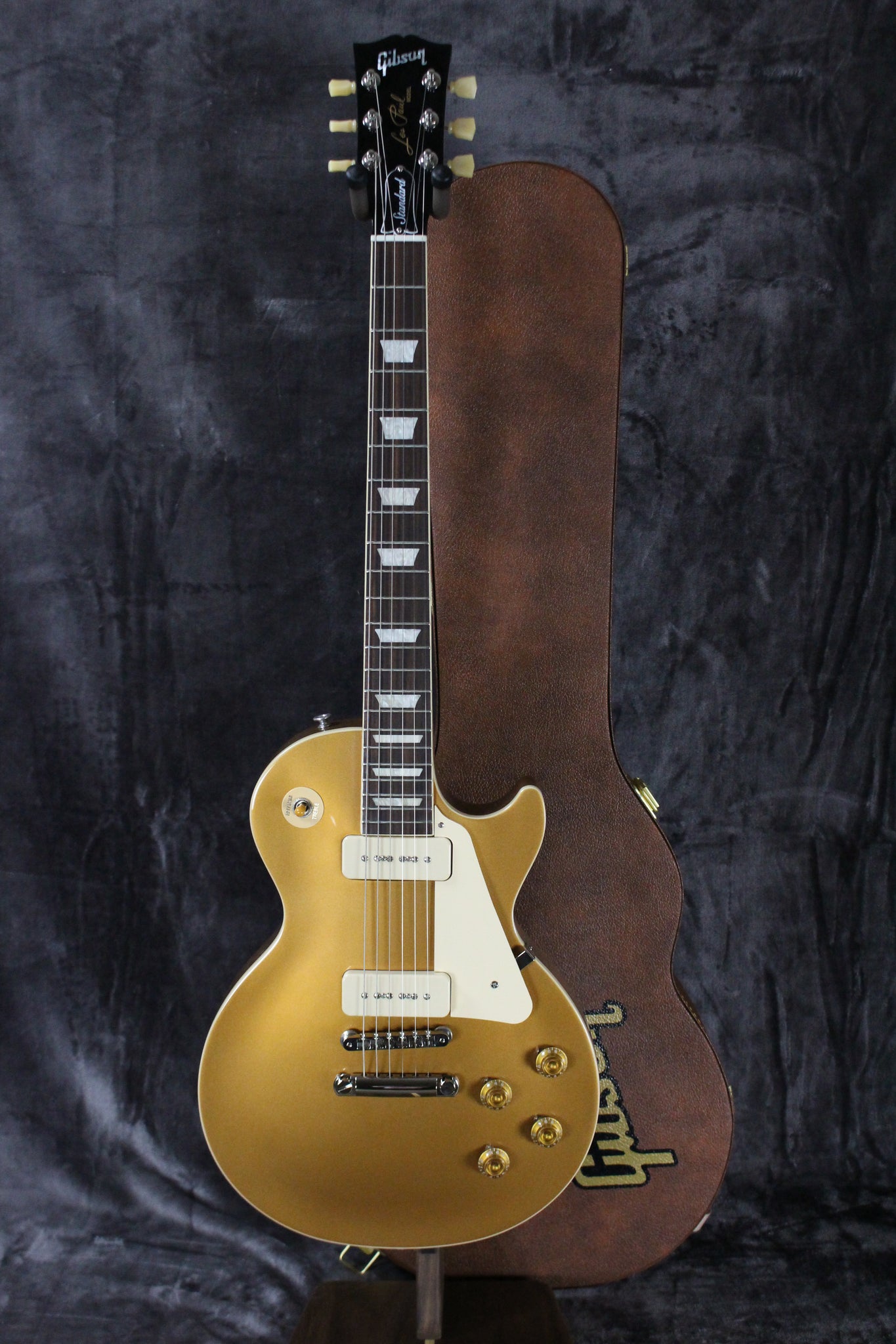Pickups/Hardware: Gibson P-90 Single-coil pickups, Vintage Deluxe tuning keys with Keystone Buttons, ABR-1 Tune-O-Matic Bridge with Stopbar Tailpiece, Gold Top Hats with Dial Pointers knobs, Graph Tech nut.
