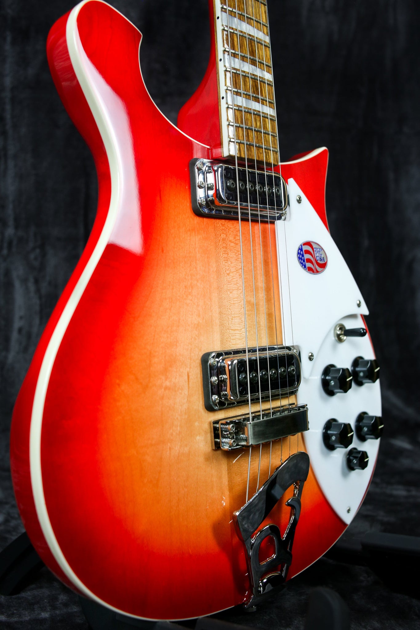 Pickups/Hardware: Rickenbacker Hi-gain single-coil pickups, Schaller tuning keys, 6-saddle adjustable bridge with "R" tailpiece bridge, 2 x volume, 2 x tone, 1 x blend, 2 x 1/4" (mono, stereo out), Bakelite nut.