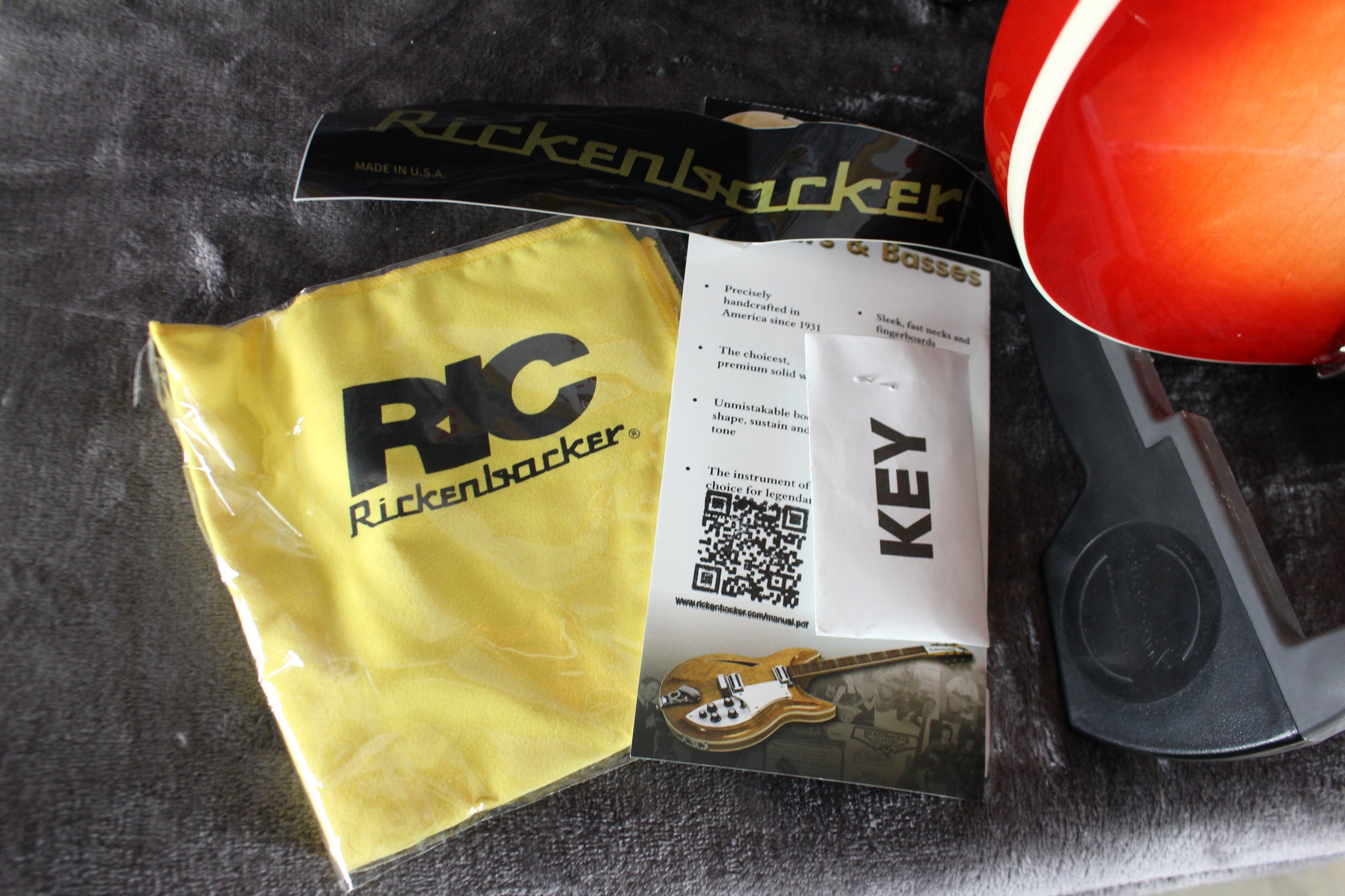 Pickups/Hardware: Rickenbacker Hi-gain single-coil pickups, Schaller tuning keys, 6-saddle adjustable bridge with "R" tailpiece bridge, 2 x volume, 2 x tone, 1 x blend, 2 x 1/4" (mono, stereo out), Bakelite nut.