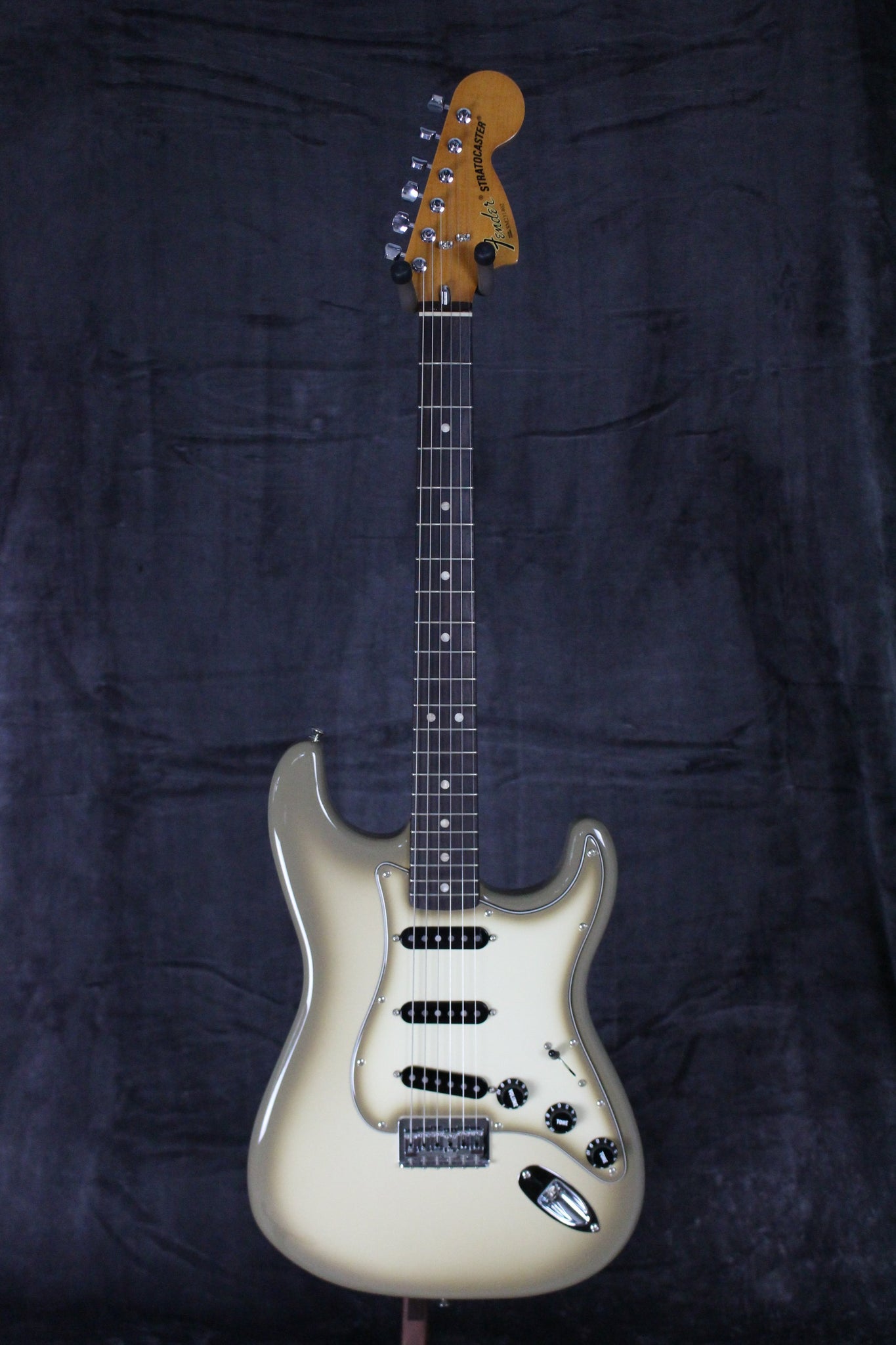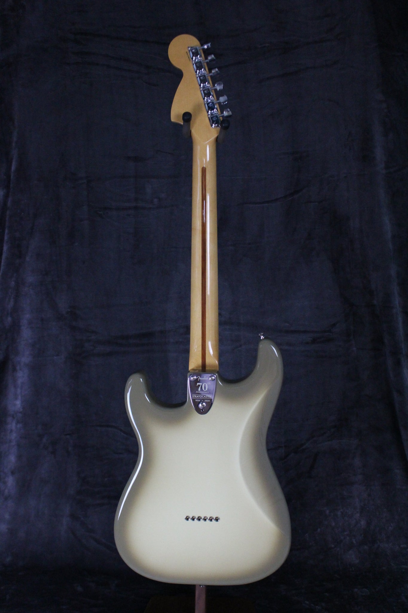 Pickups/Hardware: Fender 70th Anniversary Vintage-Style '70s Single-Coil Strat in the neck, middle, and bridge positions; synthetic bone nut, String-through-body hard tail bridge,