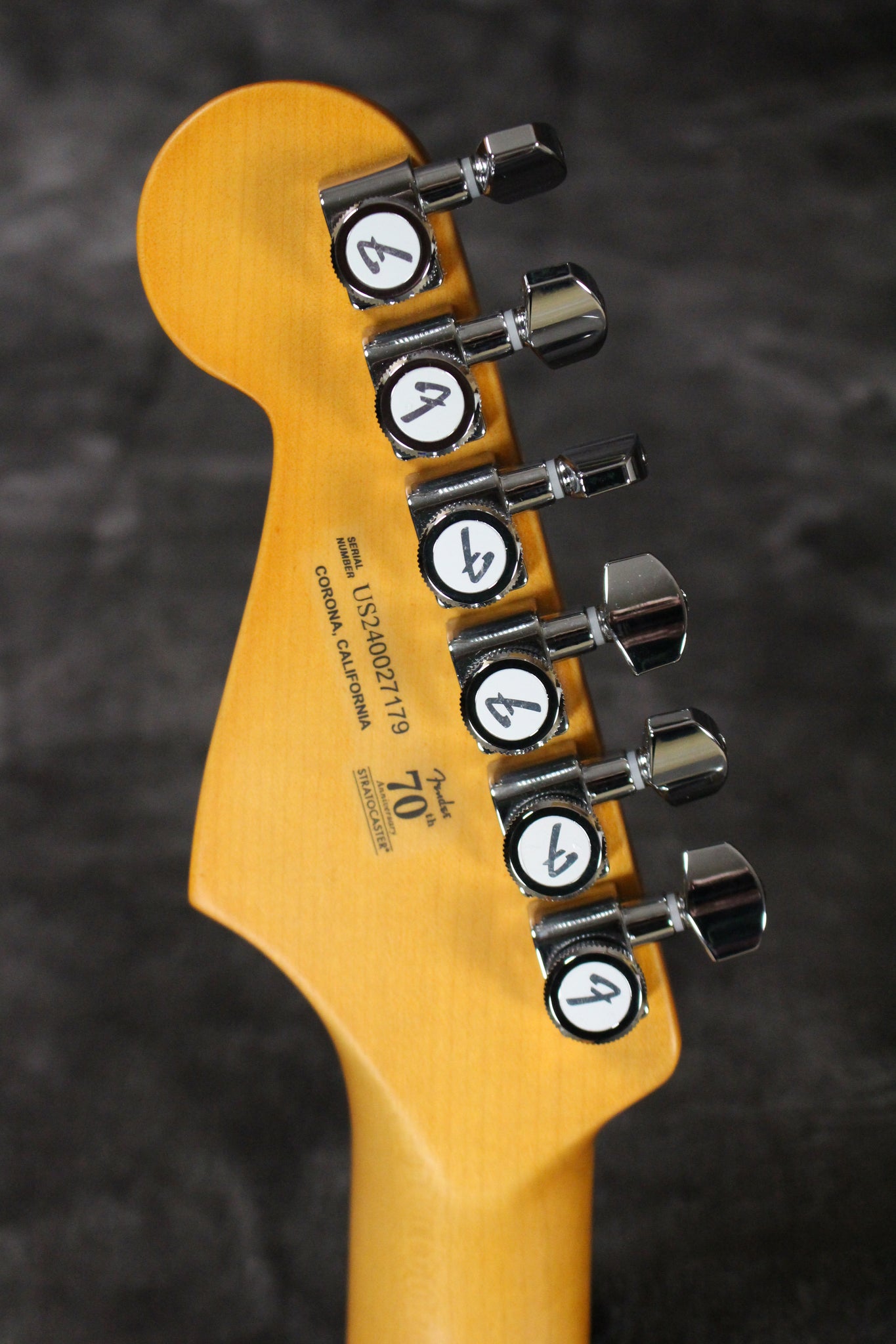 Pickups/Hardware: 2 Ultra II Noiseless single coil pickups, 1 Haymaker humbucker, Fender locking tuning keys, black anodized pickguard, Tusq nut, 2-Point American Ultra Synchronized Tremolo system, S-1 switch