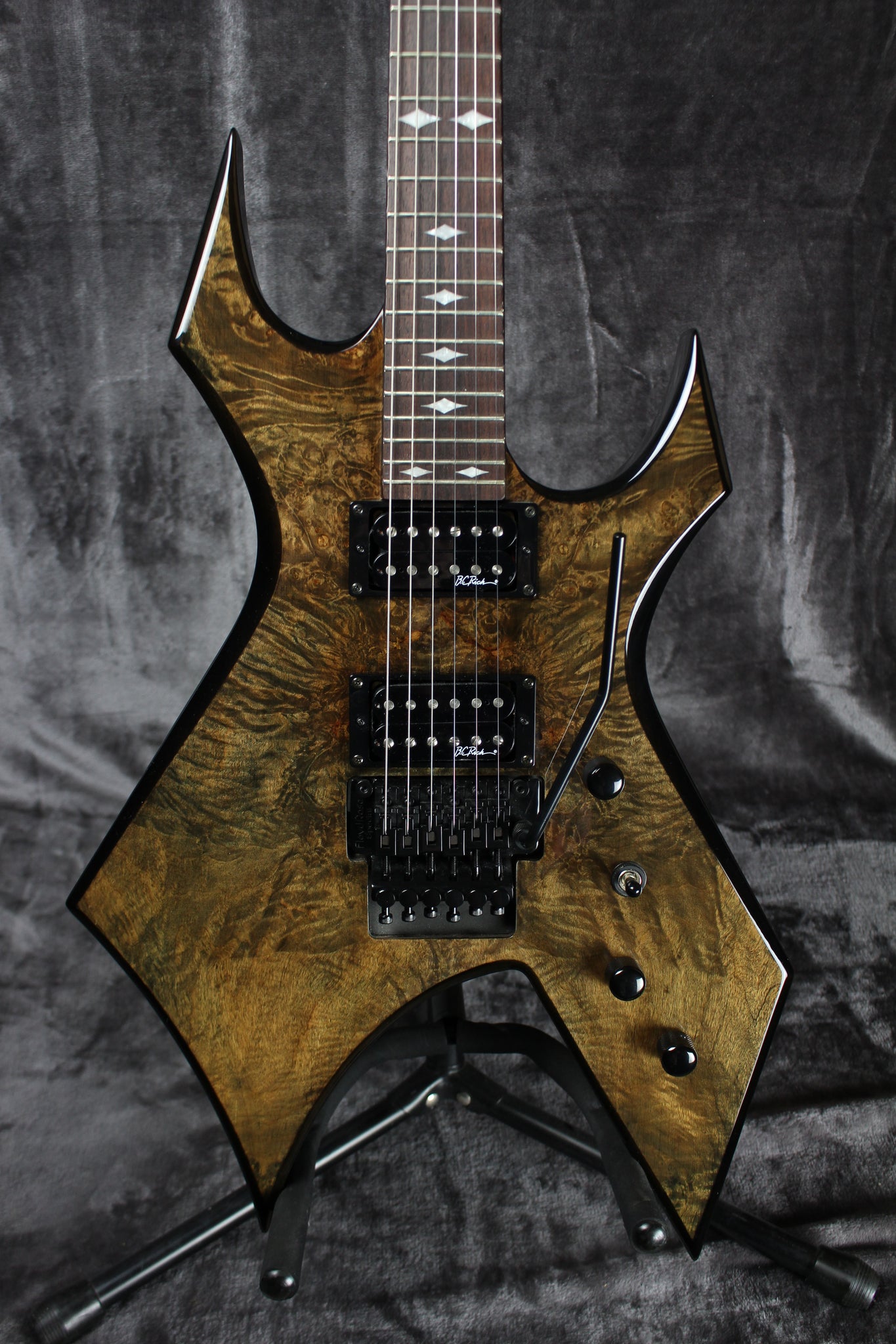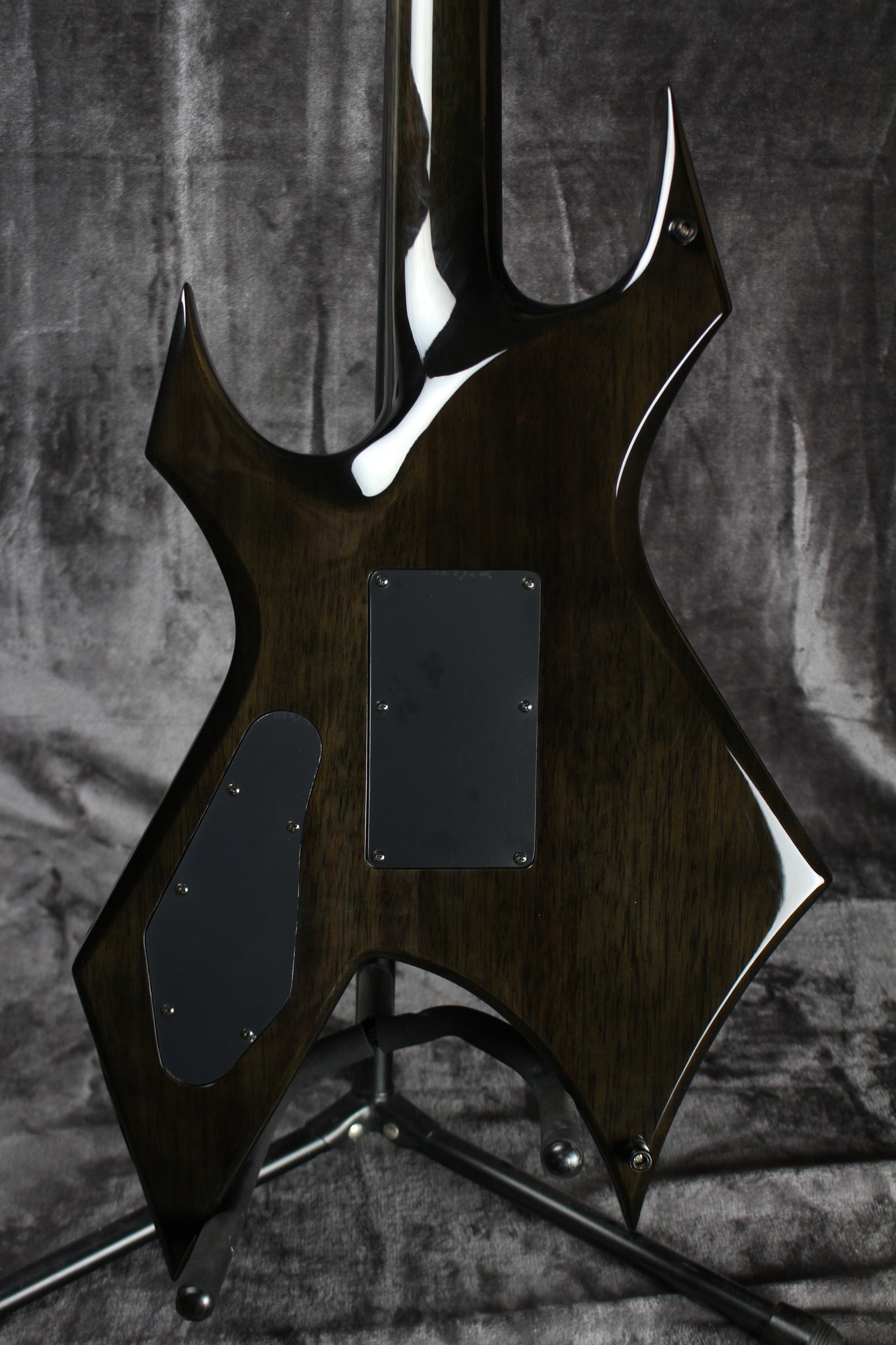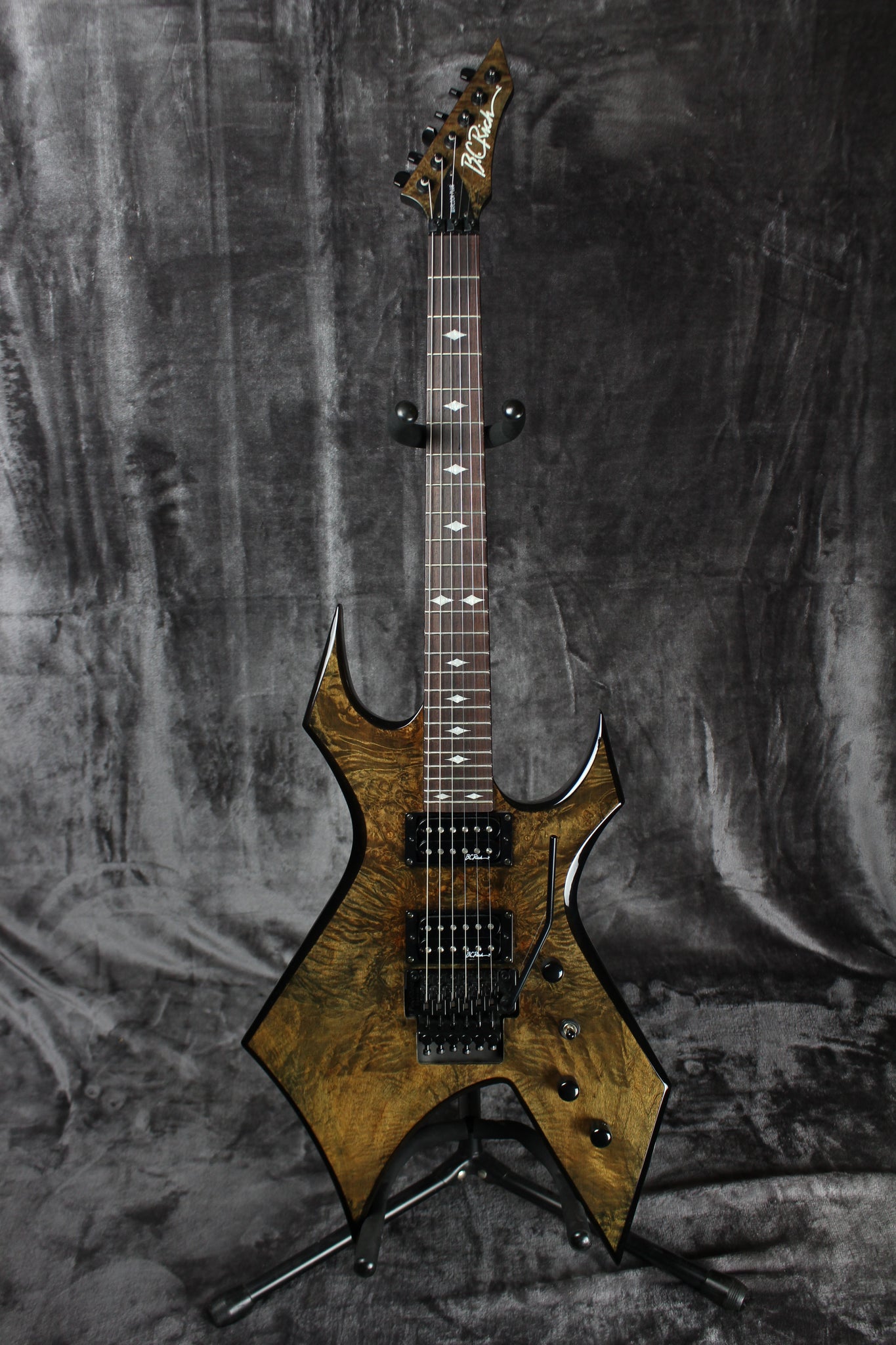 Summary: This 2014 BC Rich Warlock Plus has all of the features that players require for better tone and playability. The basswood body has a burled maple top with a set mahogany neck for improved sustain. It has a rosewood fretboard that's super smooth with a comfortable 12" radius and 24 jumbo frets. B.C. Rich B.D.S.M. pickups are capable of producing a powerful variety of tones. Black hardware is used throughout including the fixed bridge and die-cast tuners.