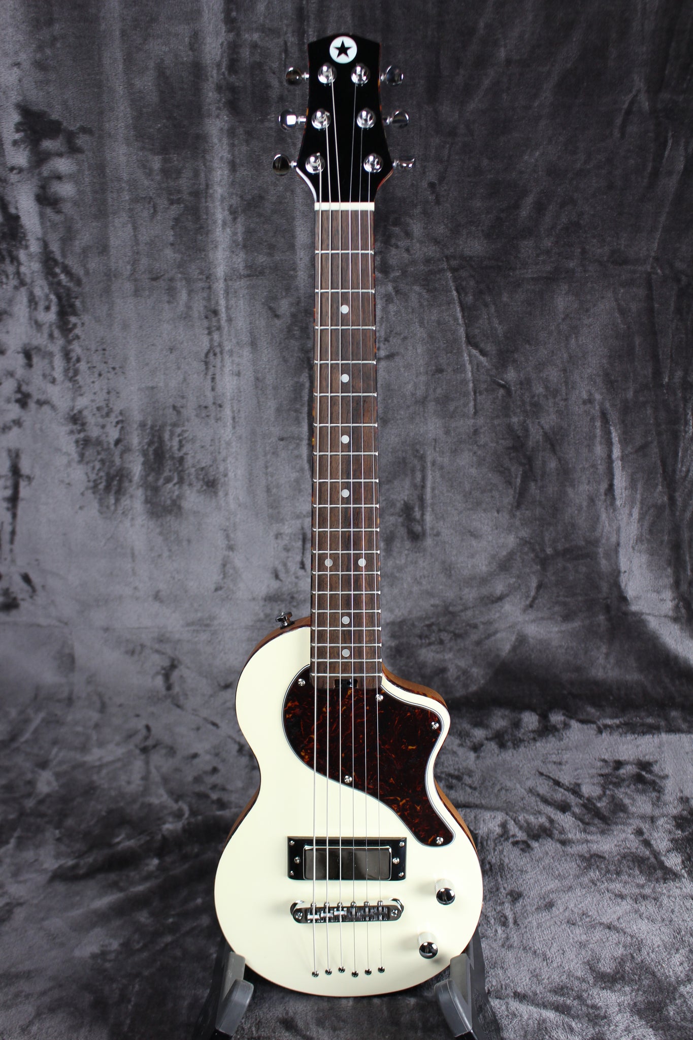 Summary: This Blackstar Carry-On Travel Guitar has lovely tortoiseshell binding and tortoiseshell pickguard, and is ready to go with you anywhere.