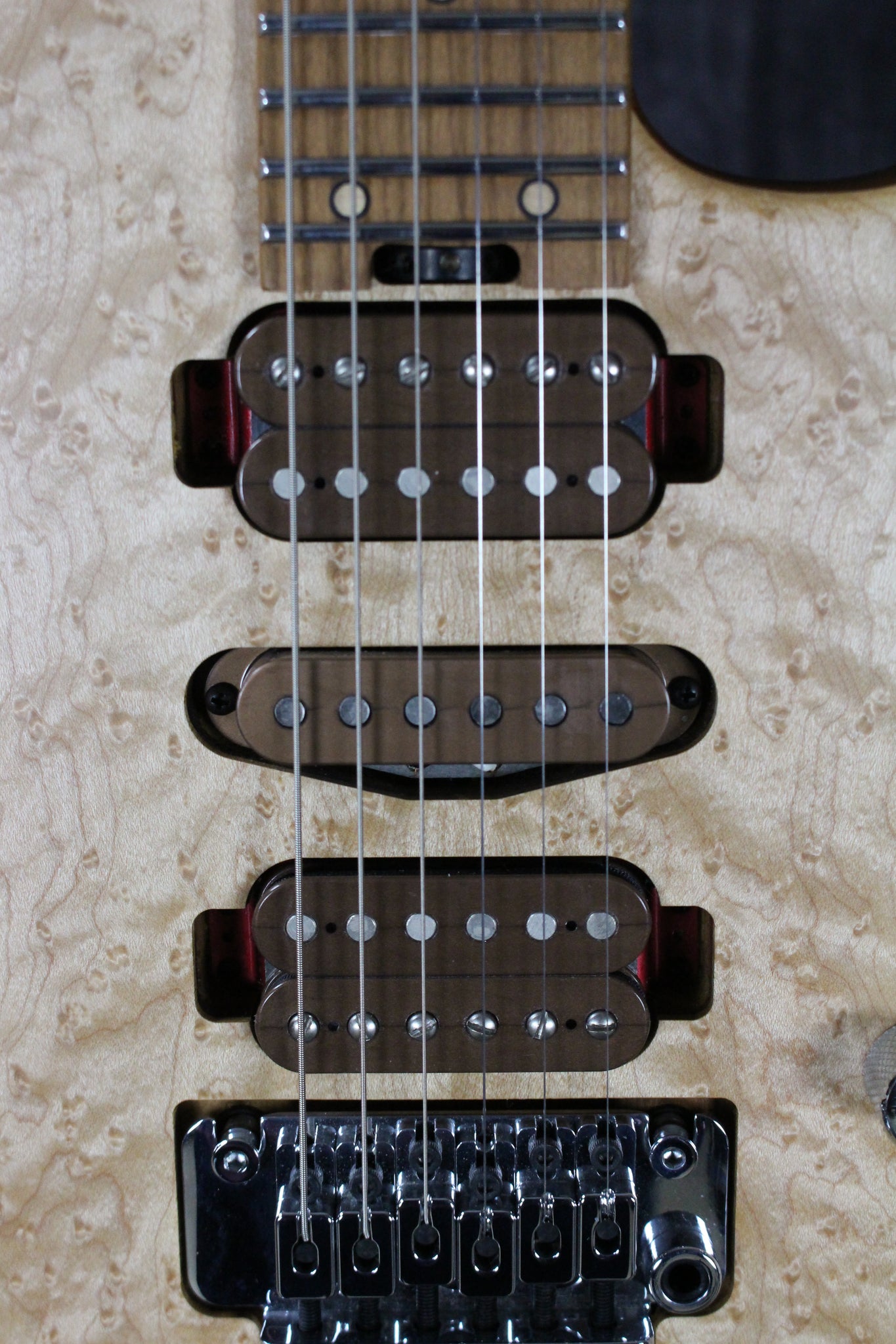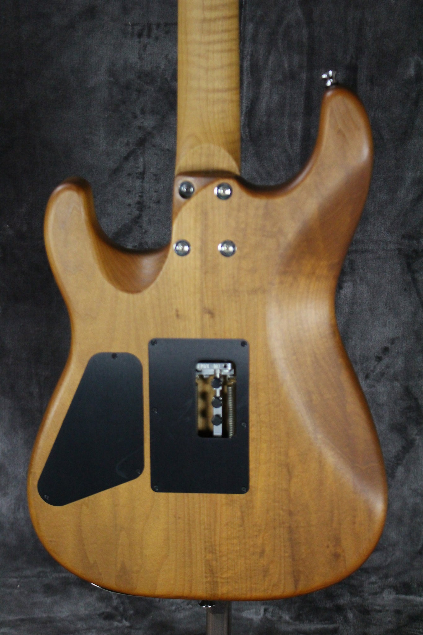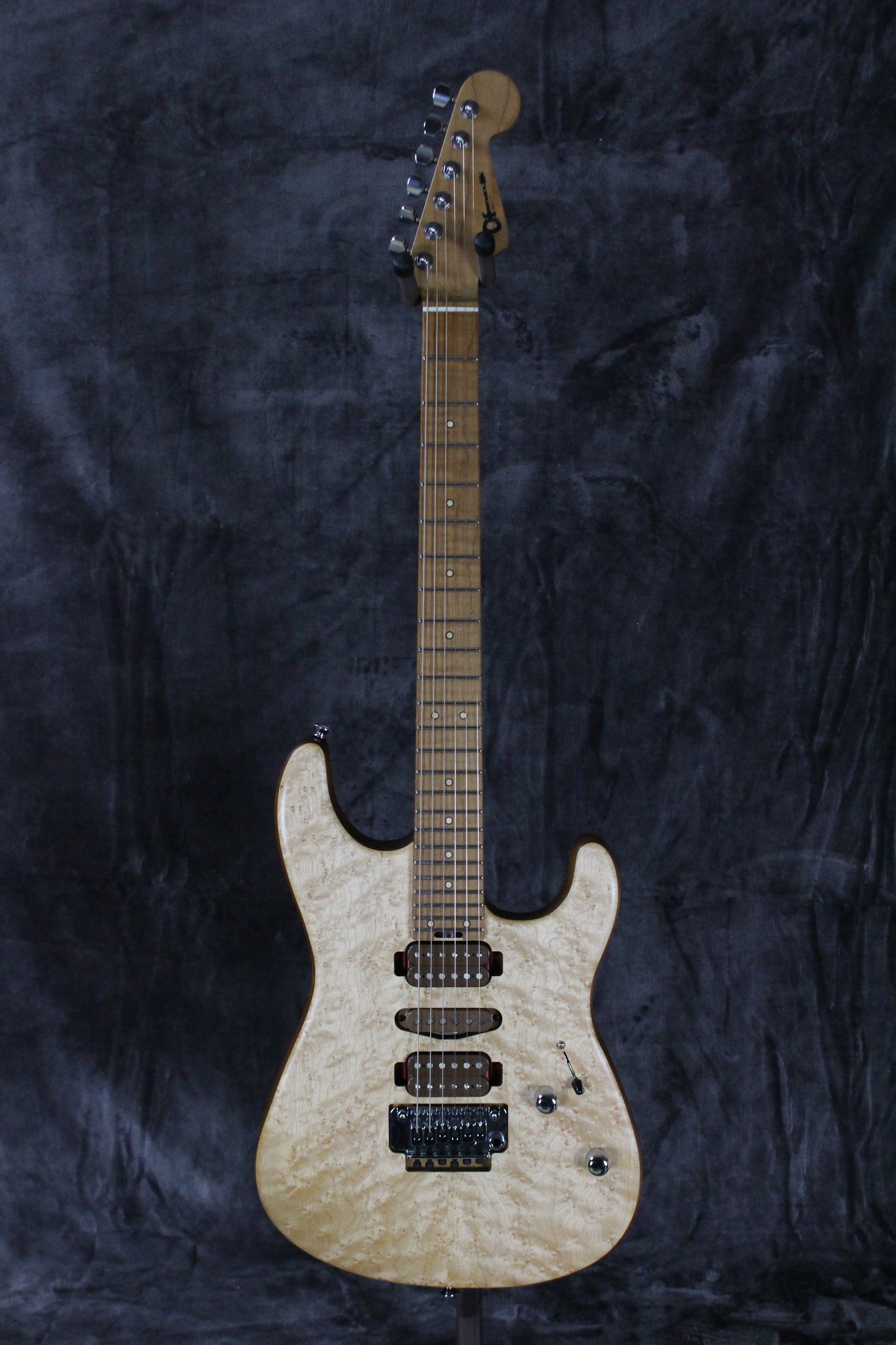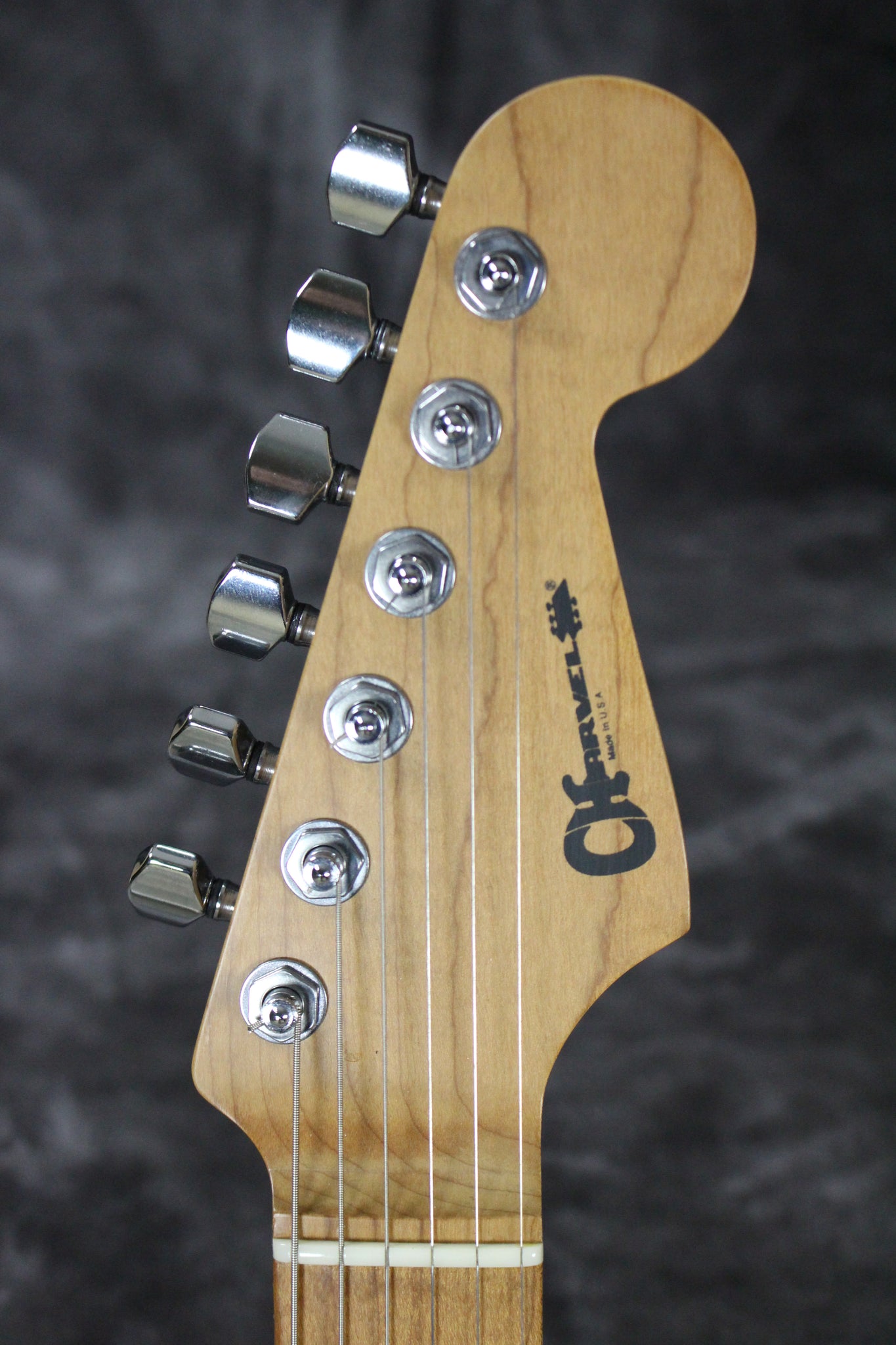 Pickups/Hardware: Charvel Custom MF Humbucking pickups, Sperzel Locking tuning keys, recessed Charvel Locking Tremolo bridge, Luminlay numbered dome control chrome knobs, bone nut.
