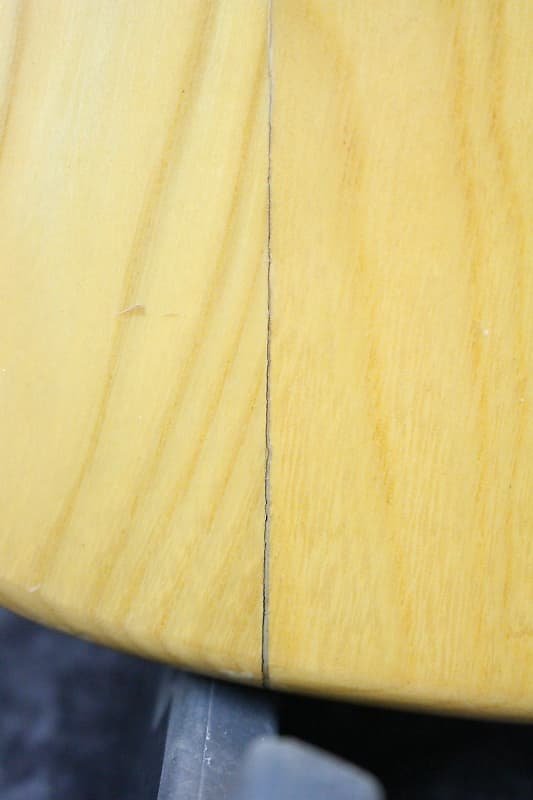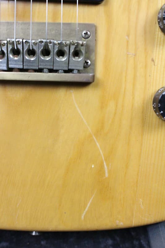 Cosmetics: There is a crack in the body that someone glued at some point but has crept open slightly. It doesnt affect the playability and appears structurally stable. There is a fair amount of wear through the finish on the fingerboard, there are plenty of small nicks, dings and pick scratches around the guitar and some tarnishing on the hardware. There is a small hole on the front of the headstock near the E tuning key that looks like someone installed a second string tree at some time but then took it back out.