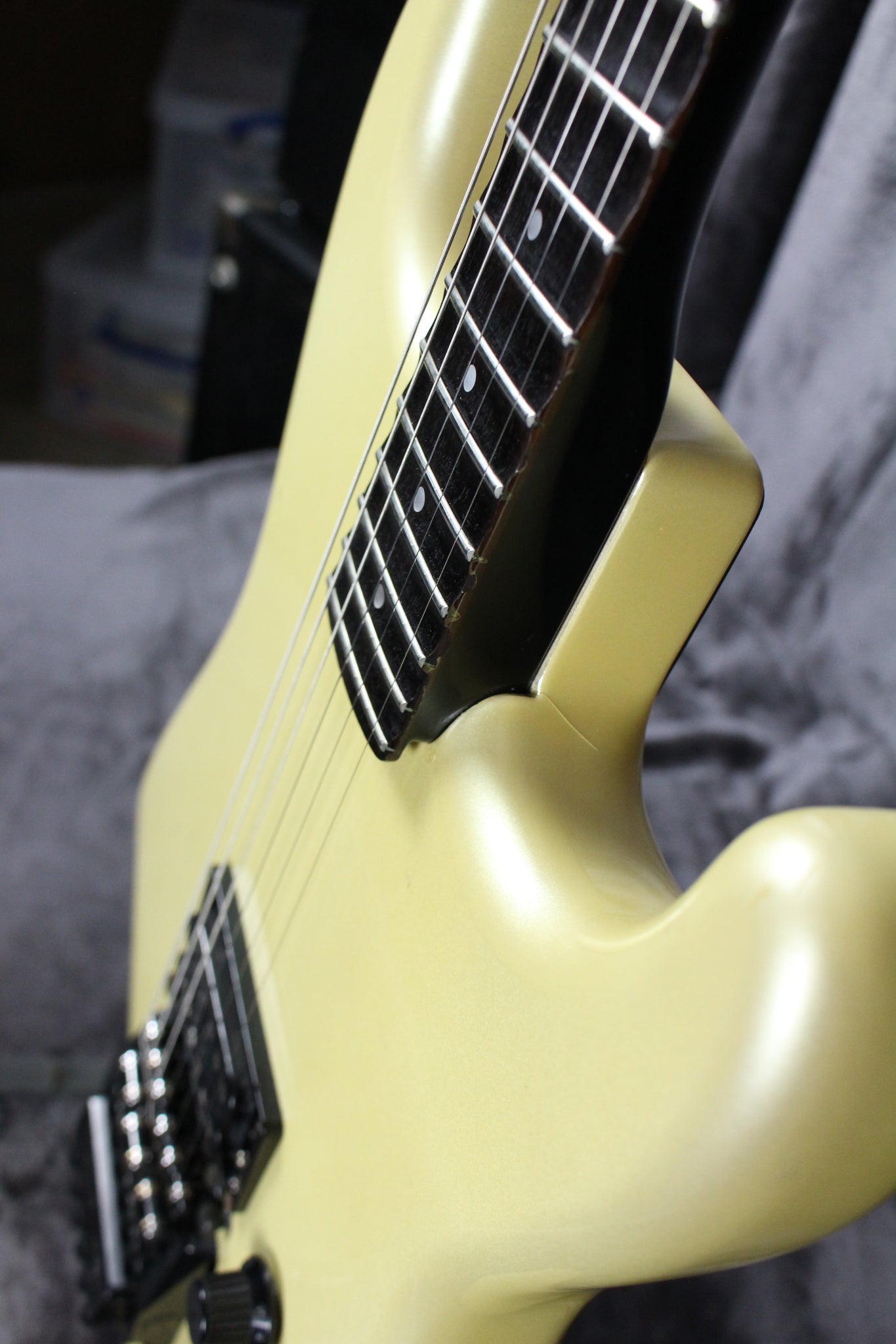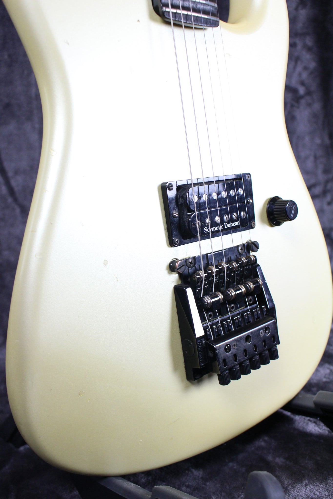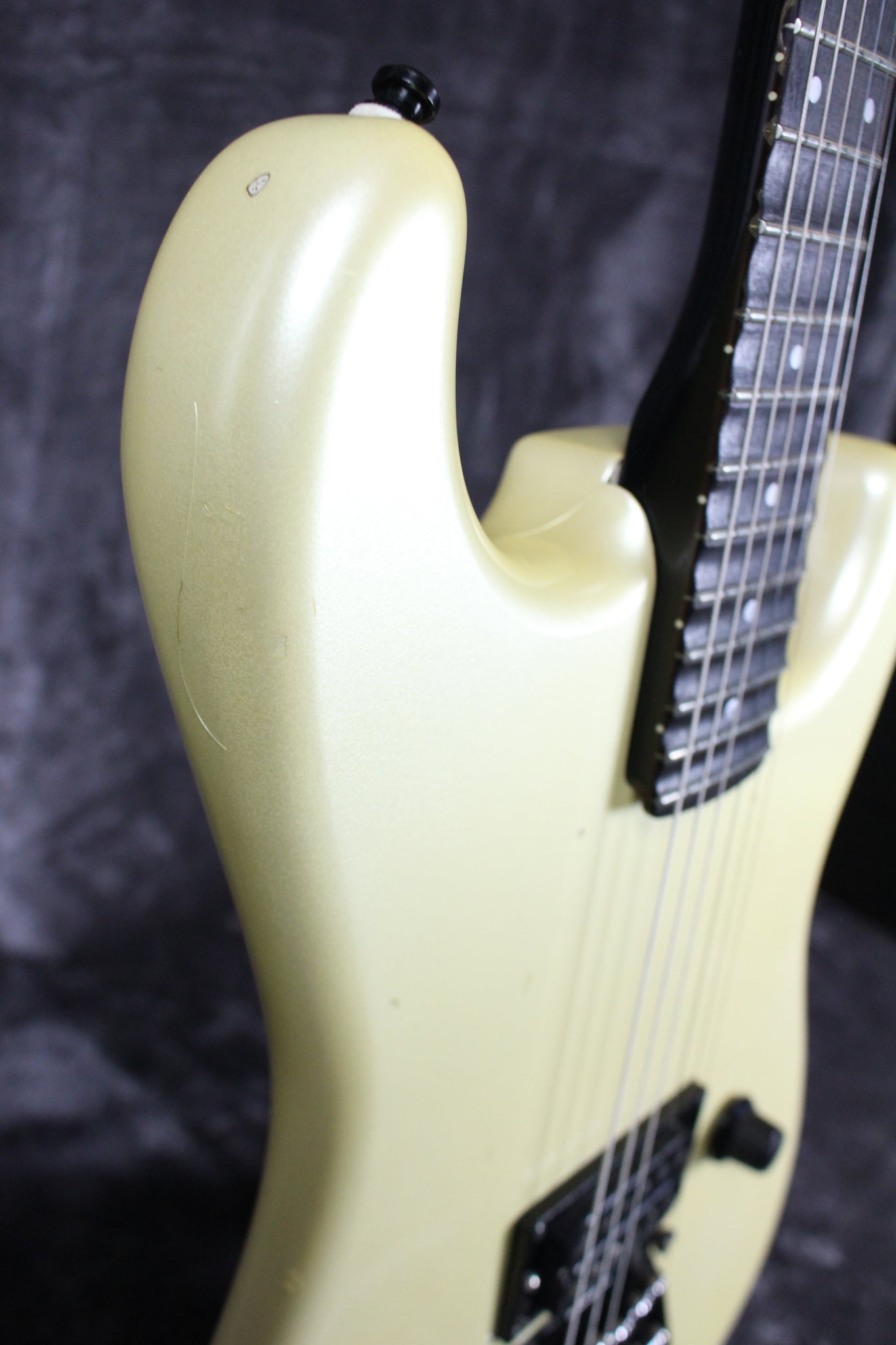 Summary: This mid 80s Fender ST-551EX MIJ Stratocaster has the modern appointments of the era of long hair, don’t care, full stacks and whammy bar attacks. Scalloped frets for full shredding and articulation, coupled with a humbucker for all your crunchy needs.