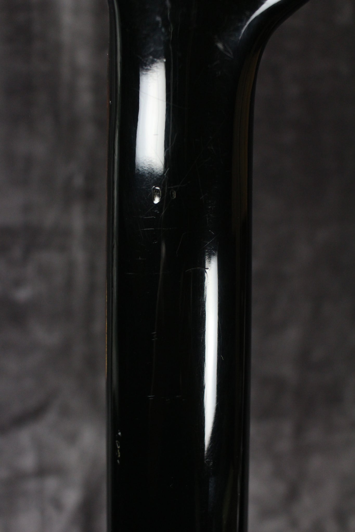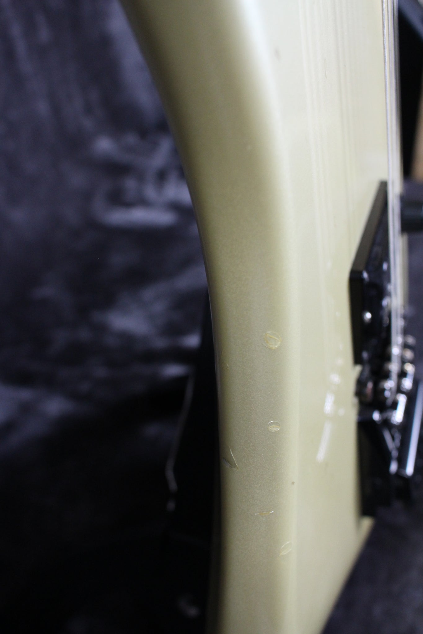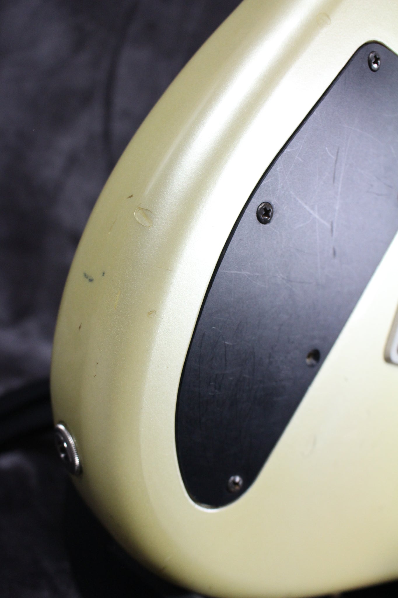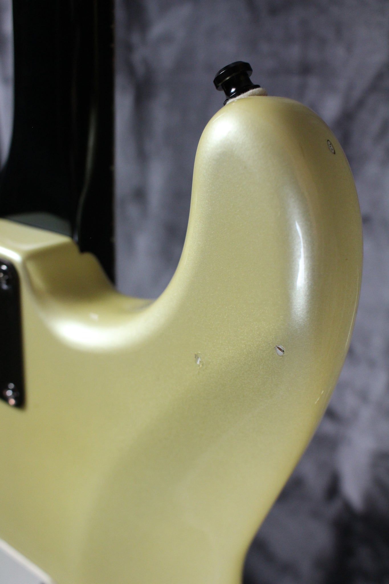 Cosmetics: This guitar is in good shape. It has light surface scratches and small indentations on the body. The back of the neck is clean, and the frets show minimal wear. It has a scalloped fretboard from the 12th fret down. A locking nut was used, and then removed, and a non-original string tree is in place.The back has buckle rash and a few indentations. Overall, this guitar plays very well and sounds fantastic.