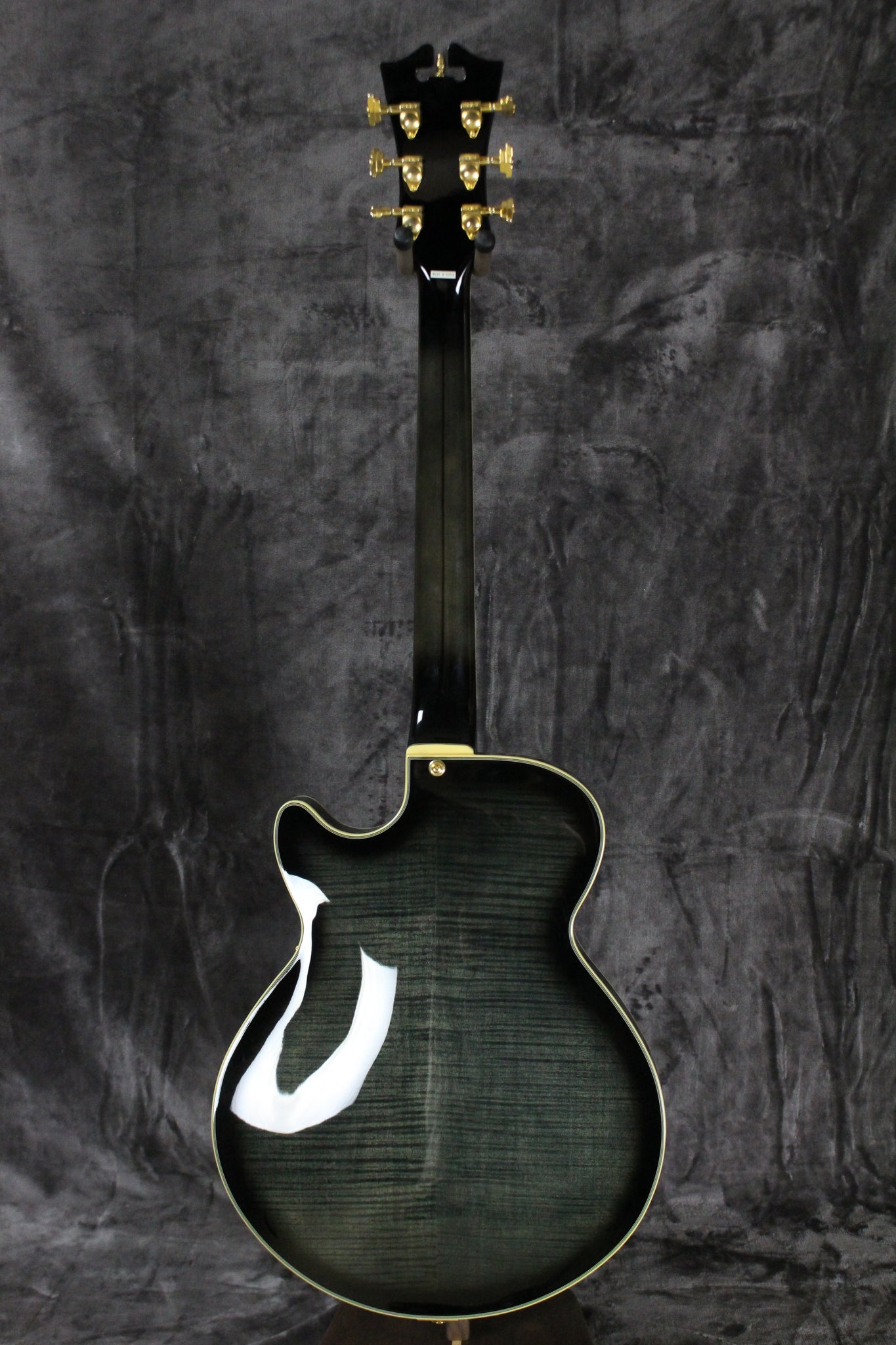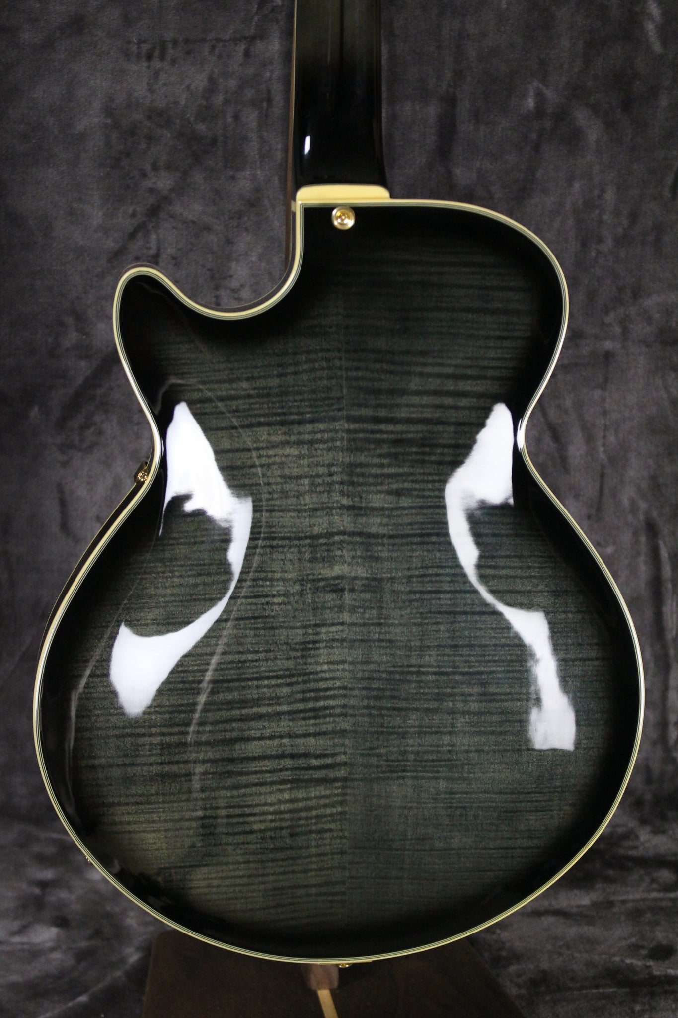 Body: Semi-hollow body with laminated maple top, back, and sides in a black gloss finish.