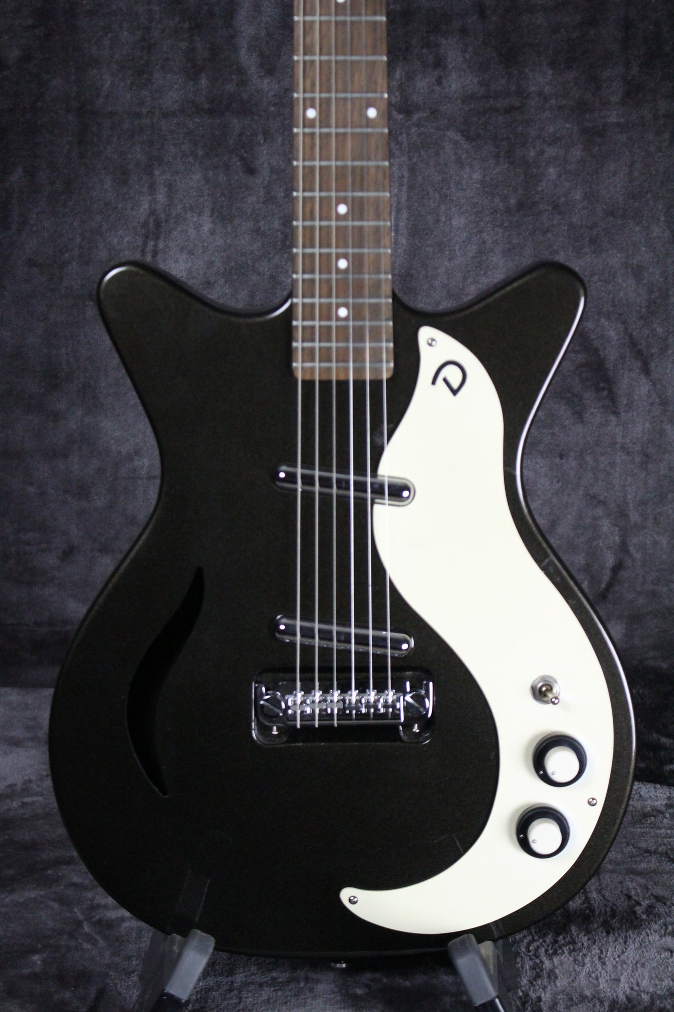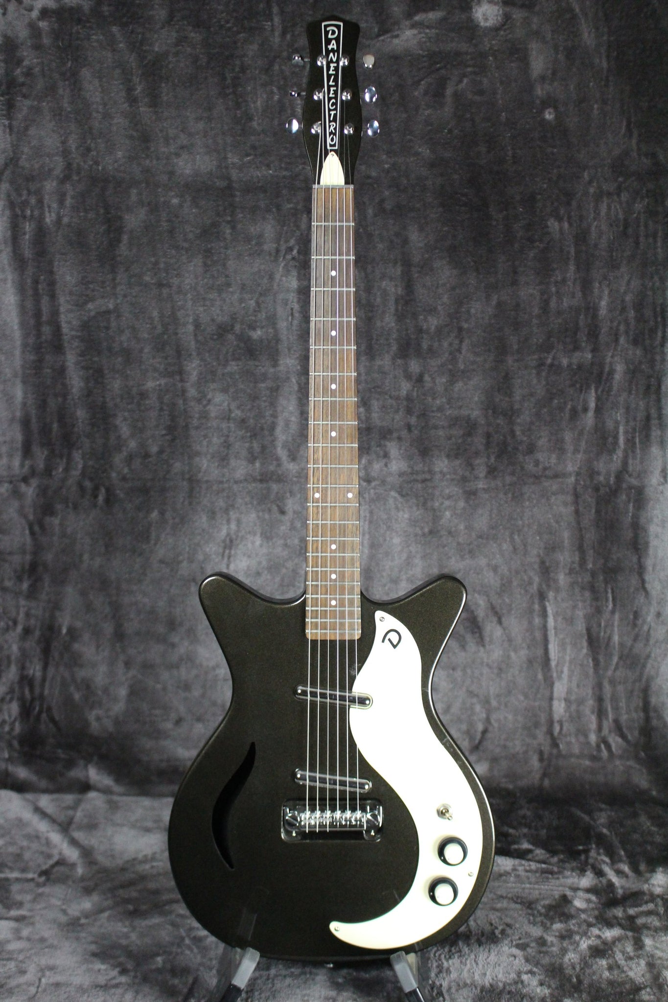 Summary: Sporting the classic Shorthorn hollowbody, "S" soundhole, and a pair of '56 Vintage Lipstick pickups, the Danelectro 59M captures the look, feel, and tone of the early days of rock. The 59M is constructed with a Spruce soundboard and offset sound hole that delivers the jangly signature "Dano" sound. In addition, a maple neck with a rosewood fingerboard offers smooth playability, while a fully adjustable bridge lets you set your intonation to your liking.