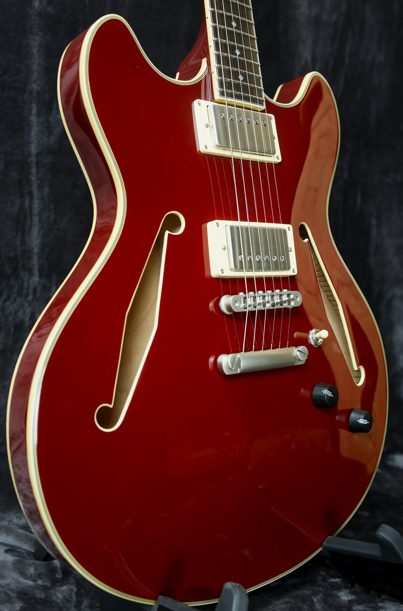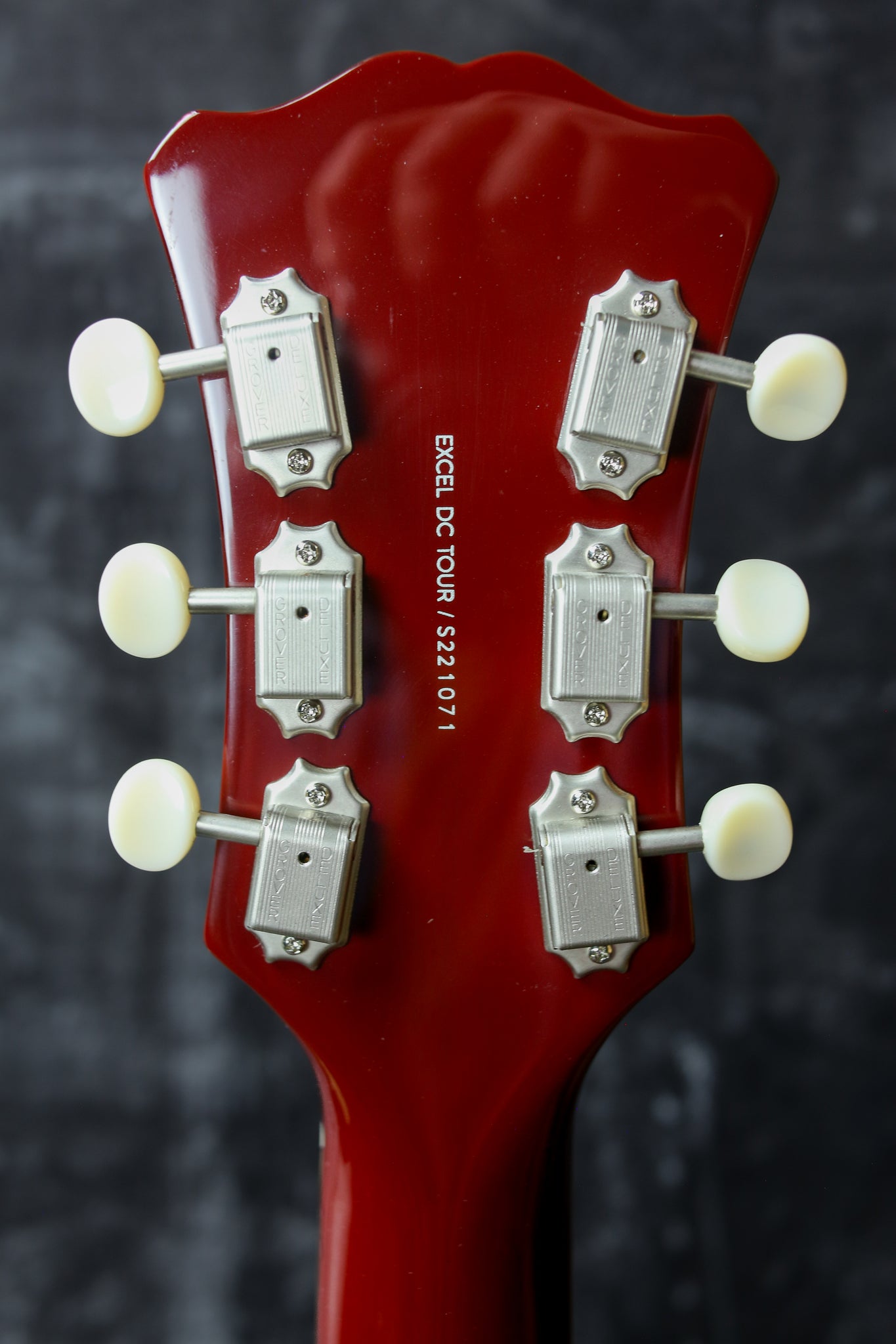 Summary: This 2022 D'Angelico Excel DC Tour, with its 16-inch-wide semi-hollow with deep cutaways and a lightweight centerblock, the DC offers remarkable sustain and exceptional genre versatility. No pickguard and 1930s-inspired diamond f-holes bring old-school charm. Supro Bolt Buckers are infused with old-school Supro attitude, utilizing an Alnico 2 magnet in the neck and Alnico 5 in the bridge to create the perfect pair.