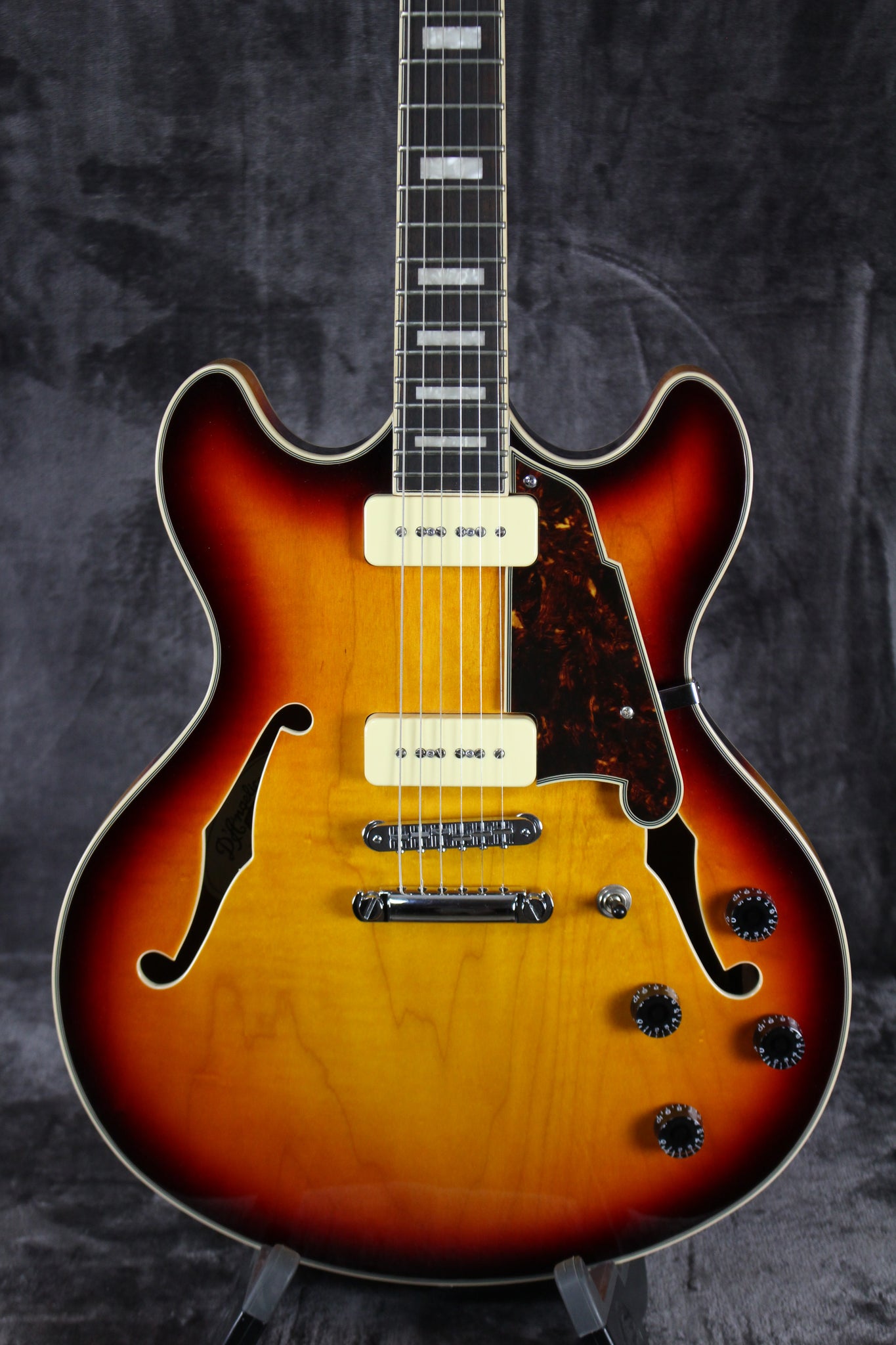 Summary: This D’Angelico Premier DC Boardwalk, a sleek double-cutaway semi-hollow, with USA Seymour Duncan P90s offers full-bodied mid-range tones with an articulate high end. Perfectly balanced and featuring a slim-C neck shape, the Premier DC Boardwalk promises remarkable comfort while cream binding, chrome hardware, and a stunning vintage antique finish.